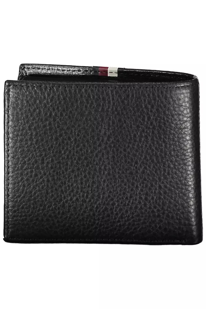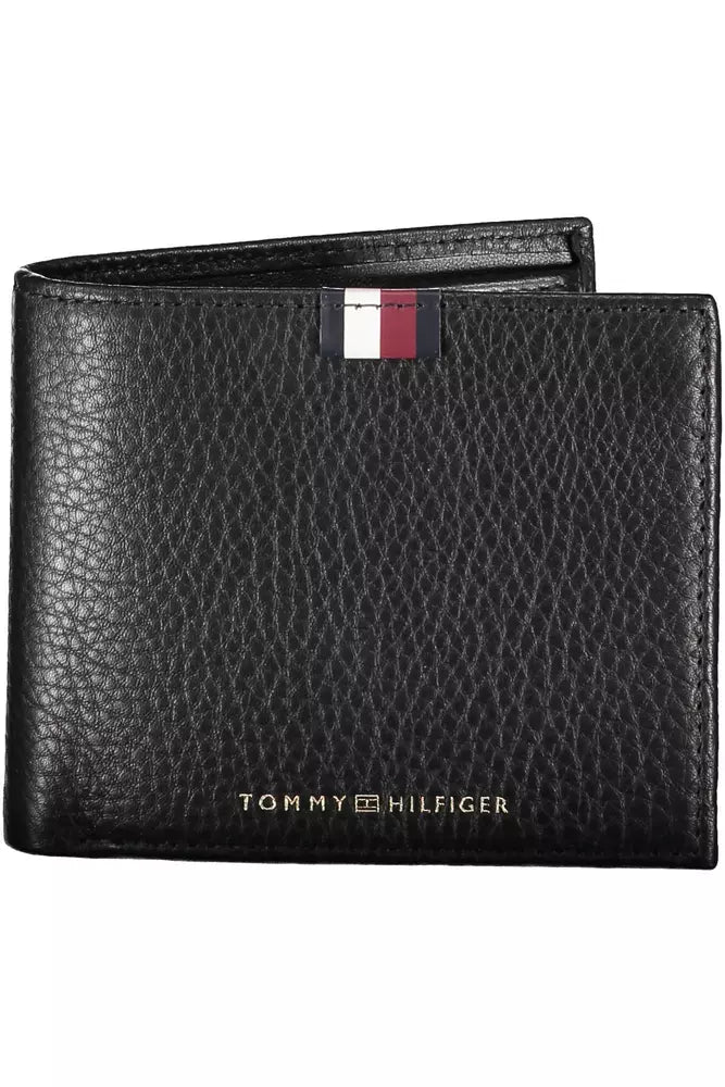 Elevate your essentials with the Tommy Hilfiger 100% leather wallet that melds functionality with iconic style. This sleek accessory boasts a bi-fold design with two spacious compartments, providing ample room for your currency. The triple-card slots ensure your plastic stays organized, while the separate coin purse secures your change with ease. Striking contrasts and a bold Tommy Hilfiger logo print make a definitive fashion statement. Perfectly pocket-sized, this wallet stands out with its sophisticated black hue, infusing every transaction with a touch of designer flair.