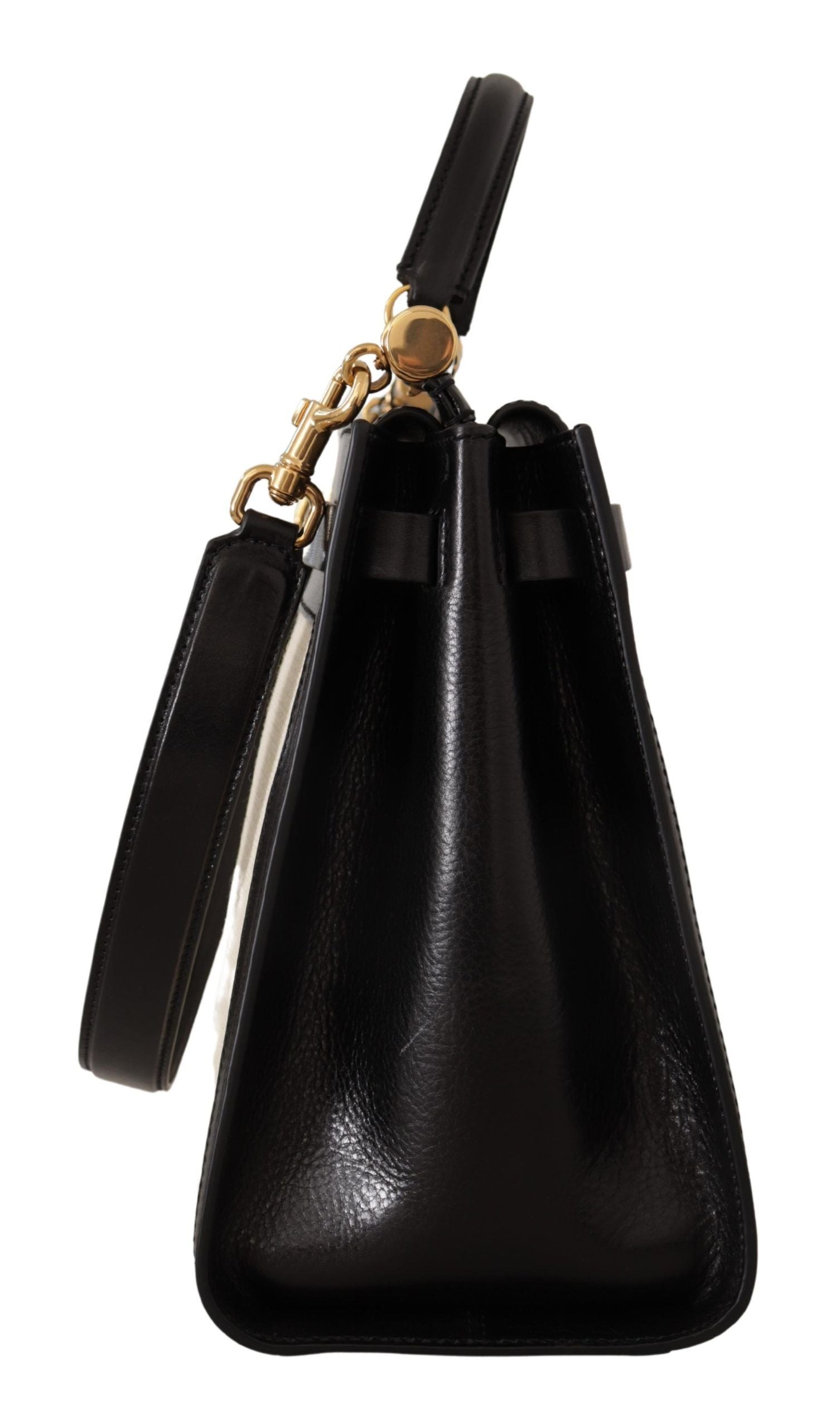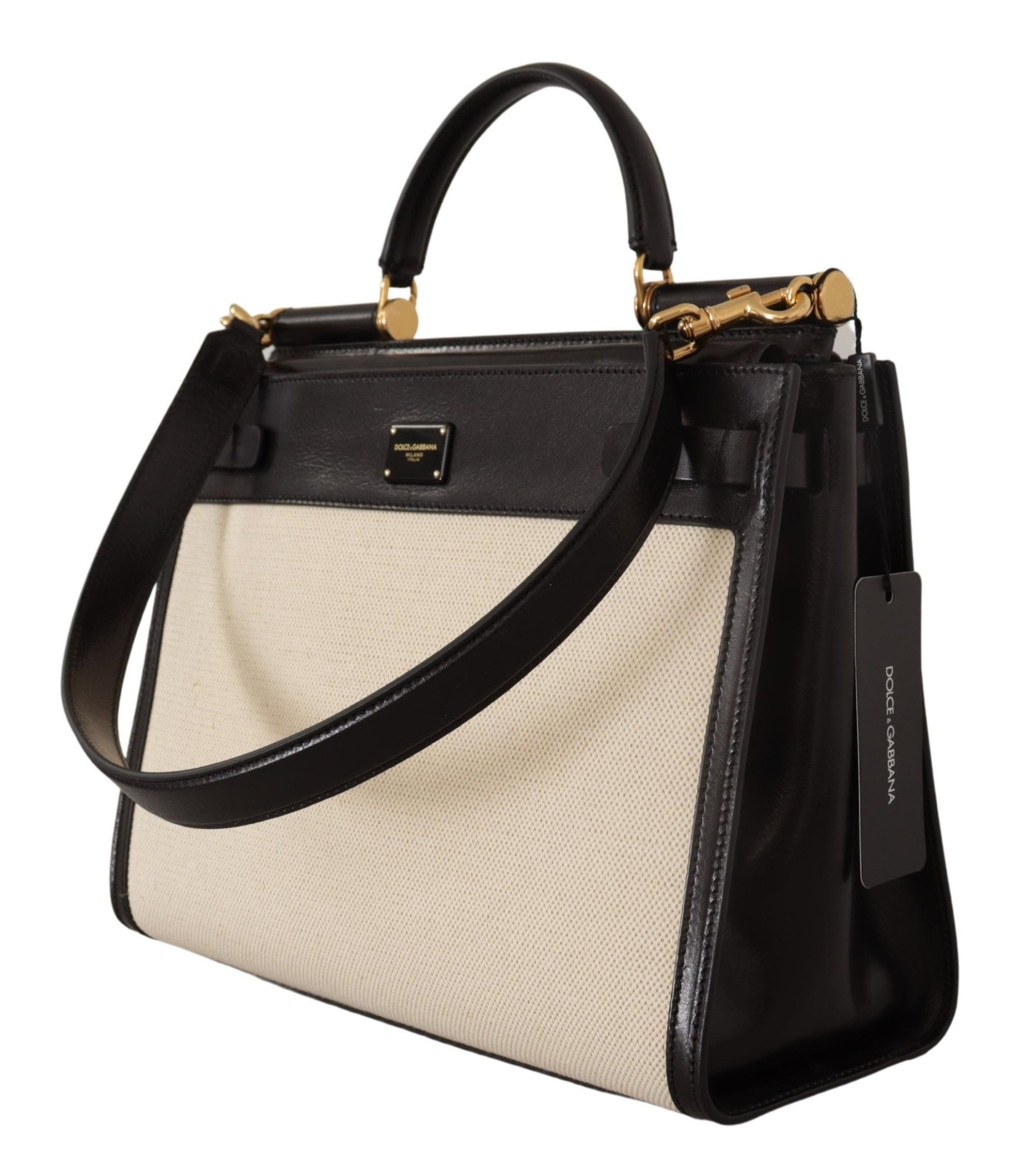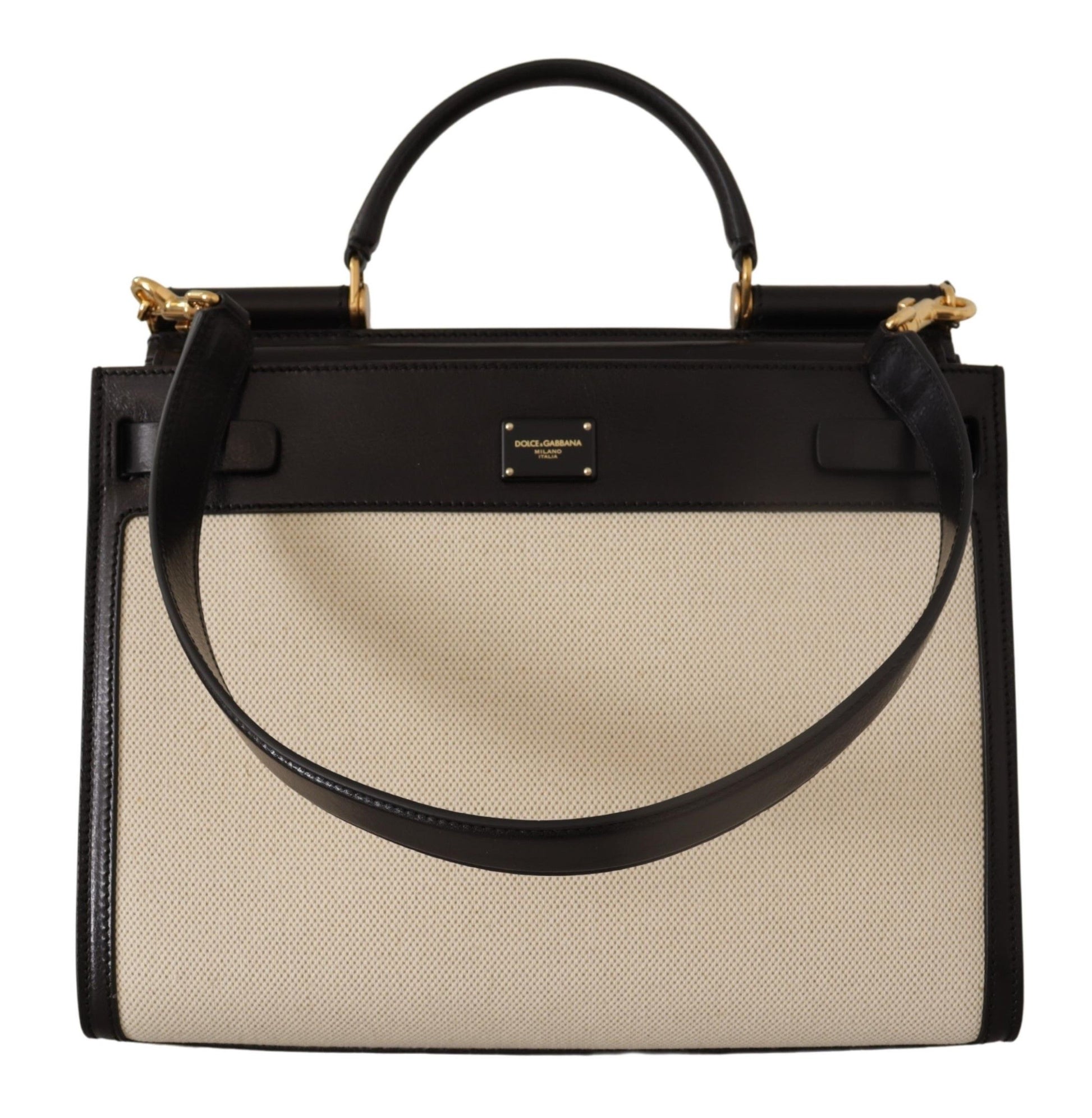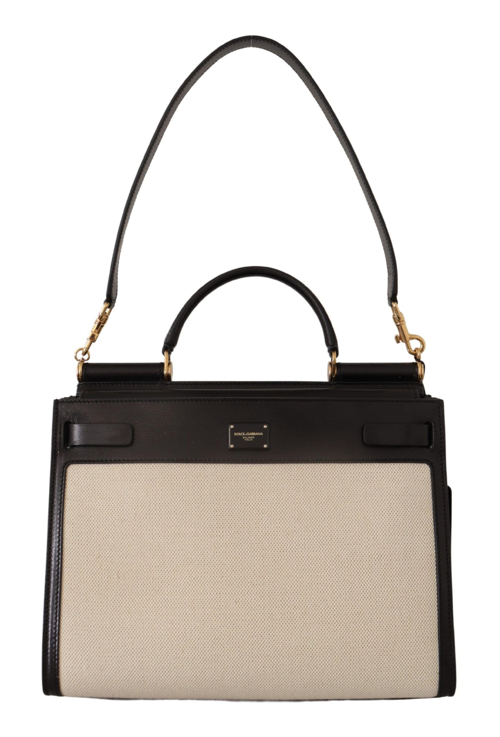 Exude sophistication with this luxurious Dolce & Gabbana Women’s Bag from the iconic SICILY collection. This exquisite piece is brand new with tags, ensuring 100% authenticity and unparalleled quality. Designed to elevate any ensemble, the bag boasts a sleek black and white palette complemented by opulent gold metal detailing. It features a practical magnet closure, an interior pocket with a zipper for added security, and comes with both a handle and a detachable shoulder strap for versatile carrying options. The inner lining, crafted from black cotton and leather, epitomizes the bag’s elegant design while showcasing the iconic logo engraved metal hardware. Handcrafted with passion in Italy, the bag’s dimensions are 35cm x 28cm x 15cm, offering a spacious interior to accommodate your essentials in style, with a strap length of 70cm.