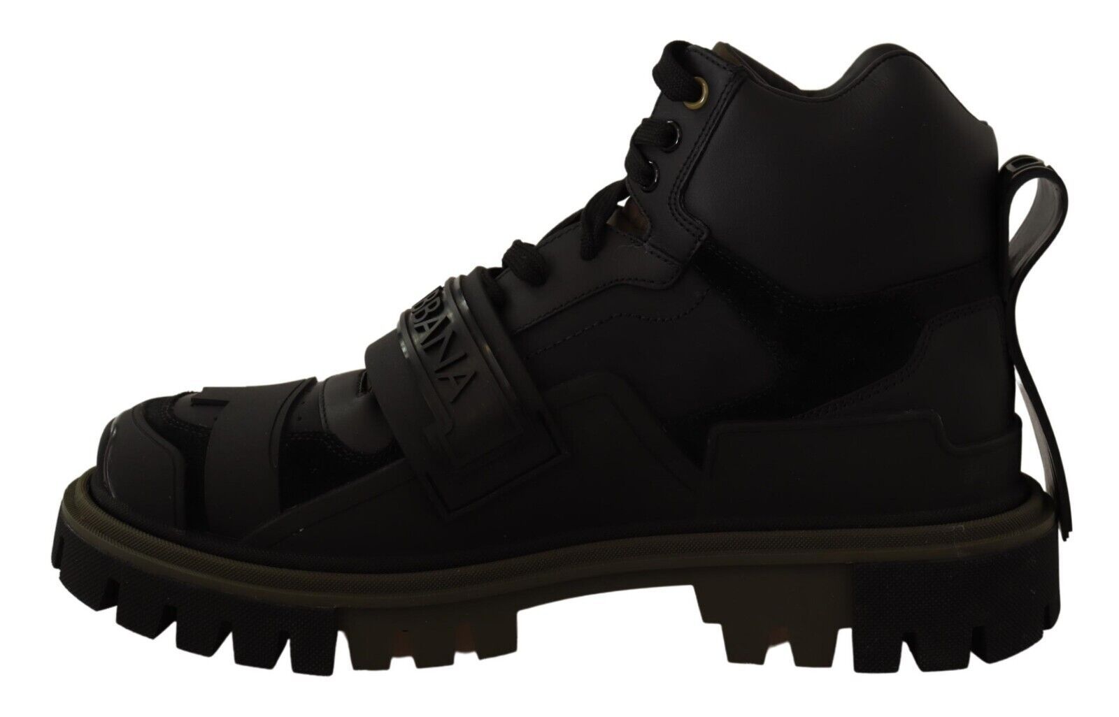 Step into luxury with these gorgeous, brand new casual boots from Dolce & Gabbana. Crafted from 100% leather, these black boots are a testament to Italian craftsmanship and high fashion. Designed with a durable rubber sole and featuring iconic logo details, they promise style and exclusivity for the discerning gentleman.