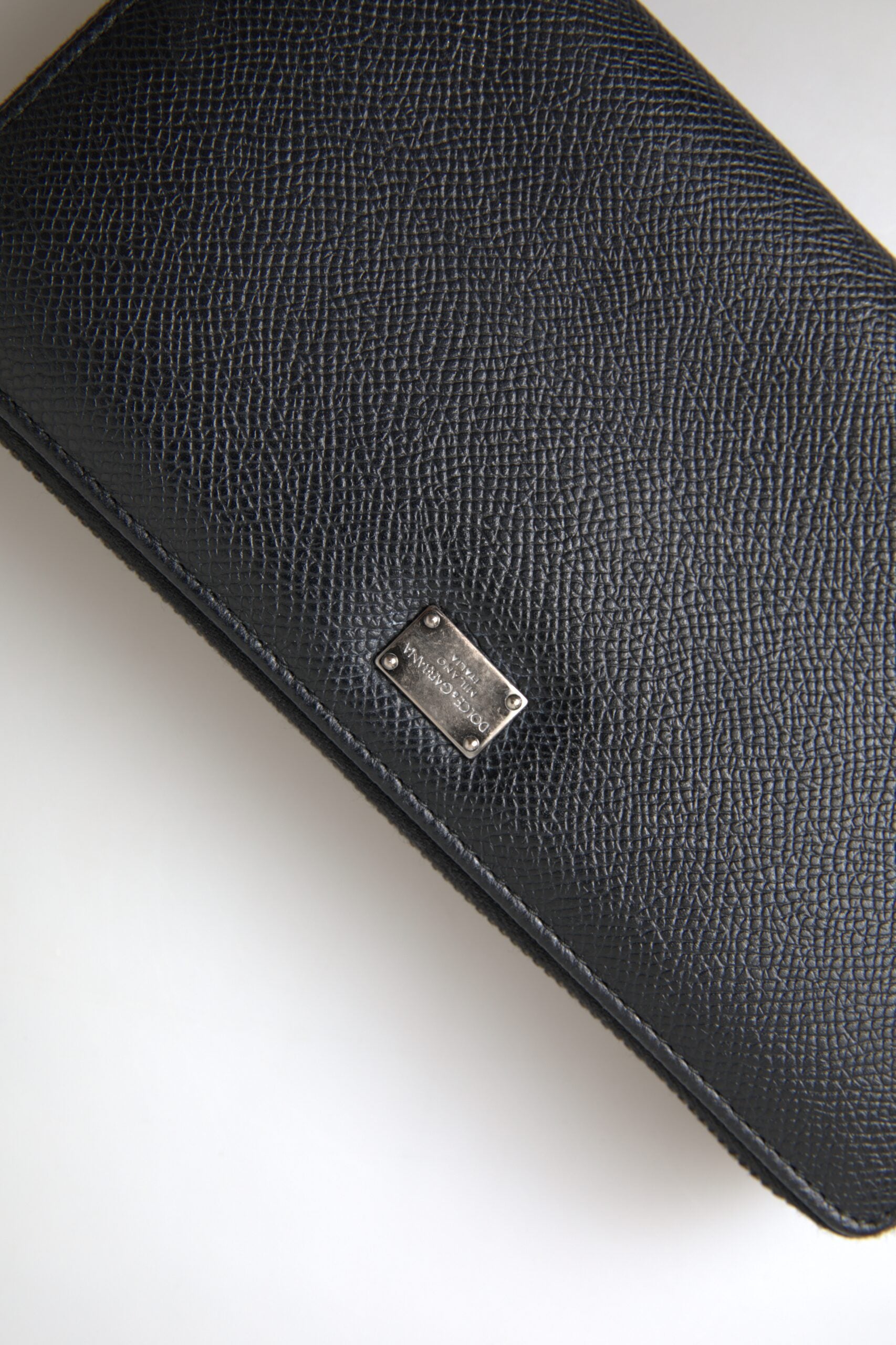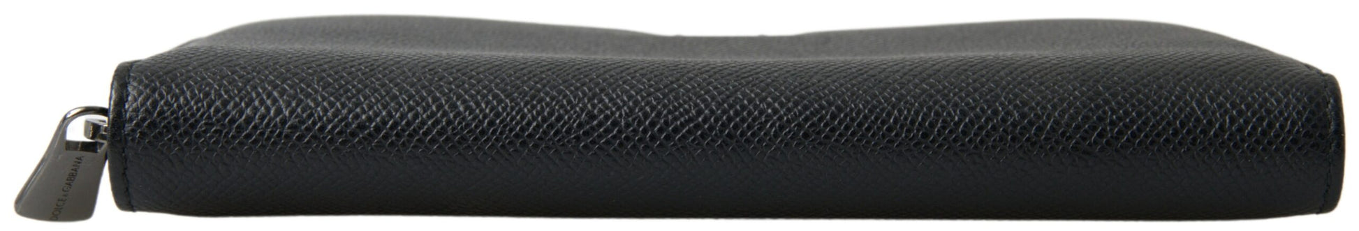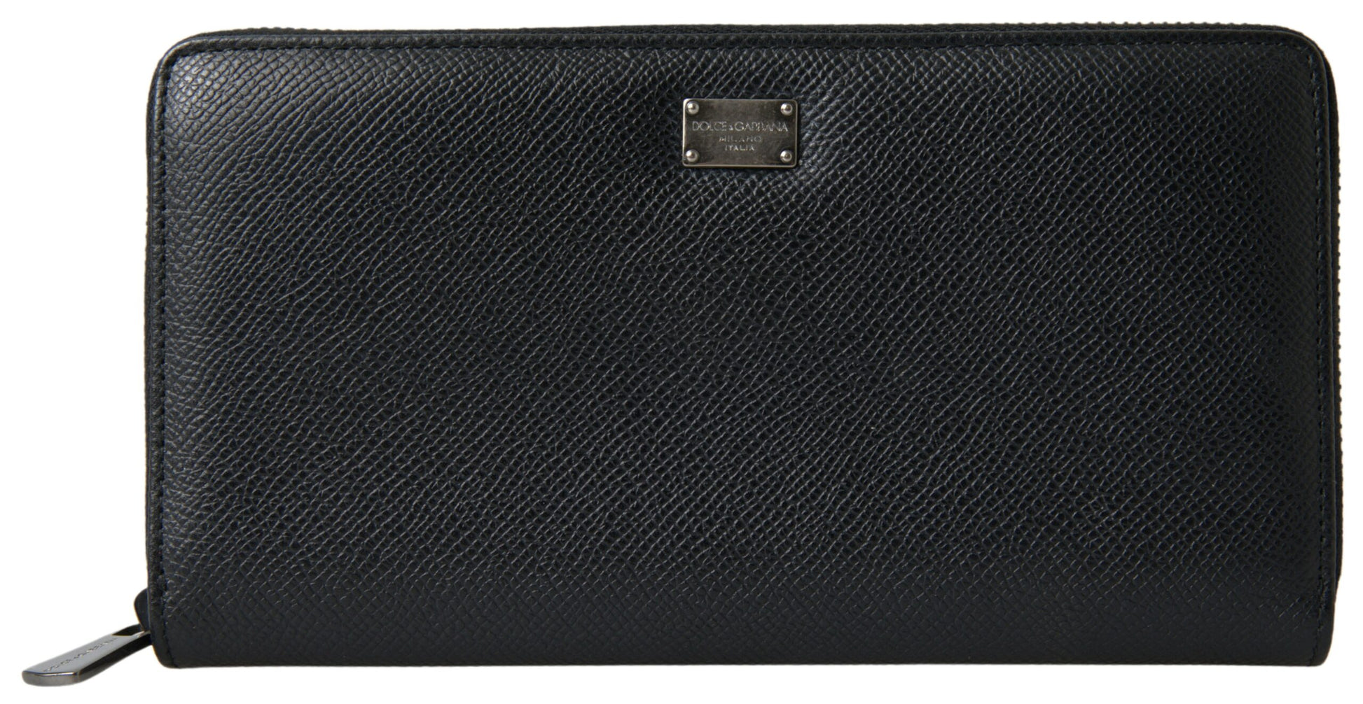 Indulge in the opulence of Dolce & Gabbana with this exquisite black leather continental wallet. Crafted with precision in Italy, this essential accessory boasts a sophisticated logo plaque and a secure zip-around fastening. Organize with ease using its ample card slots, a convenient coin zipper pocket, and full-length bill compartments. Perfect for the discerning gentleman who appreciates luxury in every detail.