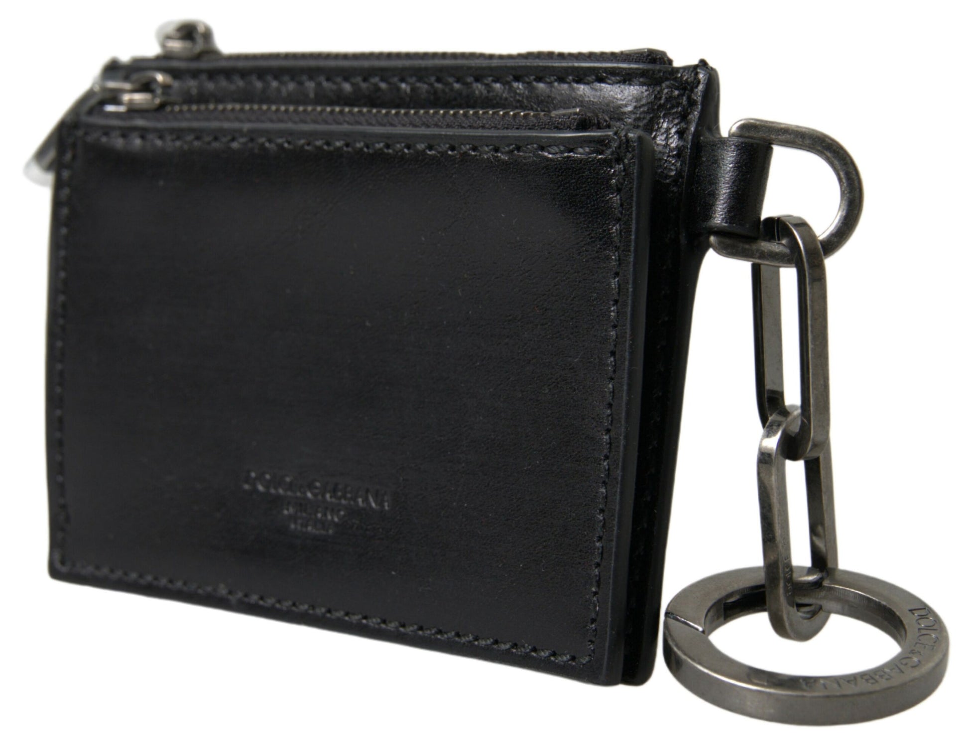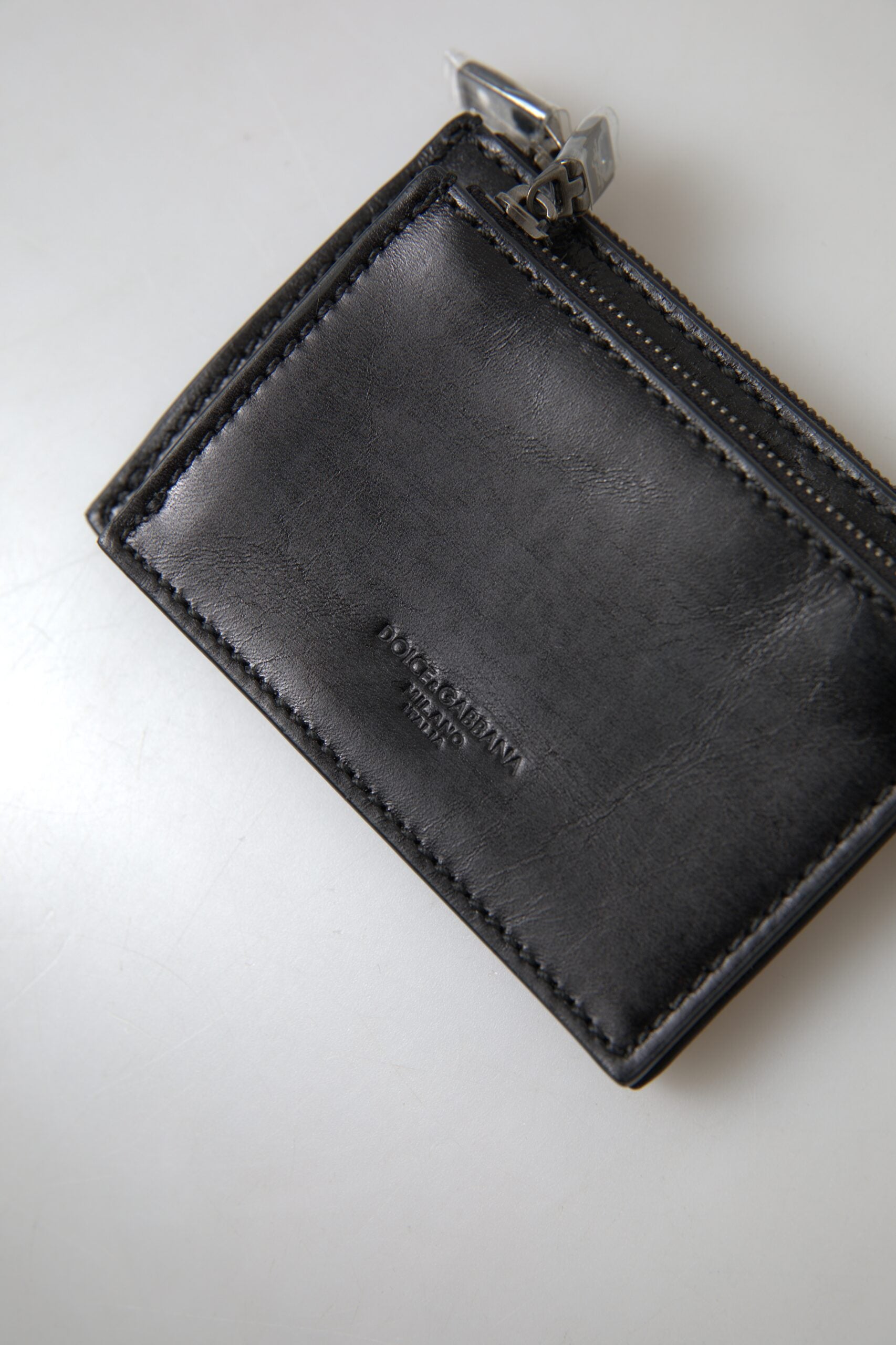 Indulge in the epitome of sophistication with this impeccable Dolce & Gabbana men’s wallet. Crafted from the finest horse skin leather, it exudes luxury with every detail. The sleek black exterior opens to reveal a practical interior with a secure zipper closure and key ring, ensuring your essentials are organized and safe. This wallet is not only a statement of style but a promise of enduring quality, made in Italy with the utmost care.