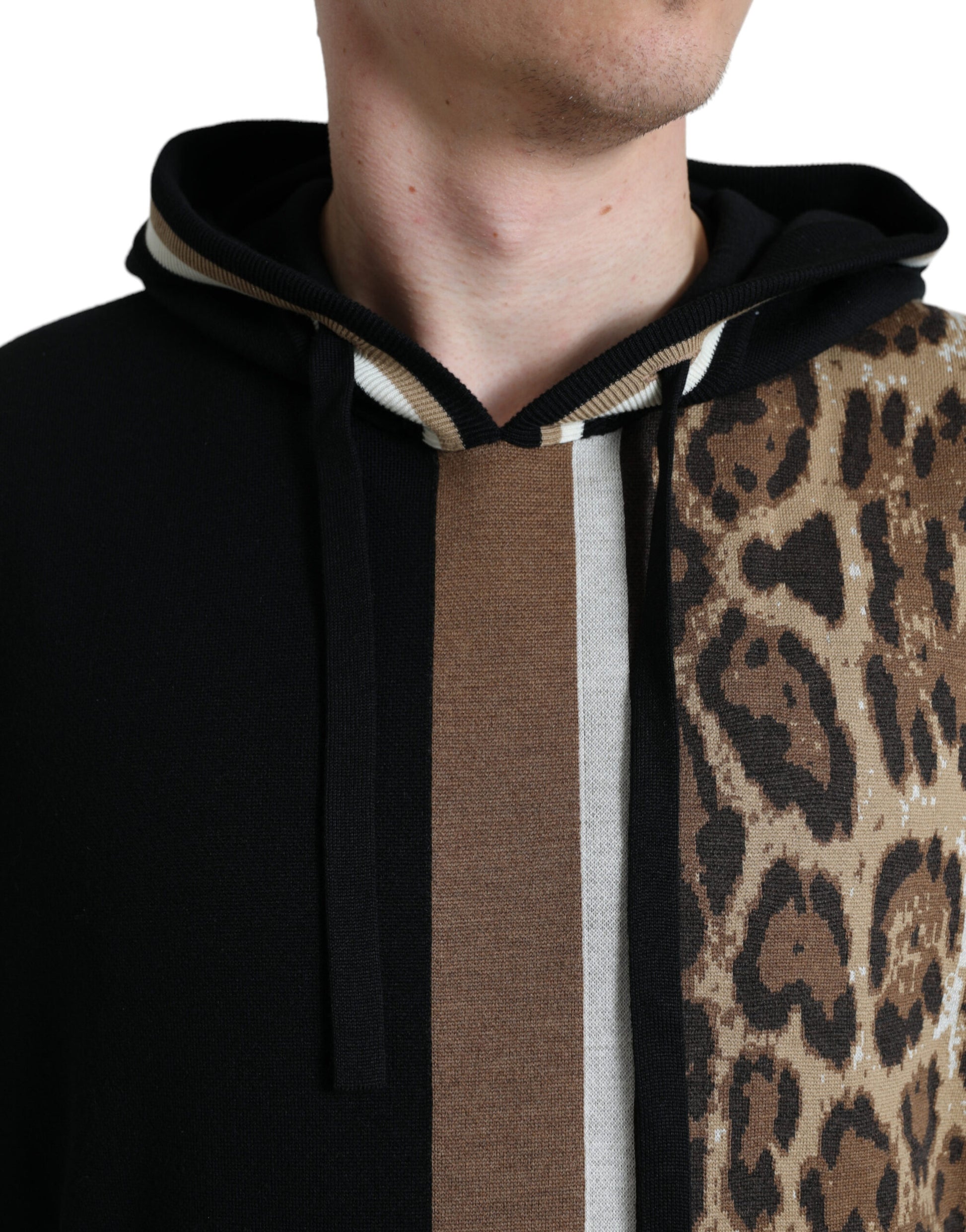 Wrap yourself in the epitome of luxury with this 100% Authentic Dolce & Gabbana pullover sweater. Featuring a sumptuous Virgin Wool construction, this hooded sweater is a testament to Italian craftsmanship with a striking leopard print design in a sophisticated black color palette. Not only is this a stunning fashion statement, but the comfort and warmth it offers make it a true cold-weather essential. Long sleeves and subtle logo detailing complete this exquisite piece, making it a must-have for the discerning fashion aficionado.