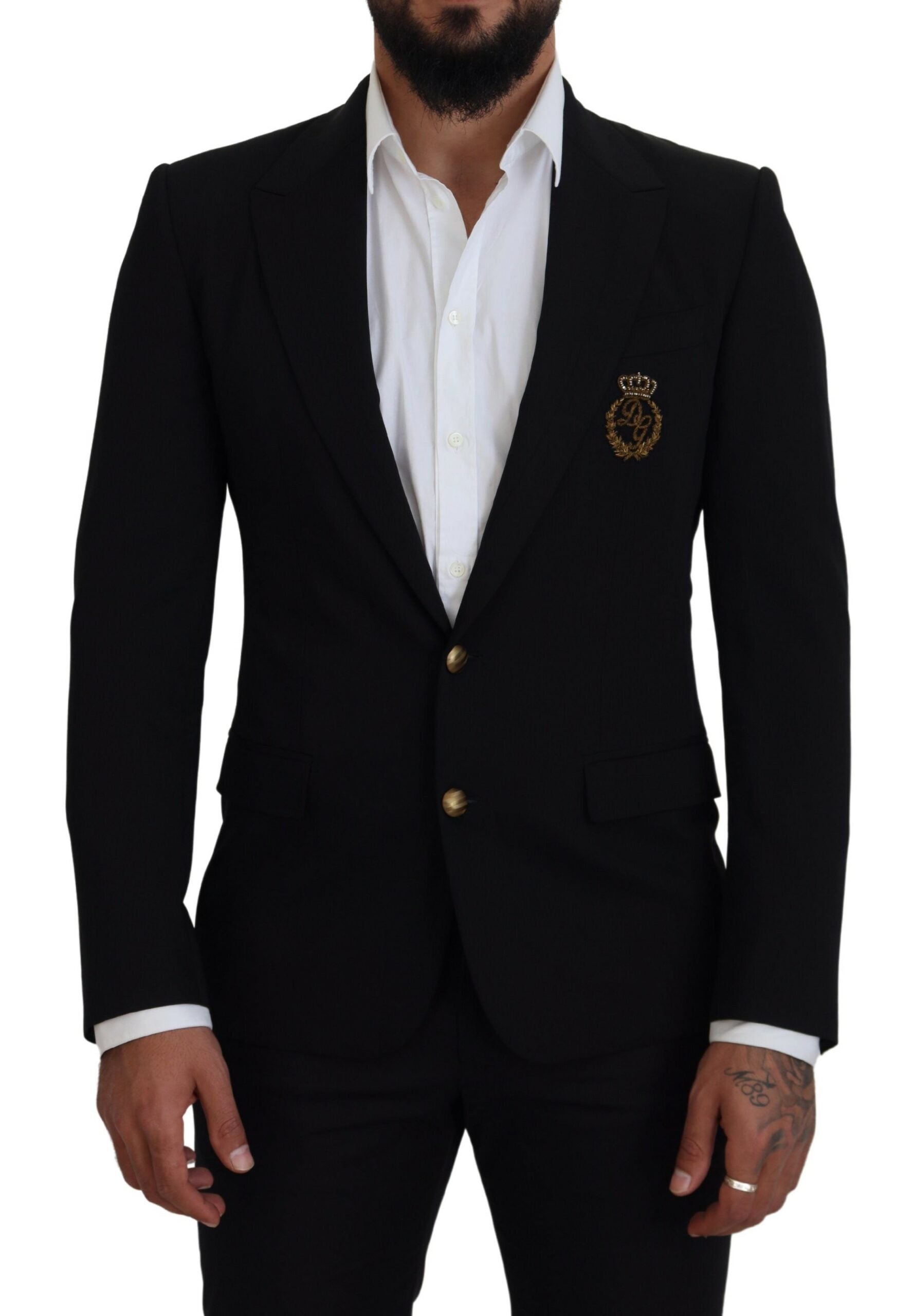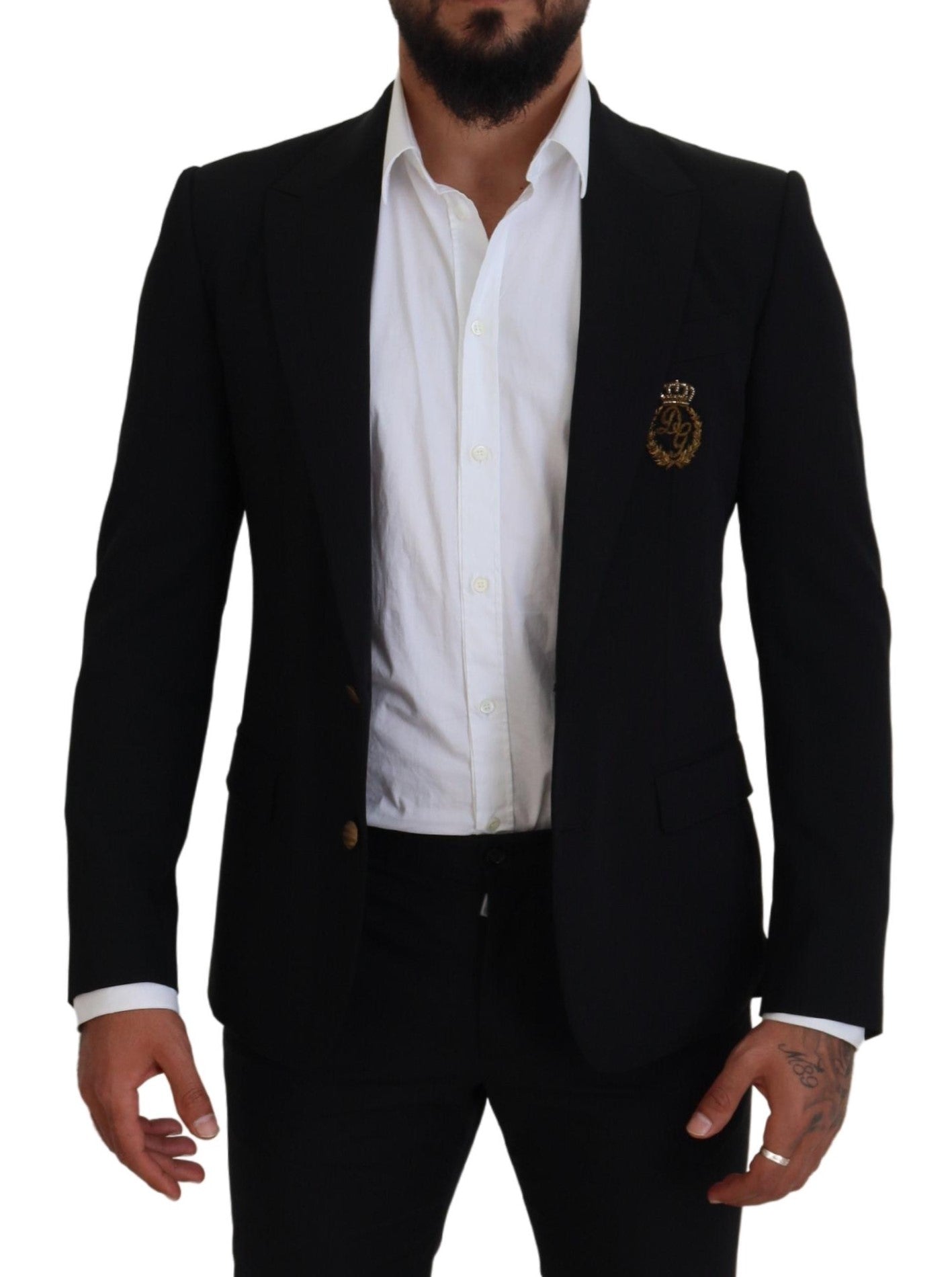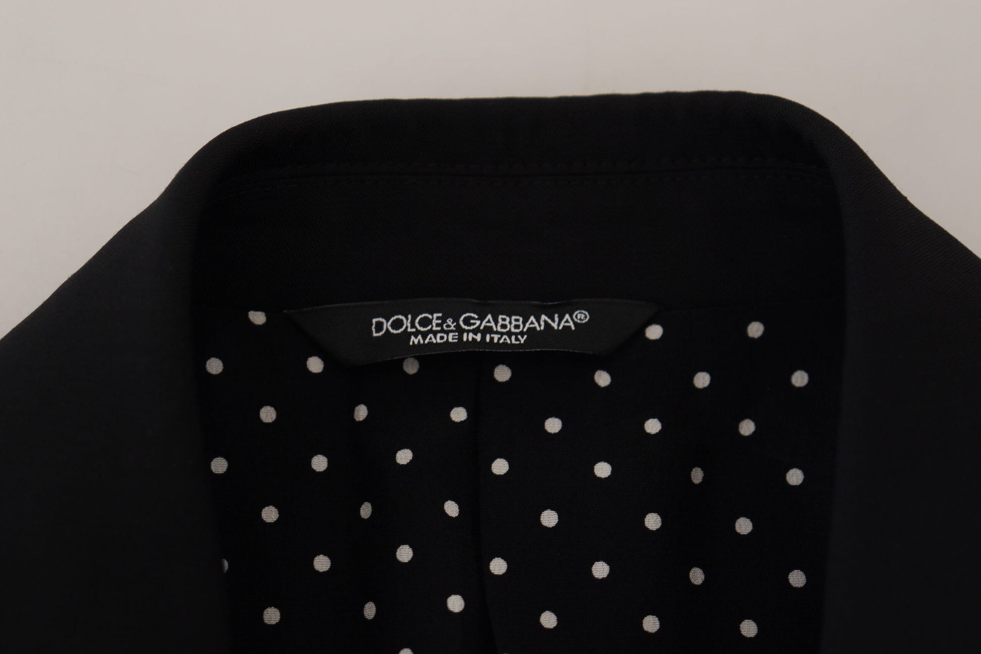 Step out in sophistication with this exquisite Dolce & Gabbana formal blazer. Expertly crafted in Italy, the design features a classic single-breasted structure, distinguished by its premium 100% virgin wool construction. A timeless black hue ensures versatility and elegance for any high-end occasion, while the attention to detail is reflected in the tailored fit and luxurious lining blend. Complete with a sharp two-button front closure and practical front pockets, it effortlessly combines fashion with functionality. Enhance your wardrobe with this statement piece that signifies style and luxury.