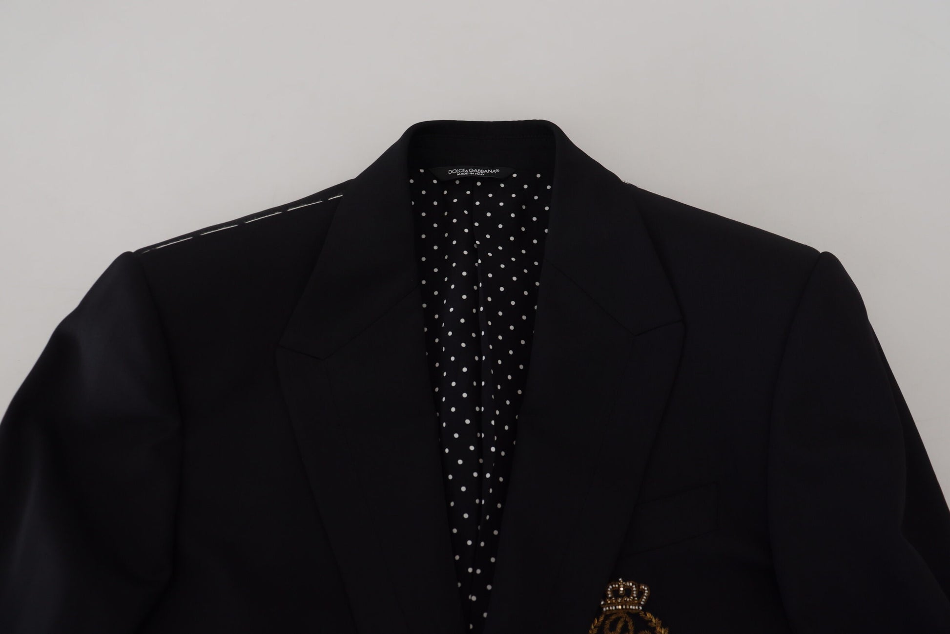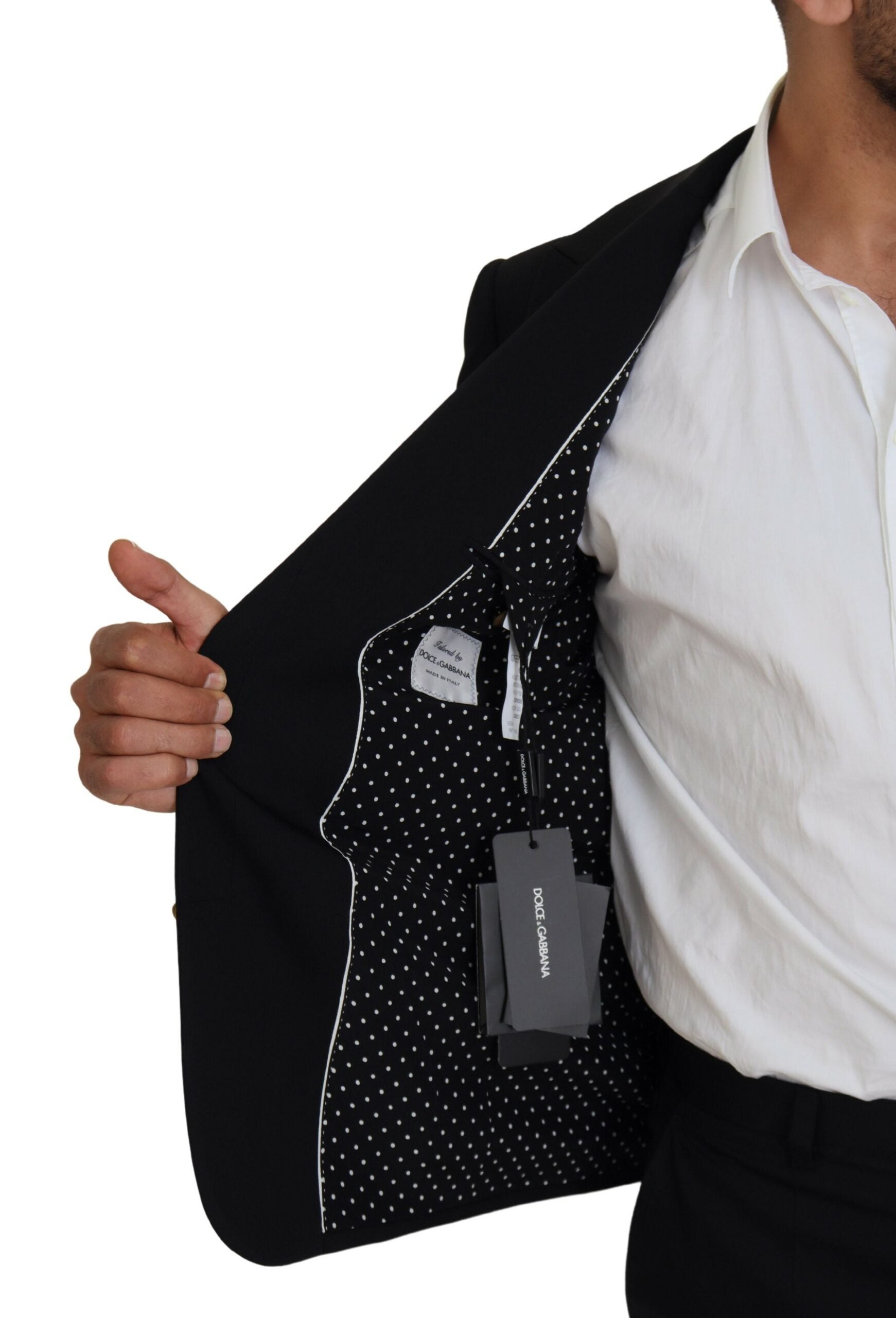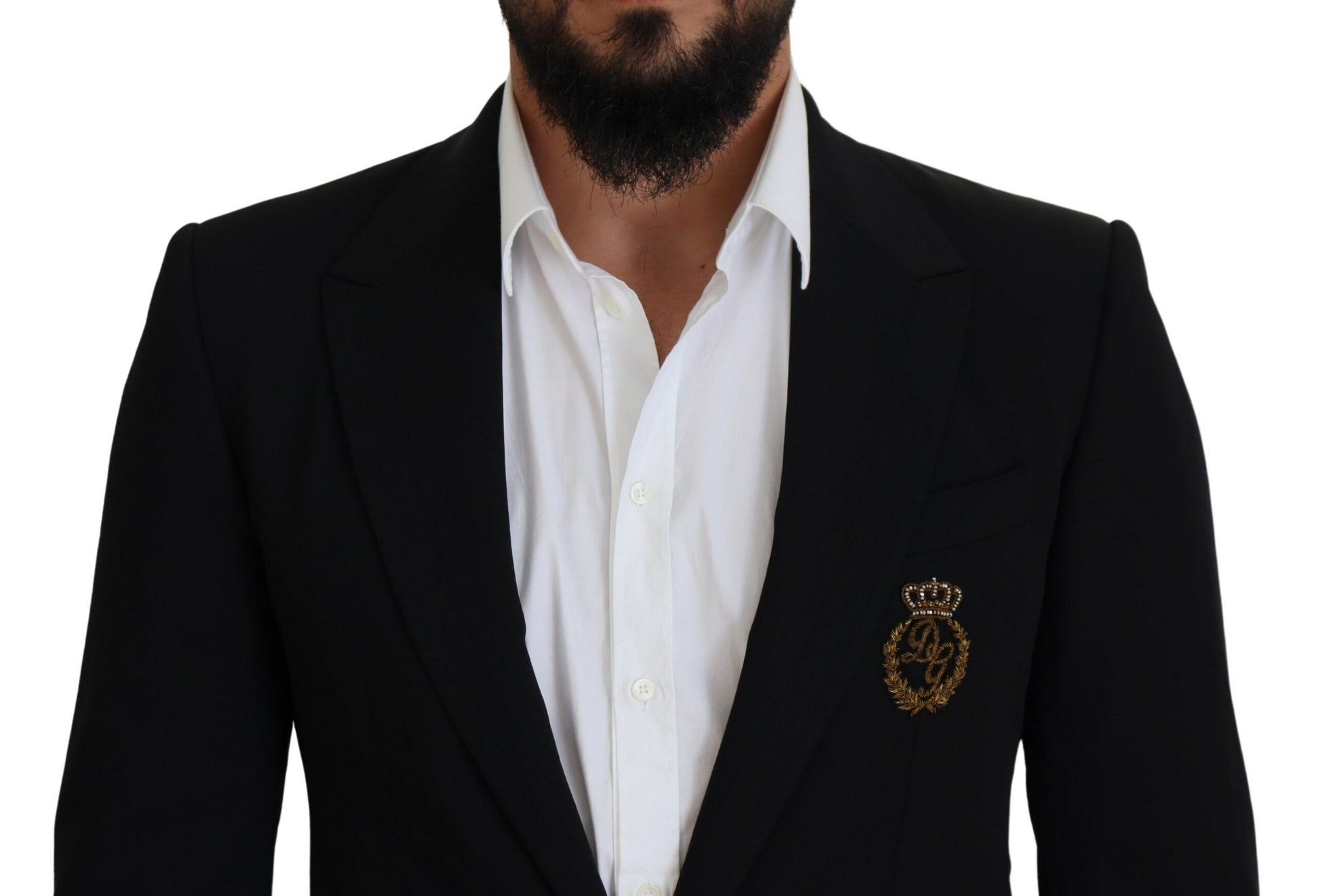 Step out in sophistication with this exquisite Dolce & Gabbana formal blazer. Expertly crafted in Italy, the design features a classic single-breasted structure, distinguished by its premium 100% virgin wool construction. A timeless black hue ensures versatility and elegance for any high-end occasion, while the attention to detail is reflected in the tailored fit and luxurious lining blend. Complete with a sharp two-button front closure and practical front pockets, it effortlessly combines fashion with functionality. Enhance your wardrobe with this statement piece that signifies style and luxury.