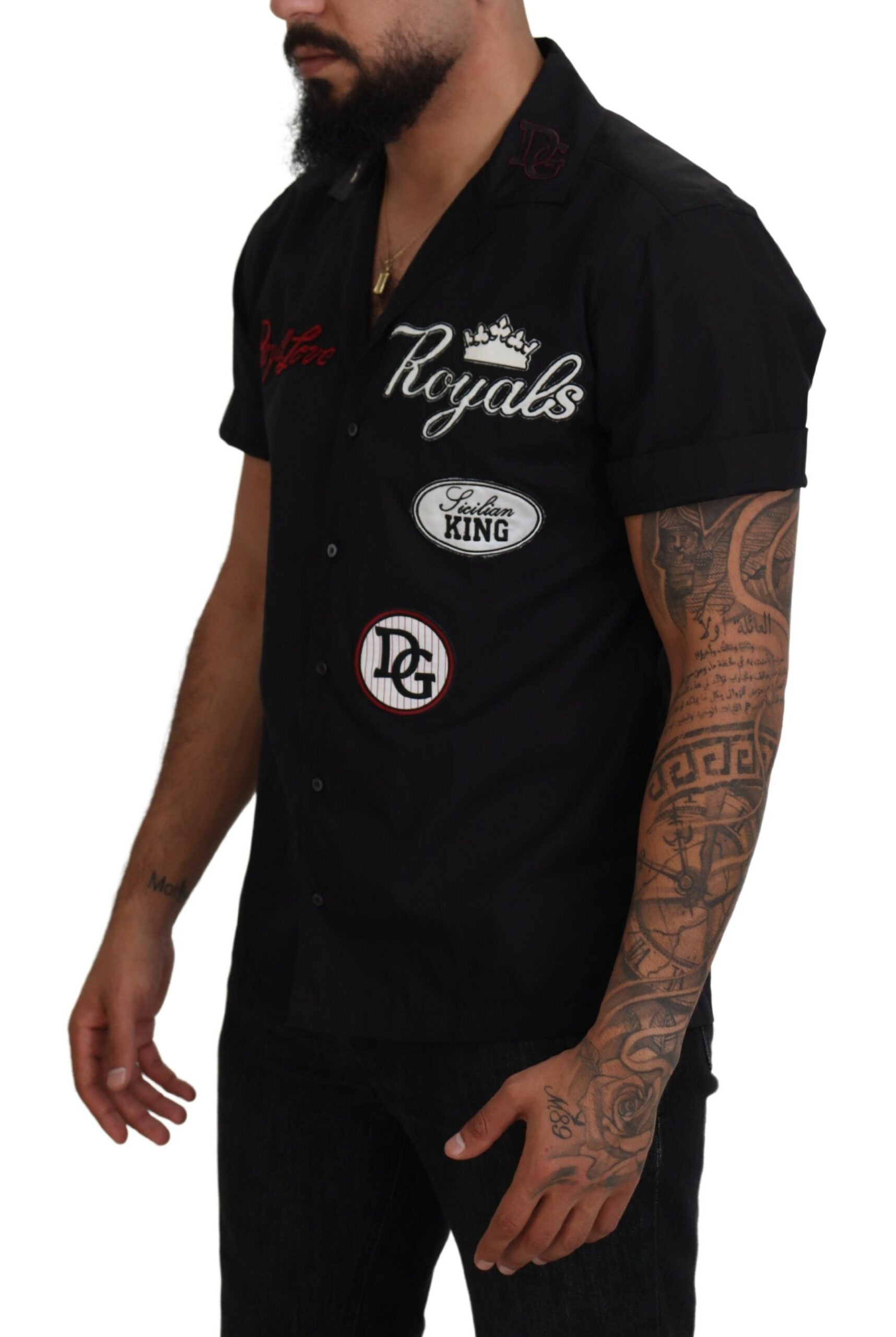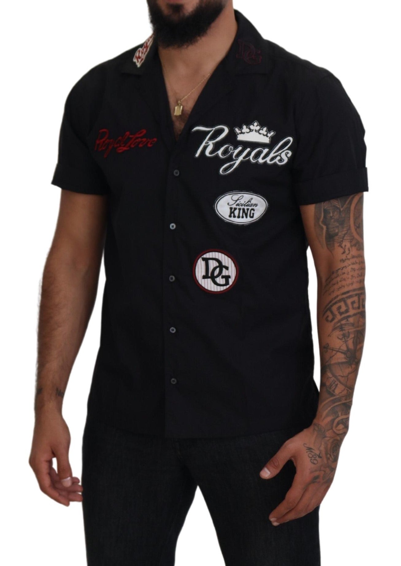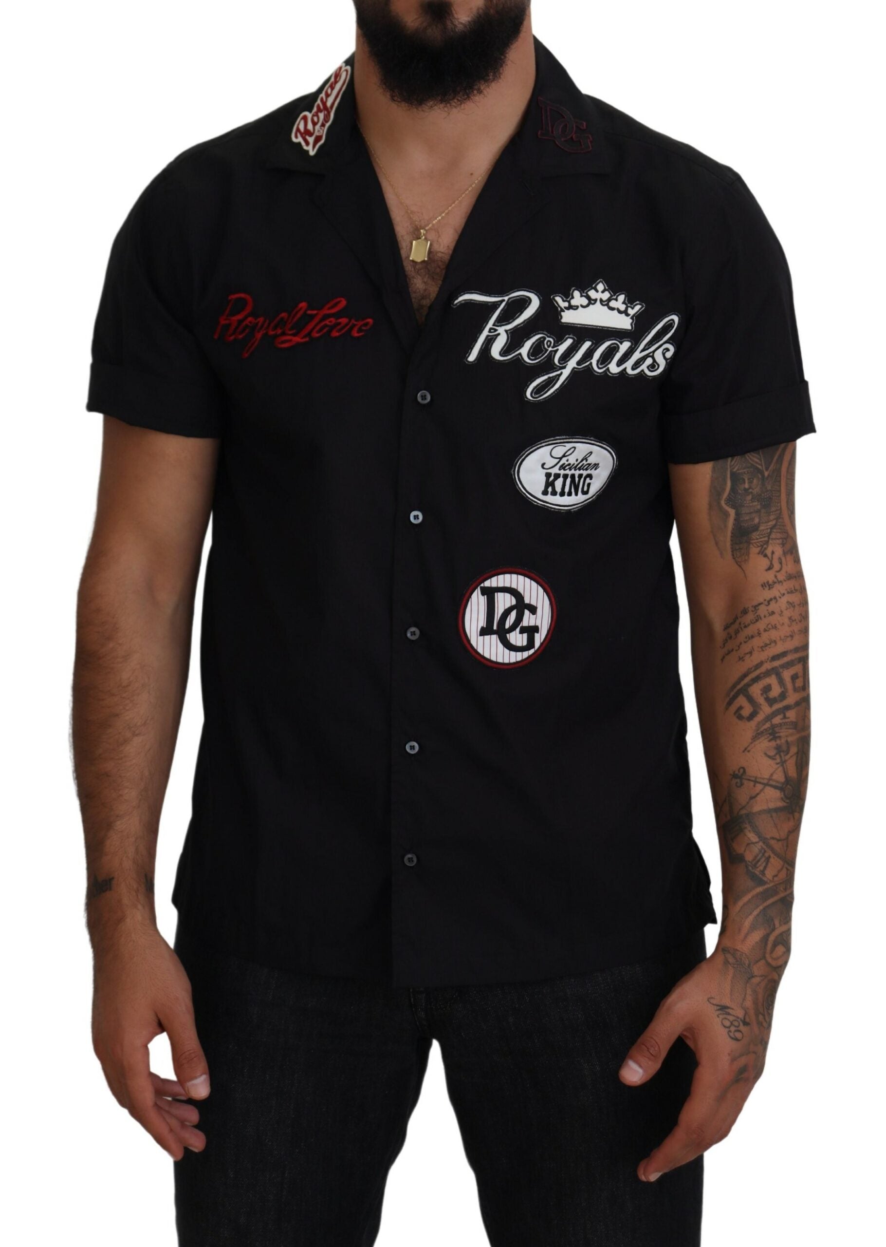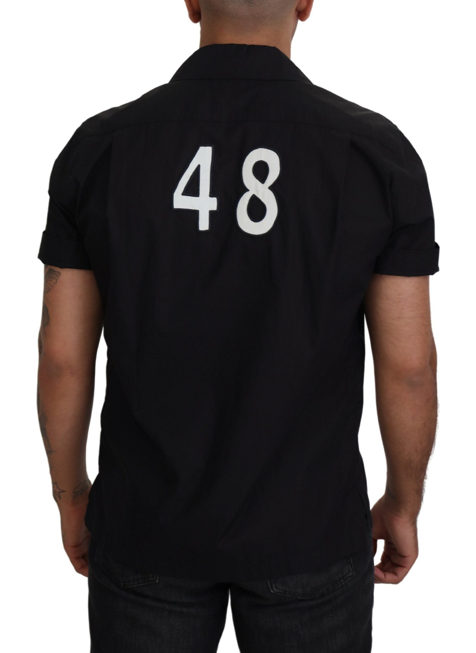 Discover the epitome of Italian craftsmanship with this absolutely stunning casual shirt from Dolce & Gabbana. With its sleek black design featuring a discreet logo patch, this shirt is a testament to understated luxury. Its 100% cotton material ensures comfort and durability, while the regular fit cut provides a flattering silhouette for any occasion. Made in Italy, this short-sleeve button-down shirt is a versatile addition to your wardrobe, perfect for both a smart casual look or a more laid-back style.