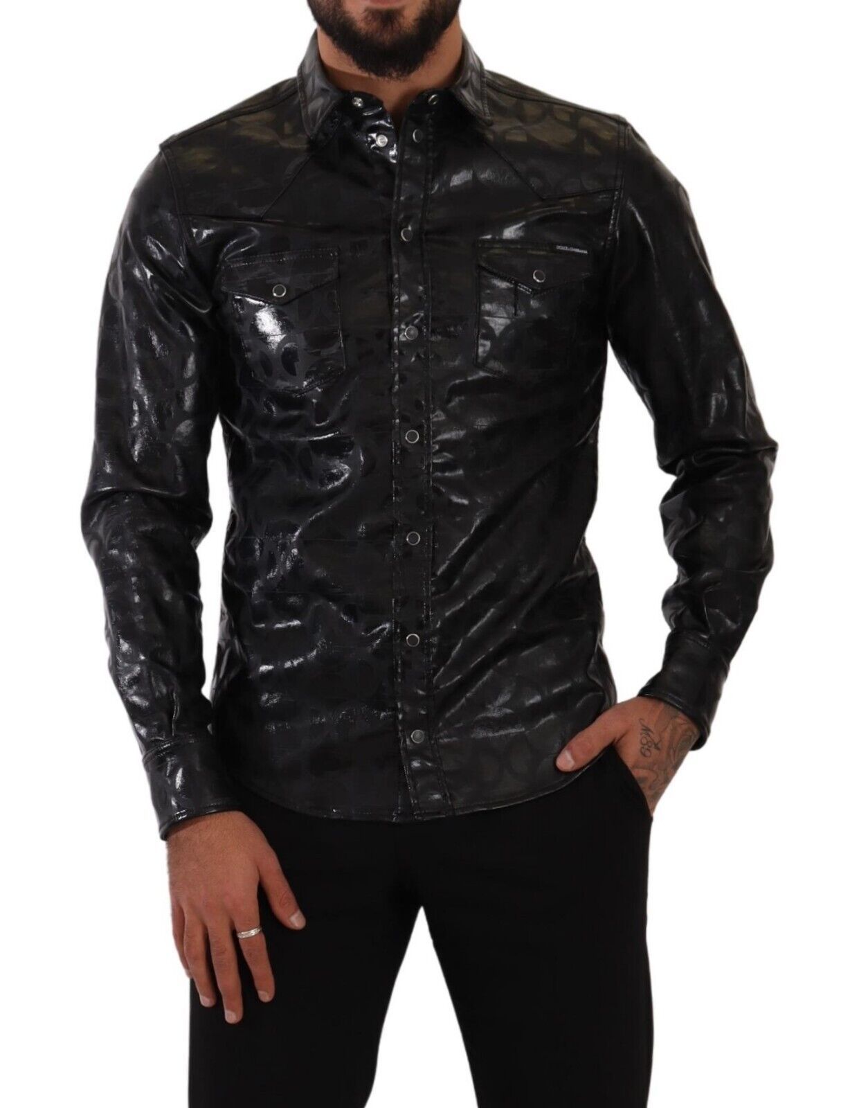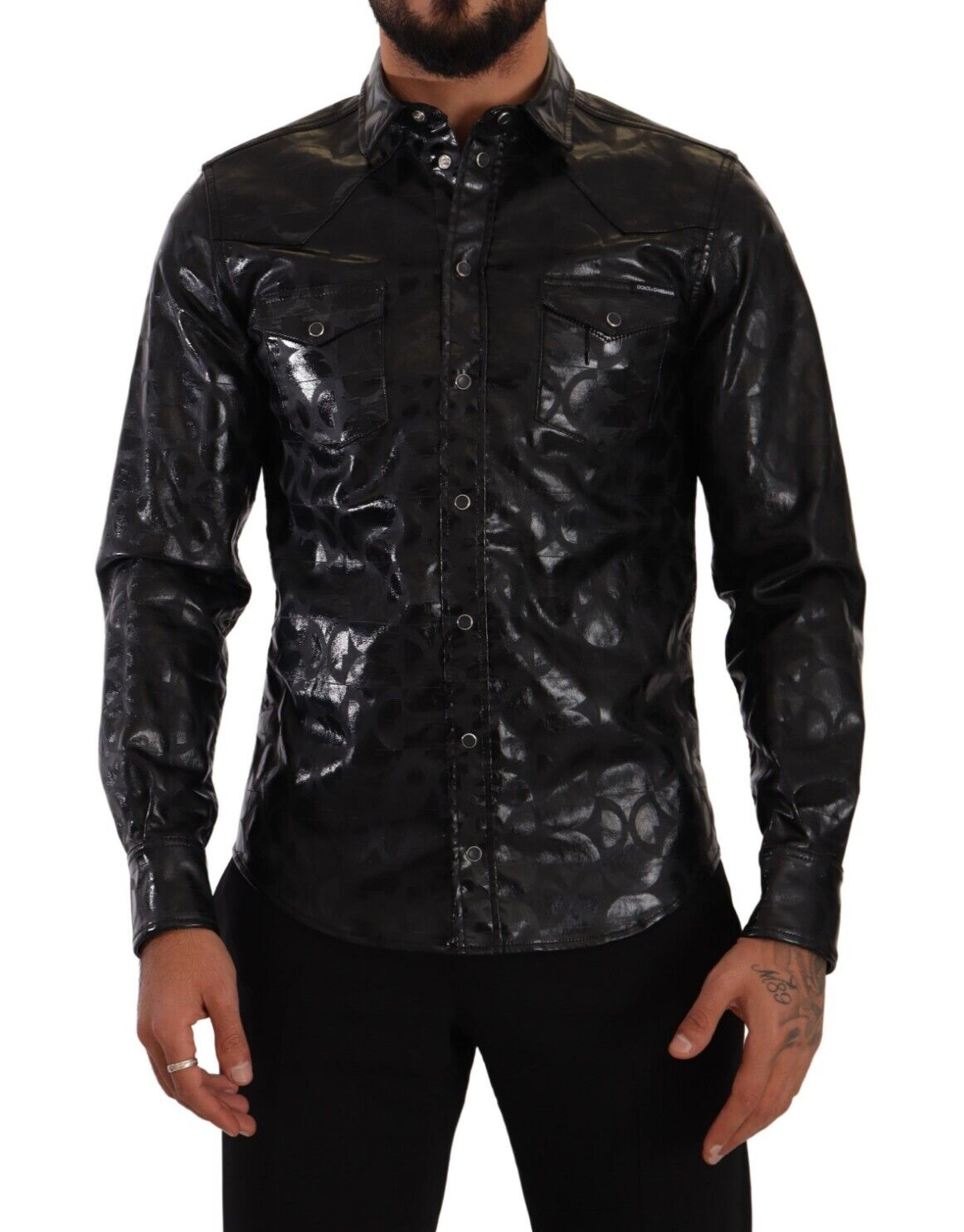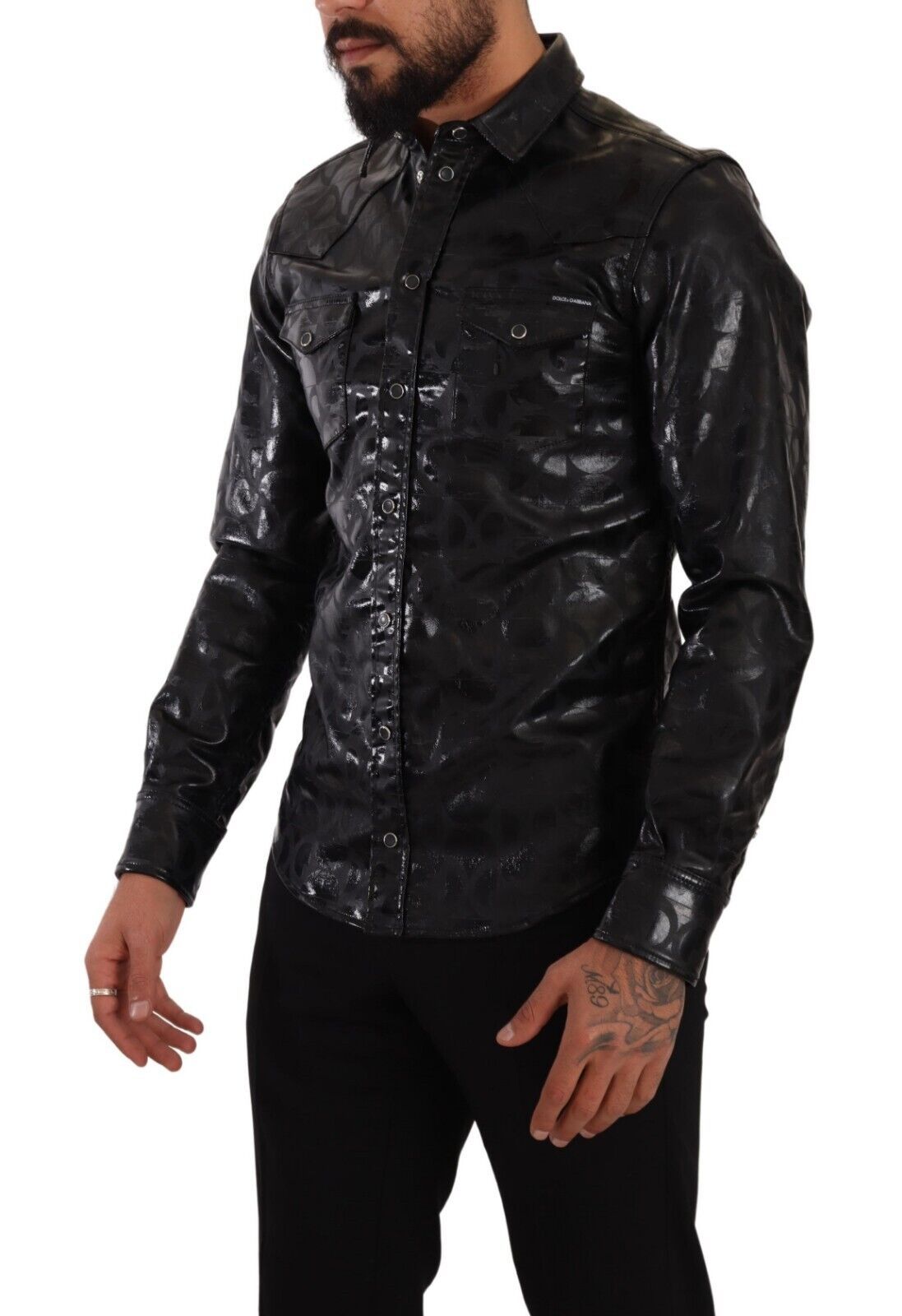 Indulge in the epitome of Italian craftsmanship with this exquisite Dolce & Gabbana dress shirt. Perfect for those seeking a blend of luxury and practicality, it features a sharp logo print and is meticulously designed for a slim fit. Its premium cotton blend ensures both comfort and a sleek silhouette, making it an ideal choice for any sophisticated wardrobe. The classic collar and button-down closure add to the timeless elegance.