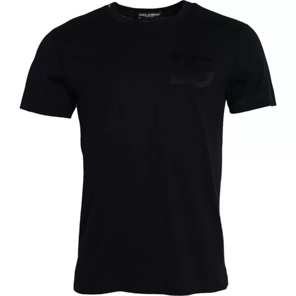 Black Logo Round Neck Short Sleeves T-shirt