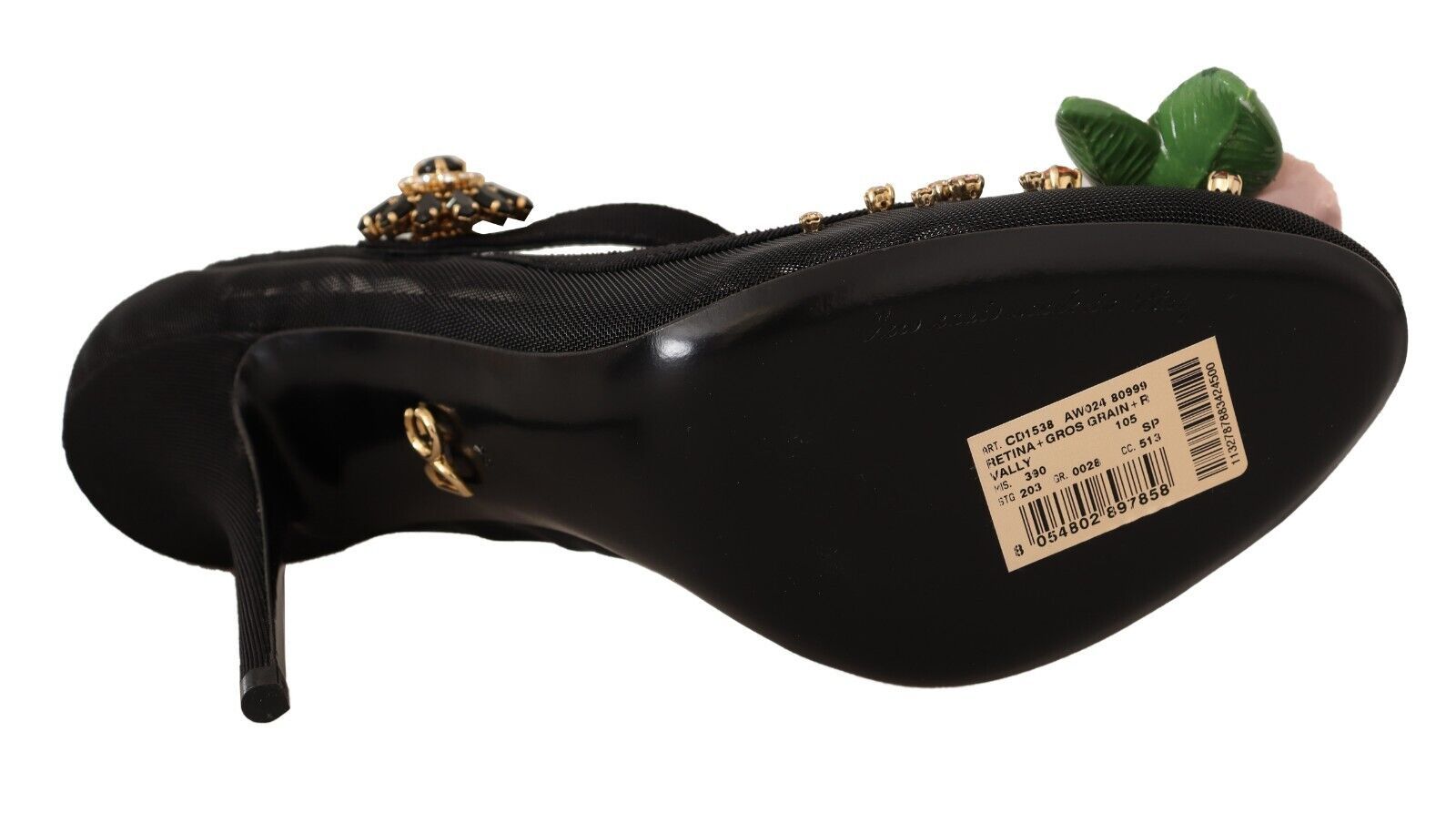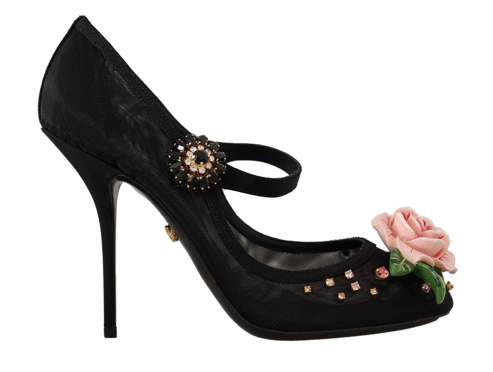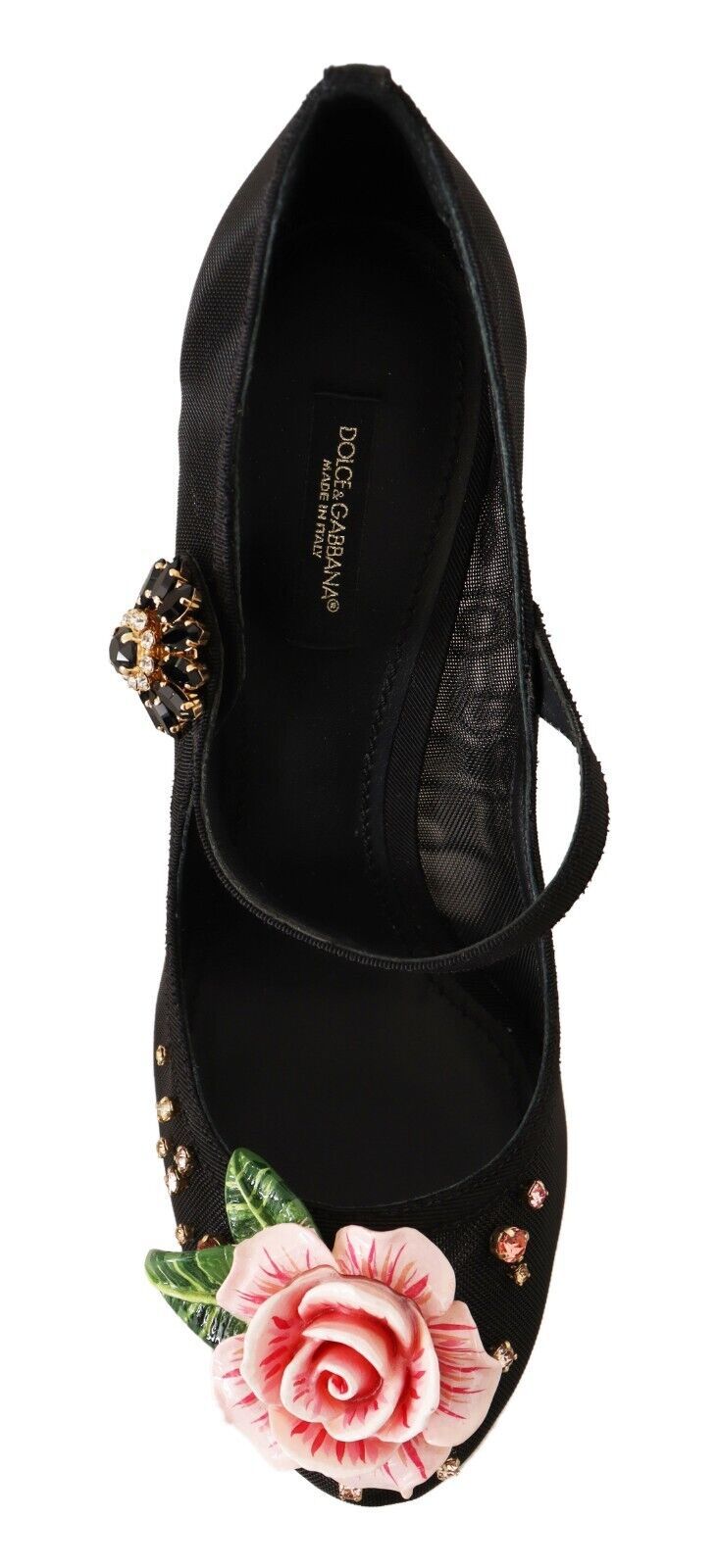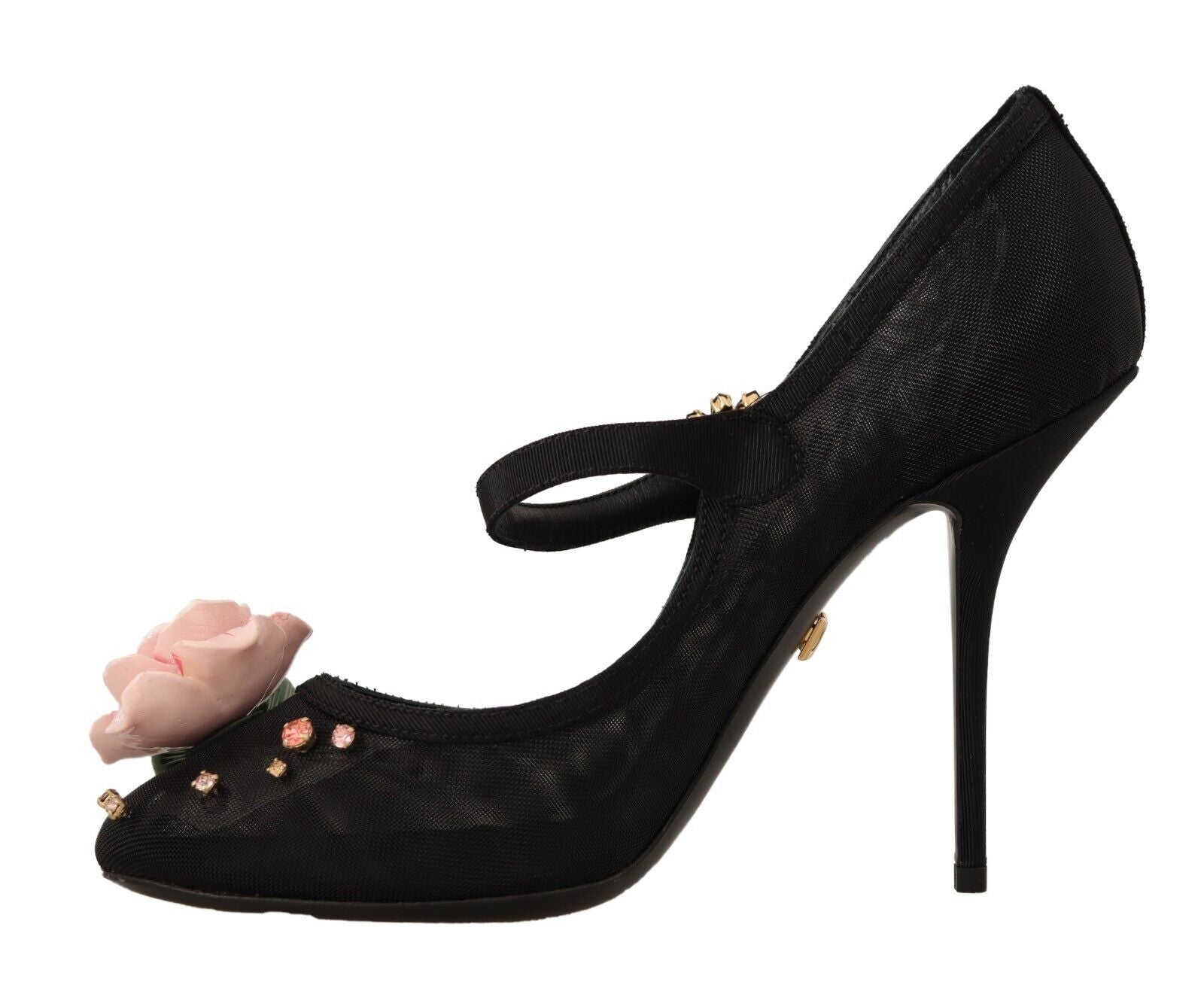 Step into sheer luxury with these breathtaking Dolce & Gabbana Mary Jane mesh pumps. Embellished with exquisite floral and sparkling crystal appliqués, these pumps are the epitome of elegance and sophistication. Featuring a towering stiletto heel and a classic almond toe design, these heels are a testament to unmatched quality and comfort. Each step brings a hint of Italian craftsmanship straight from the heart of luxurious fashion.
