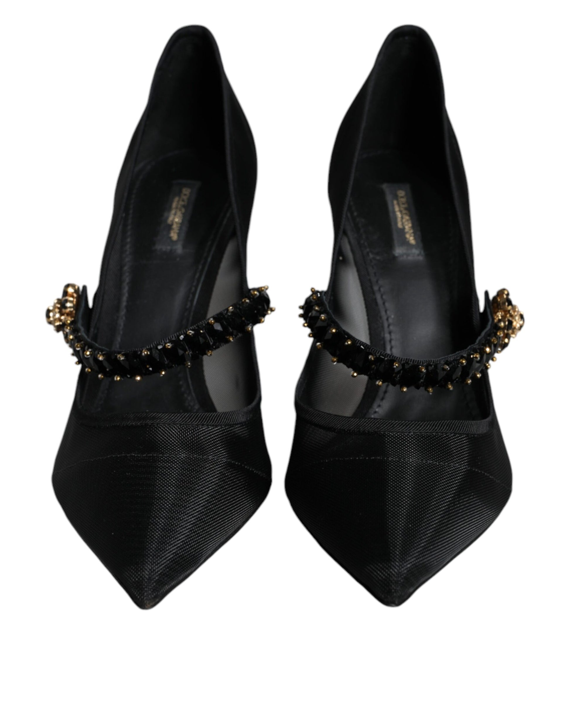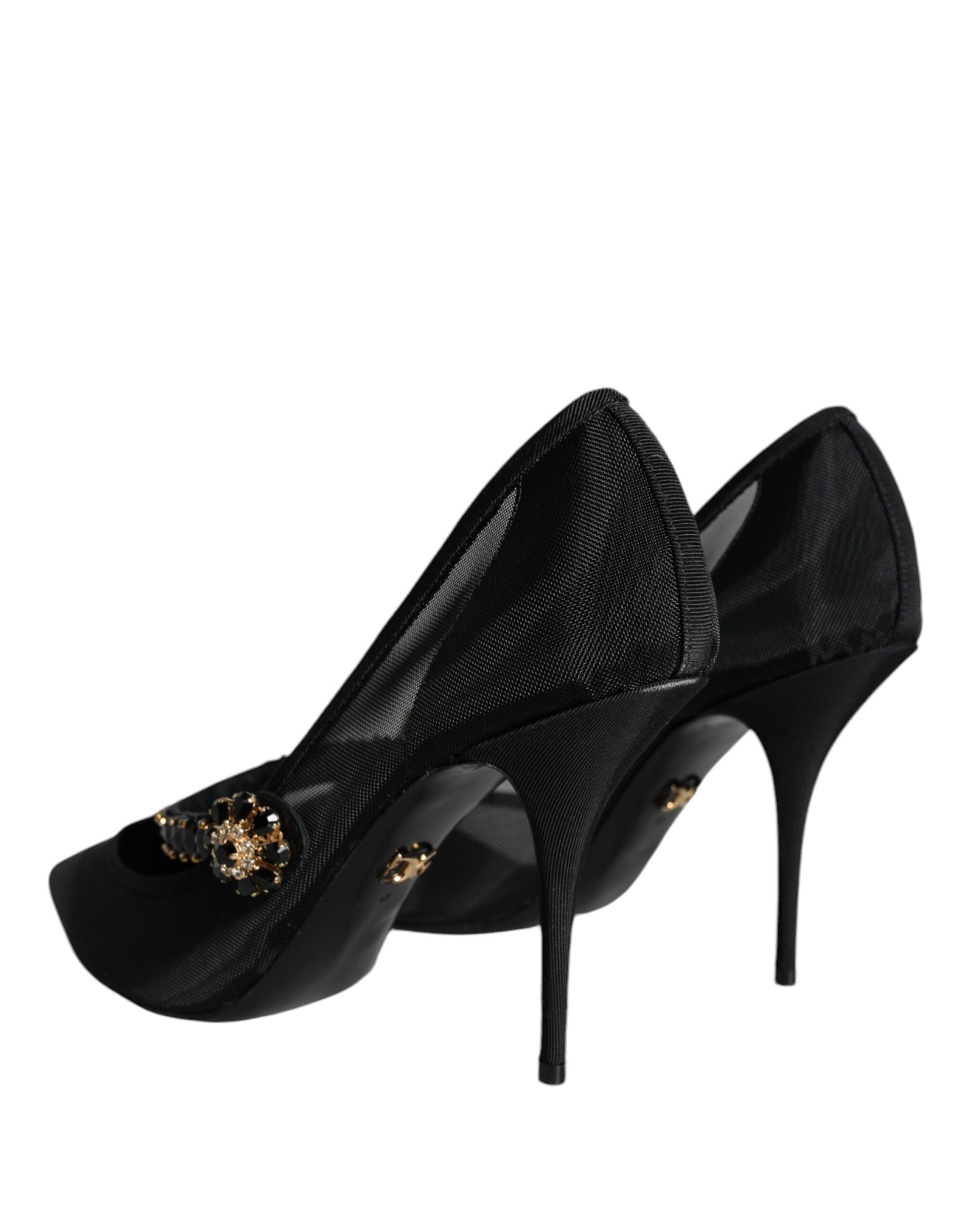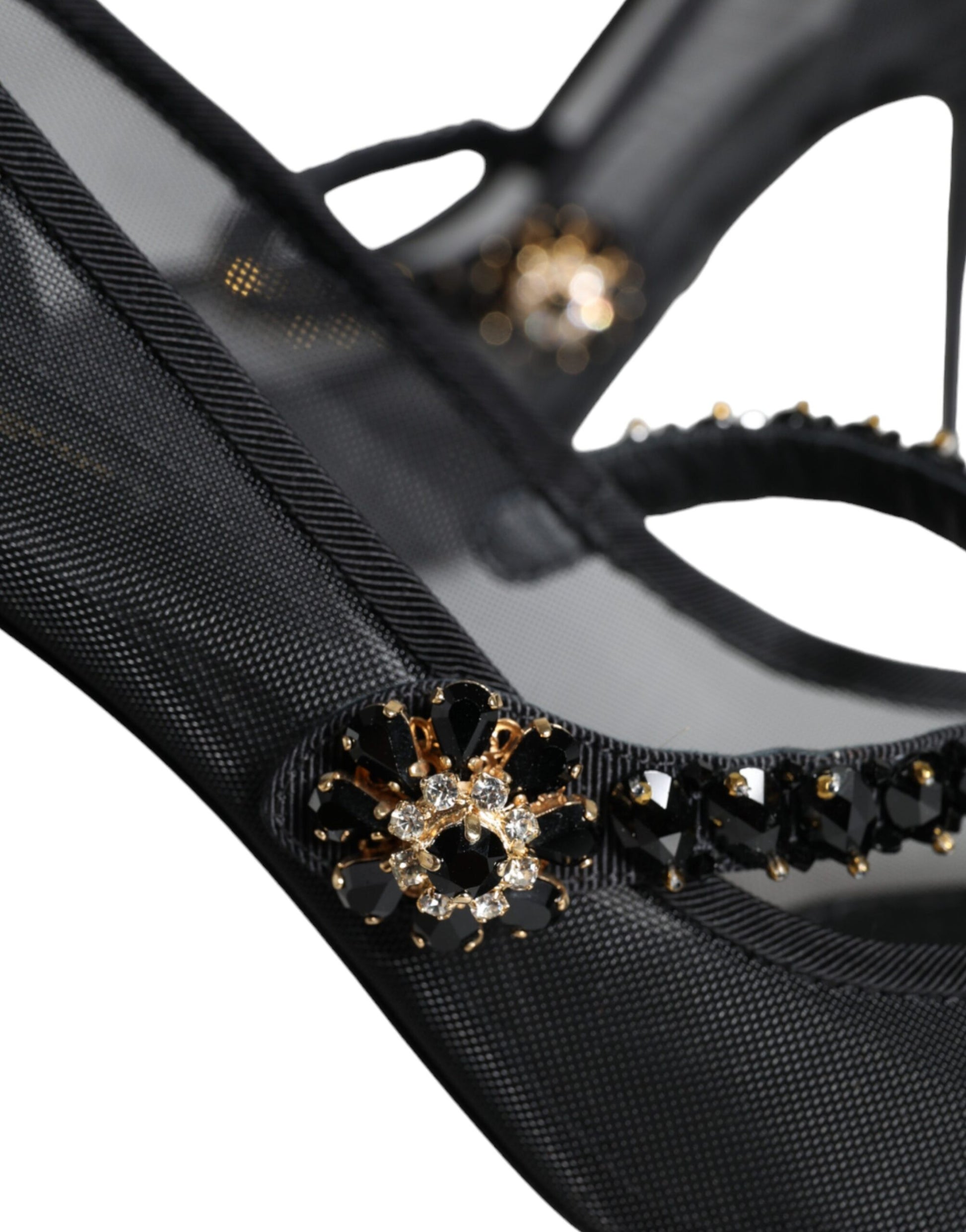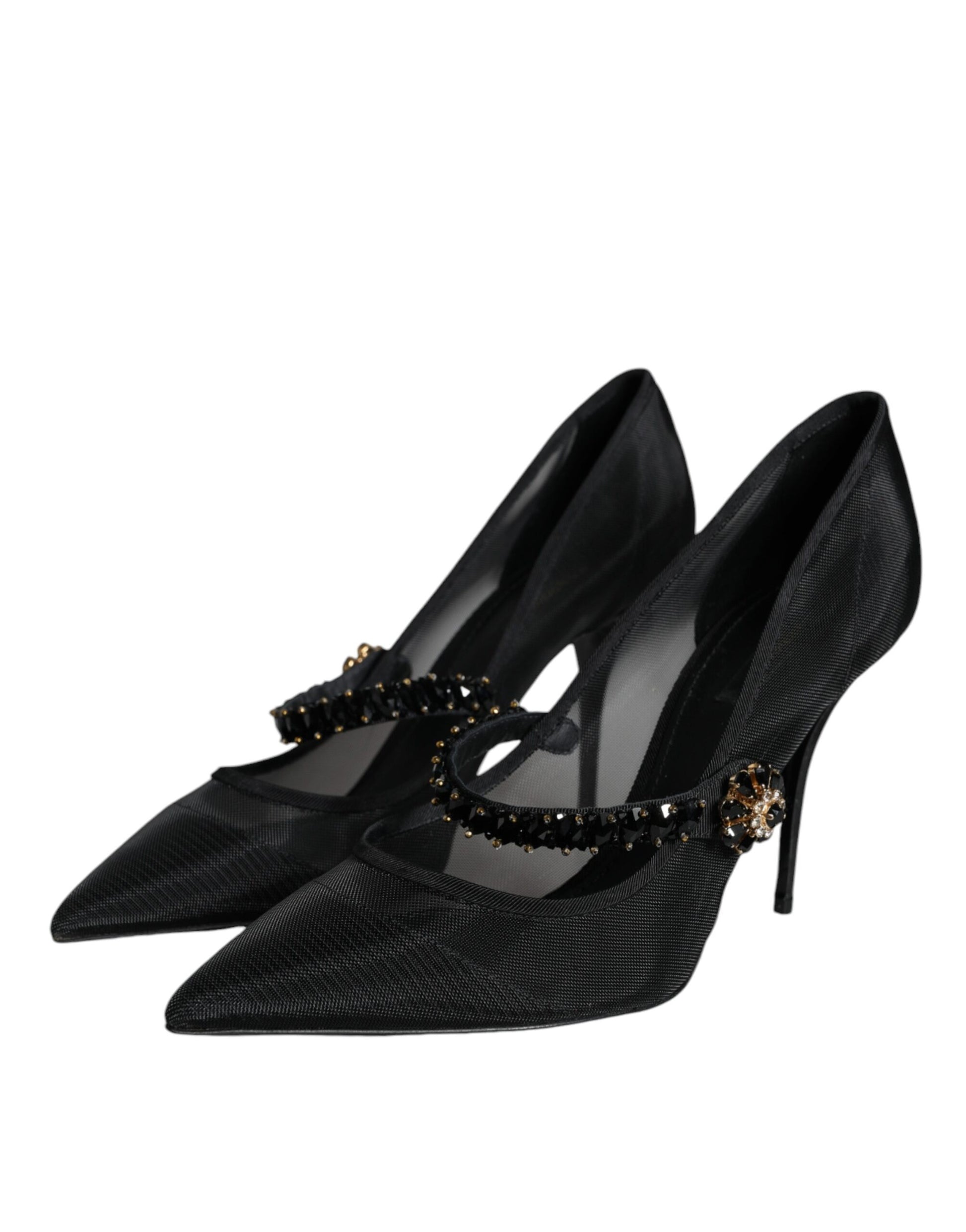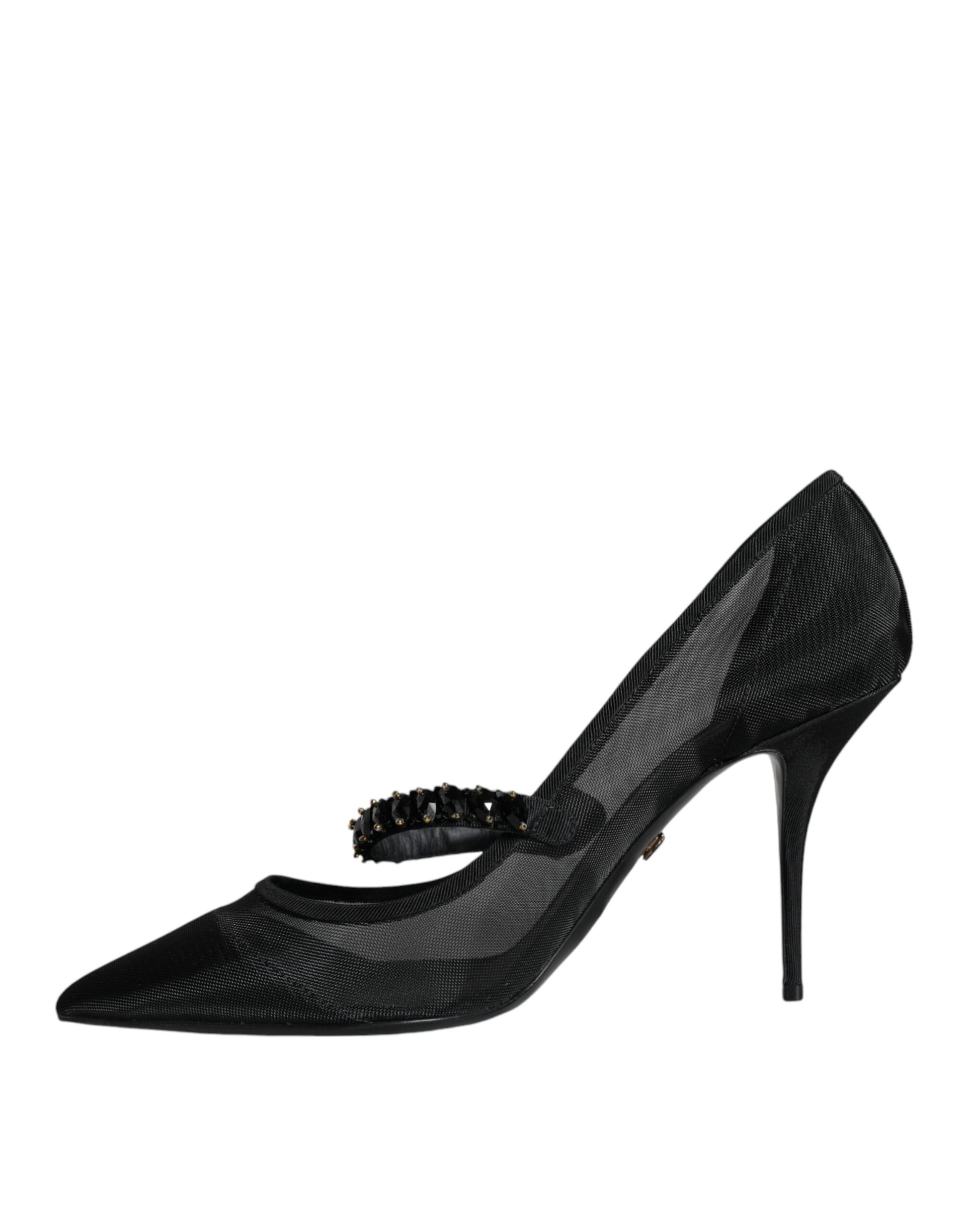 Gorgeous, brand new with tags 100% Authentic Dolce & Gabbana Mary Jane embellished mesh pumps features a high stiletto heels and a pointed toe.