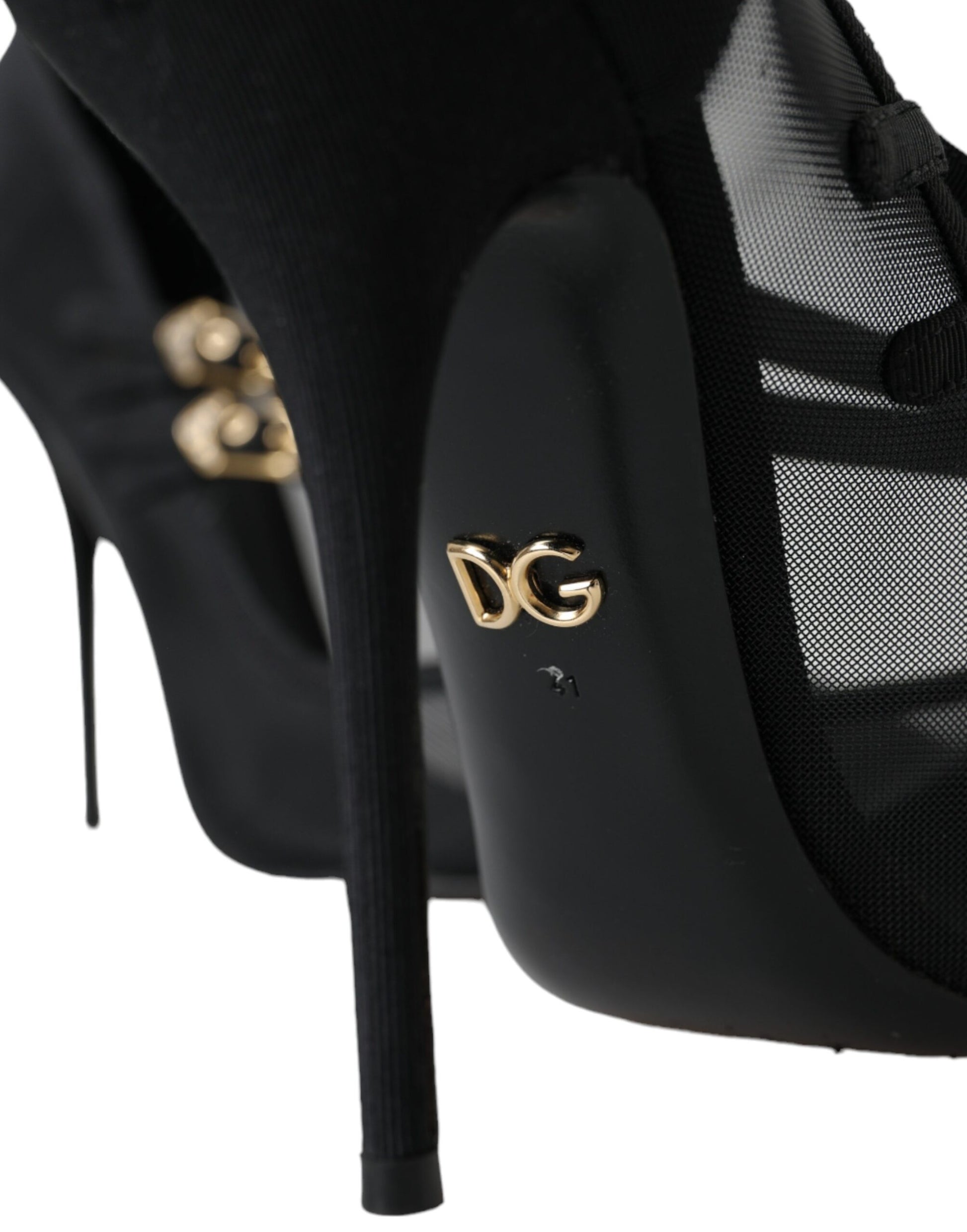 Gorgeous preowned with tags 100% Authentic Dolce & Gabbana mesh pumps features a high stiletto heels and a pointed toe.