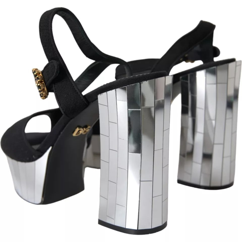 Black Mirror Heels Crystal Platform Sandals Shoes