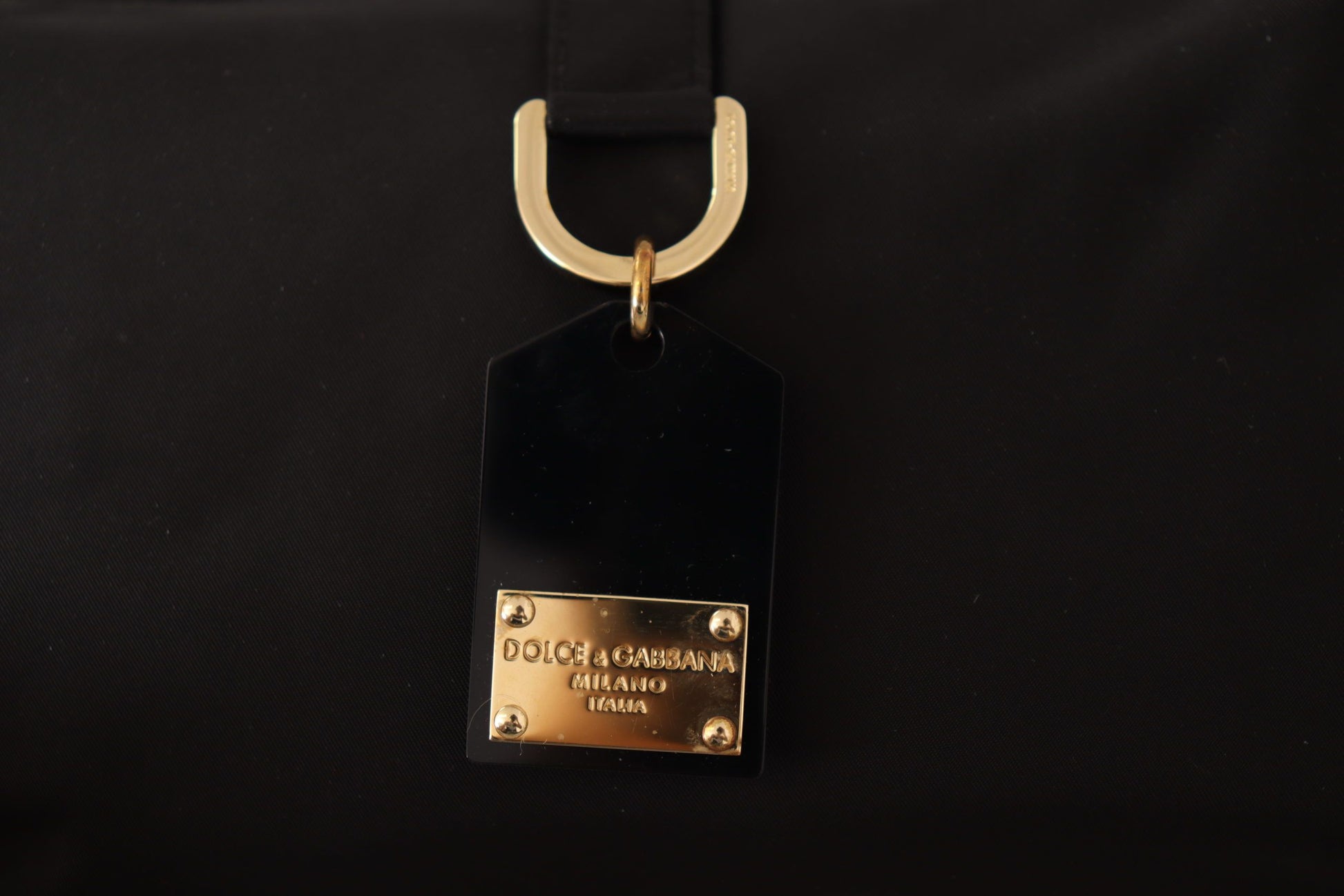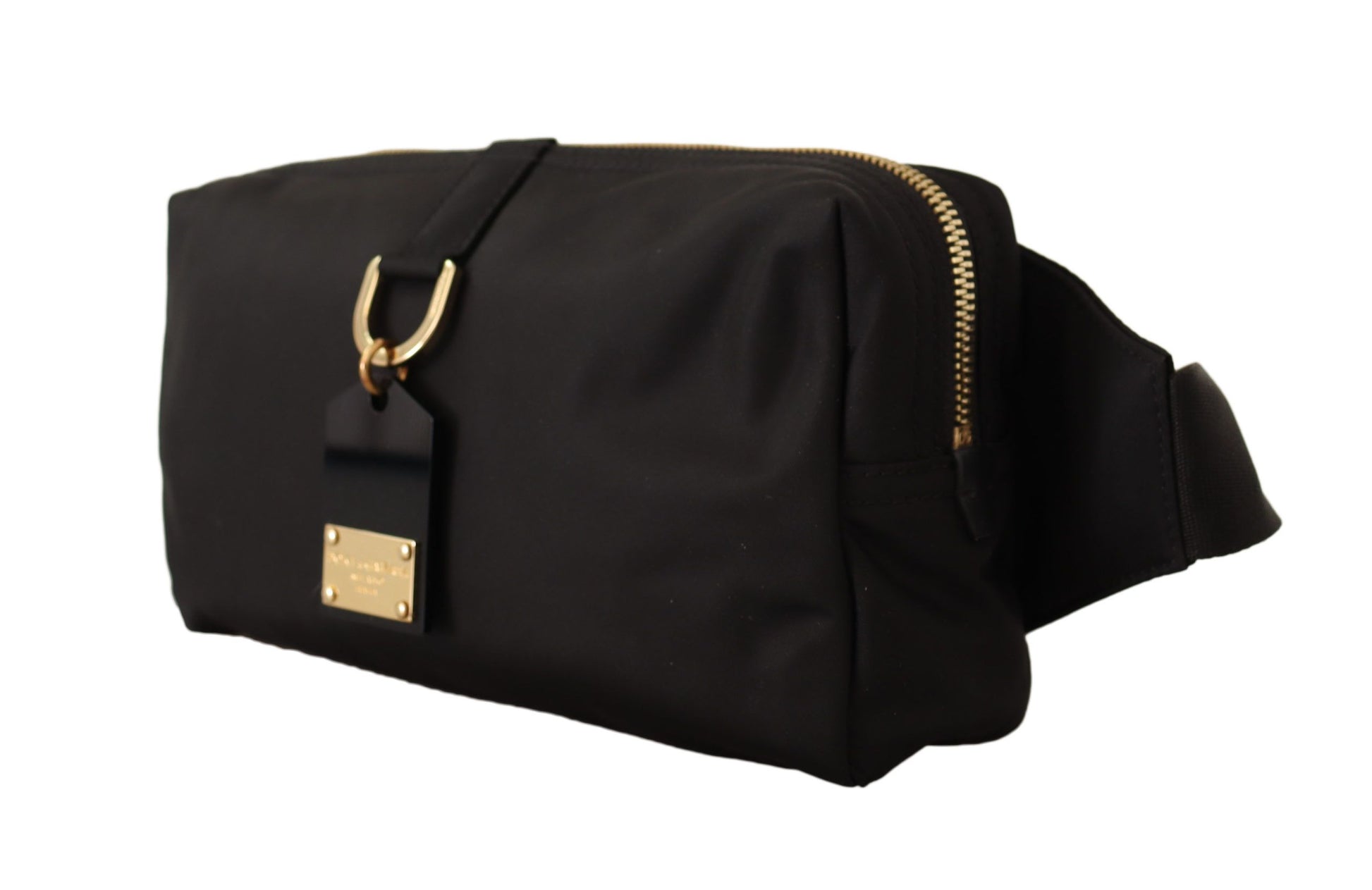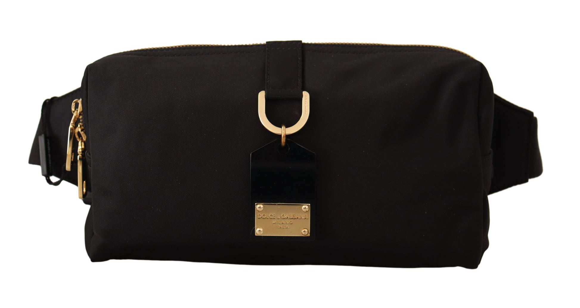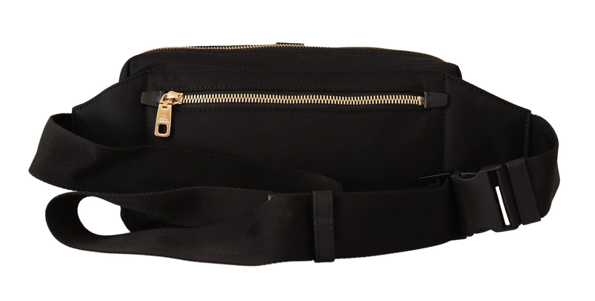 Exude sophistication with this stunning Dolce & Gabbana belt bag, a blend of functionality and Italian elegance. This new accessory, tagging along with original labels, showcases an elaborate black and gold-tone appliqué that offers a luxurious edge. It boasts a secure two-way zip fastening, complemented by lustrous gold-tone metal hardware. An external zip pocket provides quick access to essentials, while the adjustable strap ensures a custom fit. Step inside to find a neatly organized interior featuring one main compartment and eight card slots, all encased in a black leather inner lining. Crafted in Italy, this belt bag is a perfect fusion of 90% nylon and 10% leather.