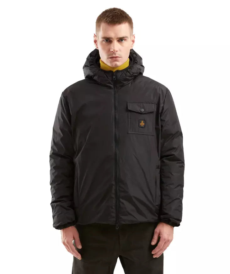 Upgrade your winter wardrobe with this sophisticated men’s winter jacket, tailored from 100% windproof and water-repellent nylon. Flaunting a smooth exterior, this jacket features an internal down-like construction with horizontal quilting, offering unmatched warmth and comfort without the bulk. It’s remarkably light and absolutely practical for the modern man on the move. Experience luxury with every touch thanks to its 100% DuPont™ Sorona® eco-down flake padding, providing excellent cold protection and superior thermal insulation to brave the chilly weather in style.
