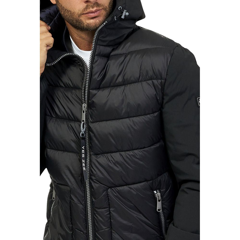 Yes Zee padded nylon jacket with hood and drawstring, zip fastening and two front pockets, logo on the shoulder