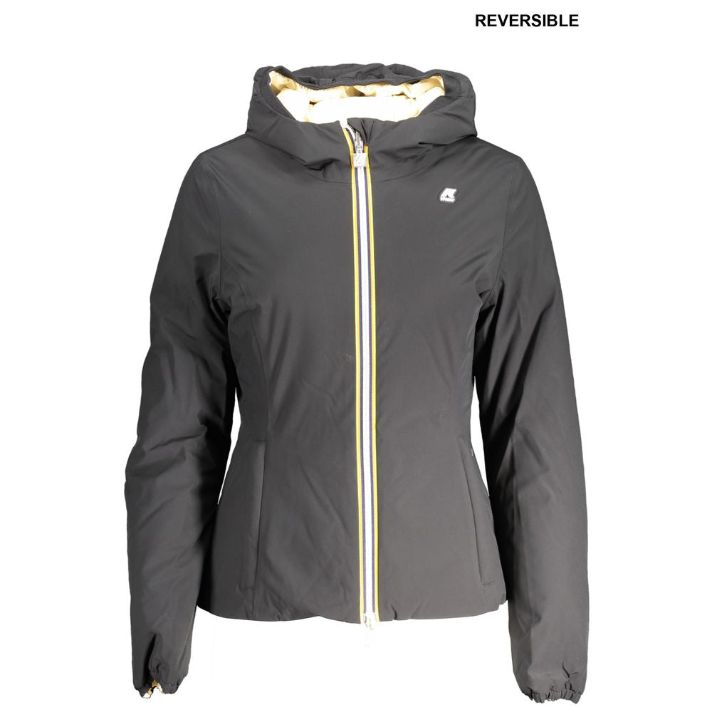 LONG SLEEVED JACKET WITH HOOD, REVERSIBLE BLACK/BEIGE, 2 EXTERNAL POCKETS, 2 INTERNAL POCKETS, CONTRAST DETAILS, ZIP, LOGO