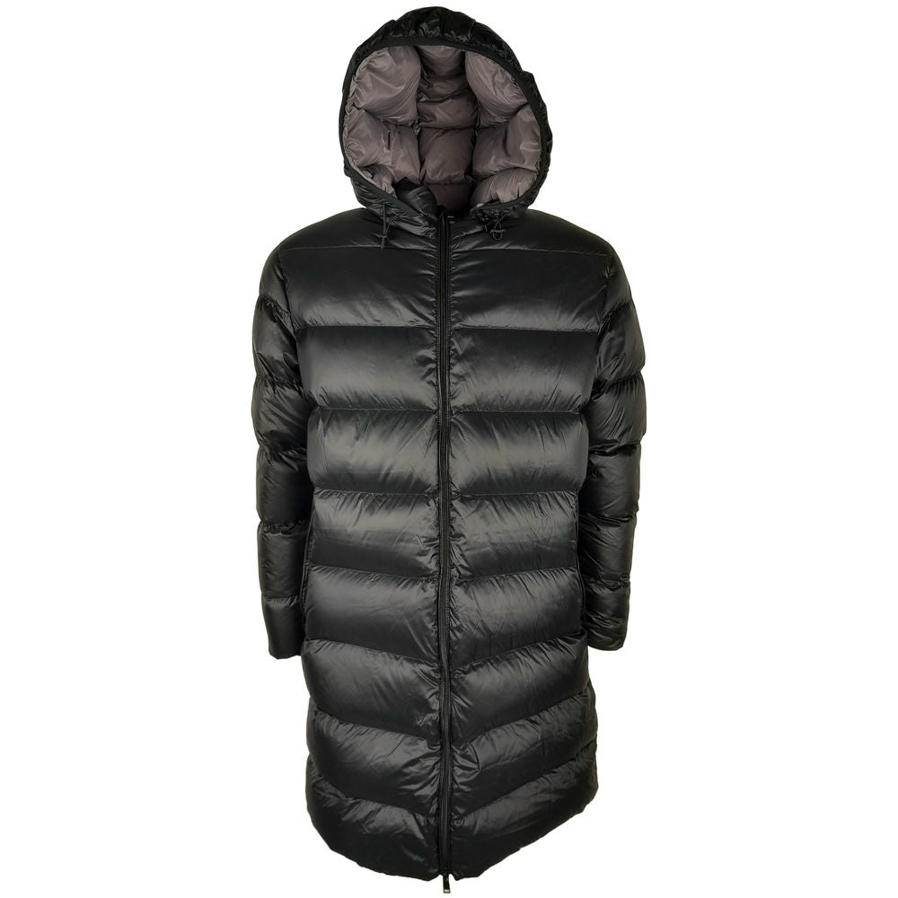 Step into the cold with elegance in Centogrammi’s latest collection piece. This long black nylon down jacket is meticulously crafted to provide warmth without compromising on style. It features plush duck down padding, ensuring you remain toasty even on the chilliest days. Tailored for convenience, the jacket comes with a zip closure and two secure side pockets, each with its own zip. The hood is adjustable with a drawstring, allowing you to seal in the warmth and shield yourself against the wind. This piece is a blend of functionality and sophisticated design, ideal for the fashion-savvy individual.