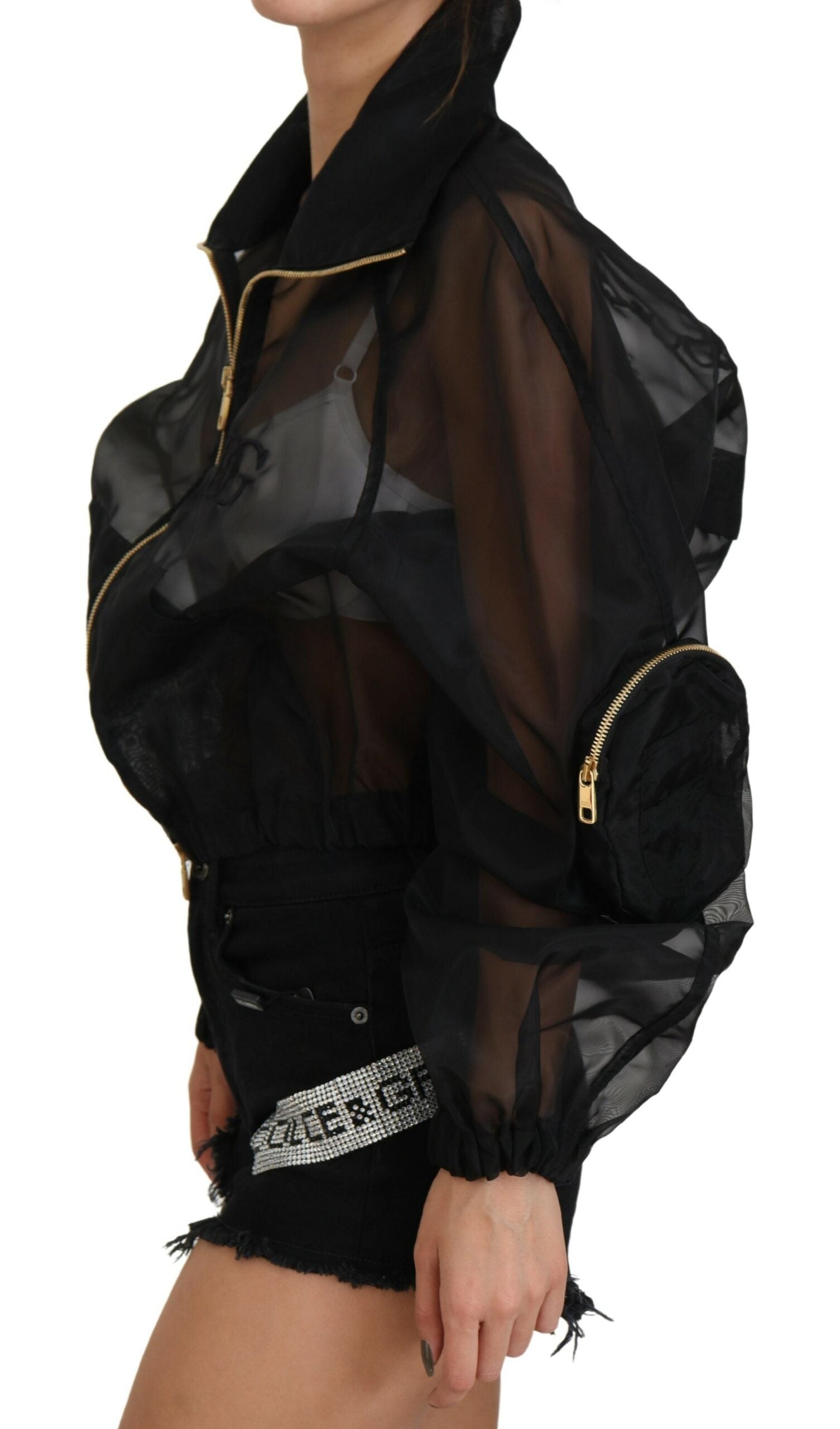 Elegant Black Bomber Jacket with High Craftsmanship