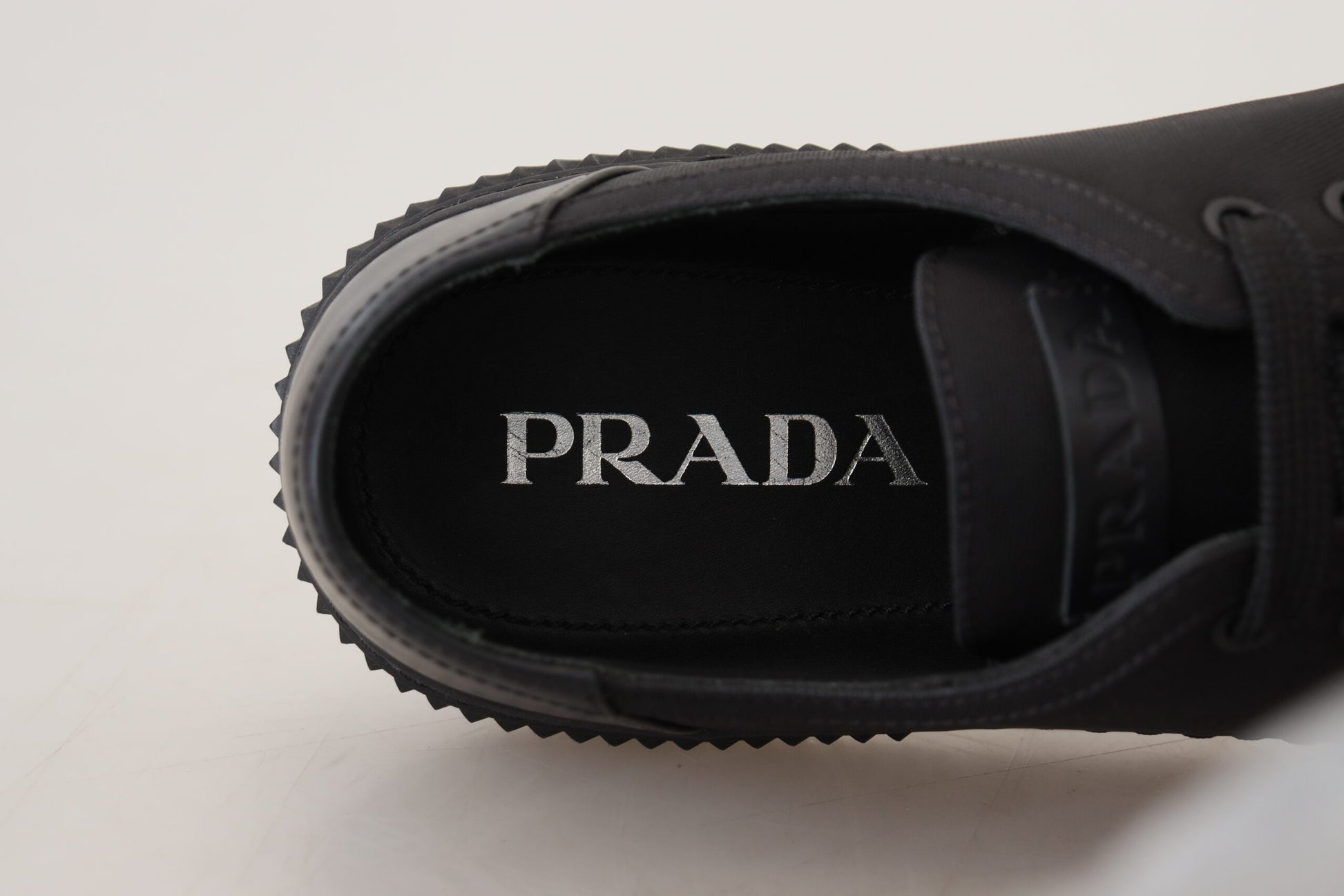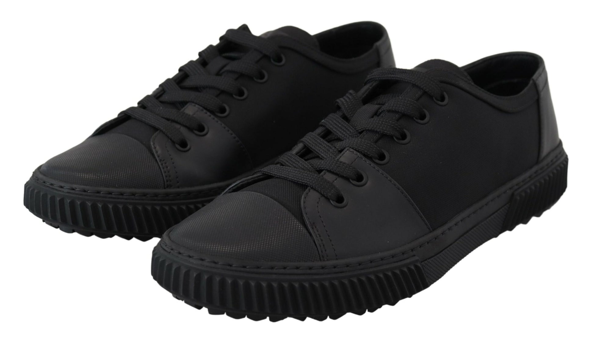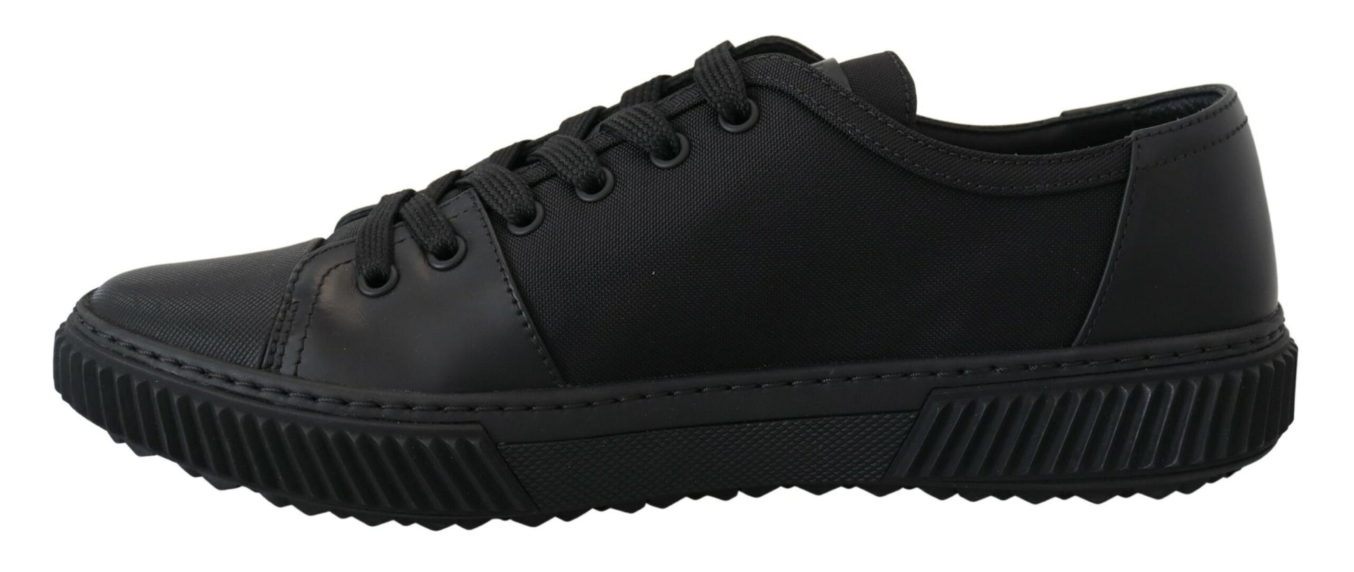 Elevate your footwear collection with these sleek and stylish black low-top sneakers. Perfect for fashion-forward individuals, these sneakers feature a luxurious high-tech nylon construction, ensuring both comfort and durability. Adorned with the iconic logo details, they encapsulate the essence of sophistication and are meticulously crafted in Italy, showcasing remarkable craftsmanship. These exclusive Prada sneakers are a true testament to timeless design and are sure to become a staple in your wardrobe.