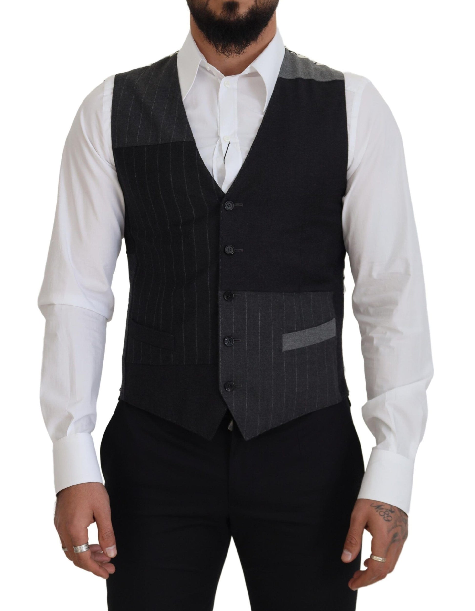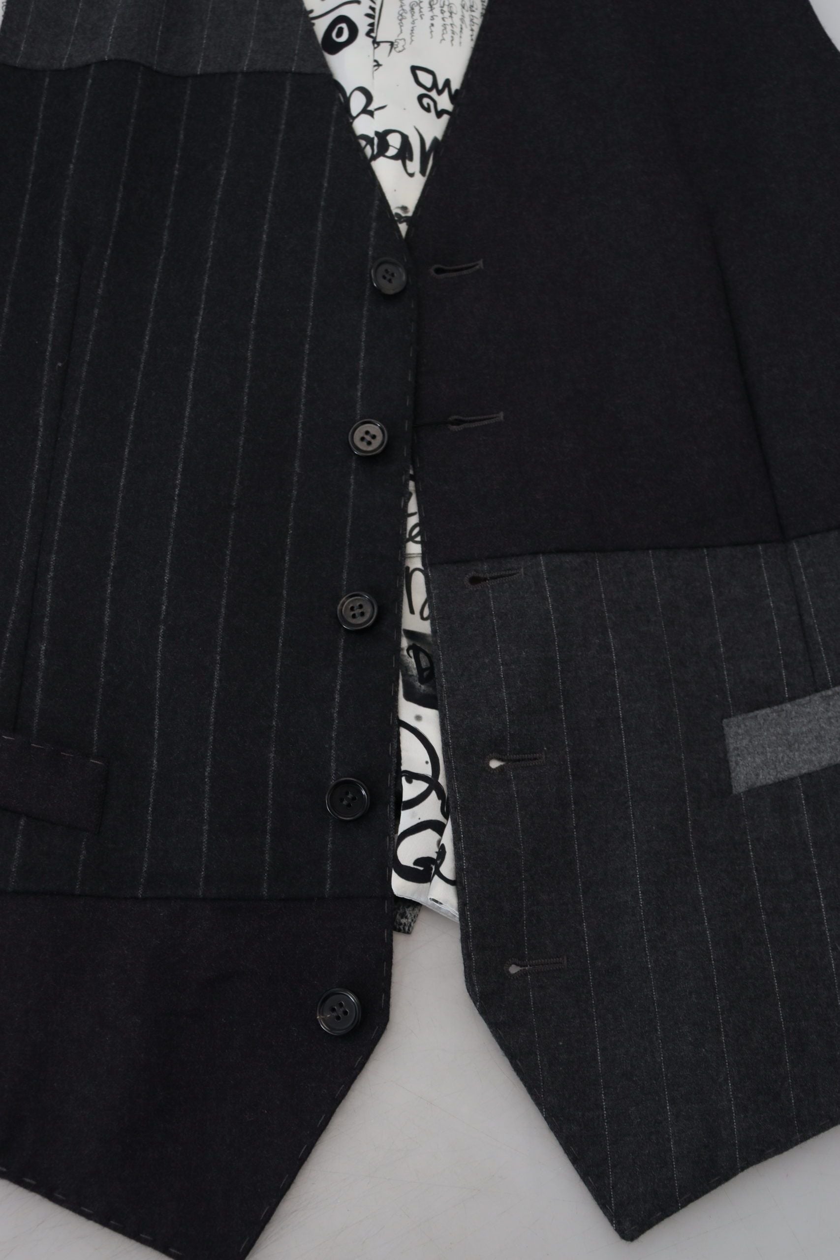 Sophistication meets comfort in this impeccably crafted Dolce & Gabbana formal dress vest. Perfect for elevating your evening attire, this single-breasted vest boasts a sleek black patchwork striped pattern and refined logo details. Meticulously made in Italy, it’s a testament to unsurpassed quality and elegant styling.