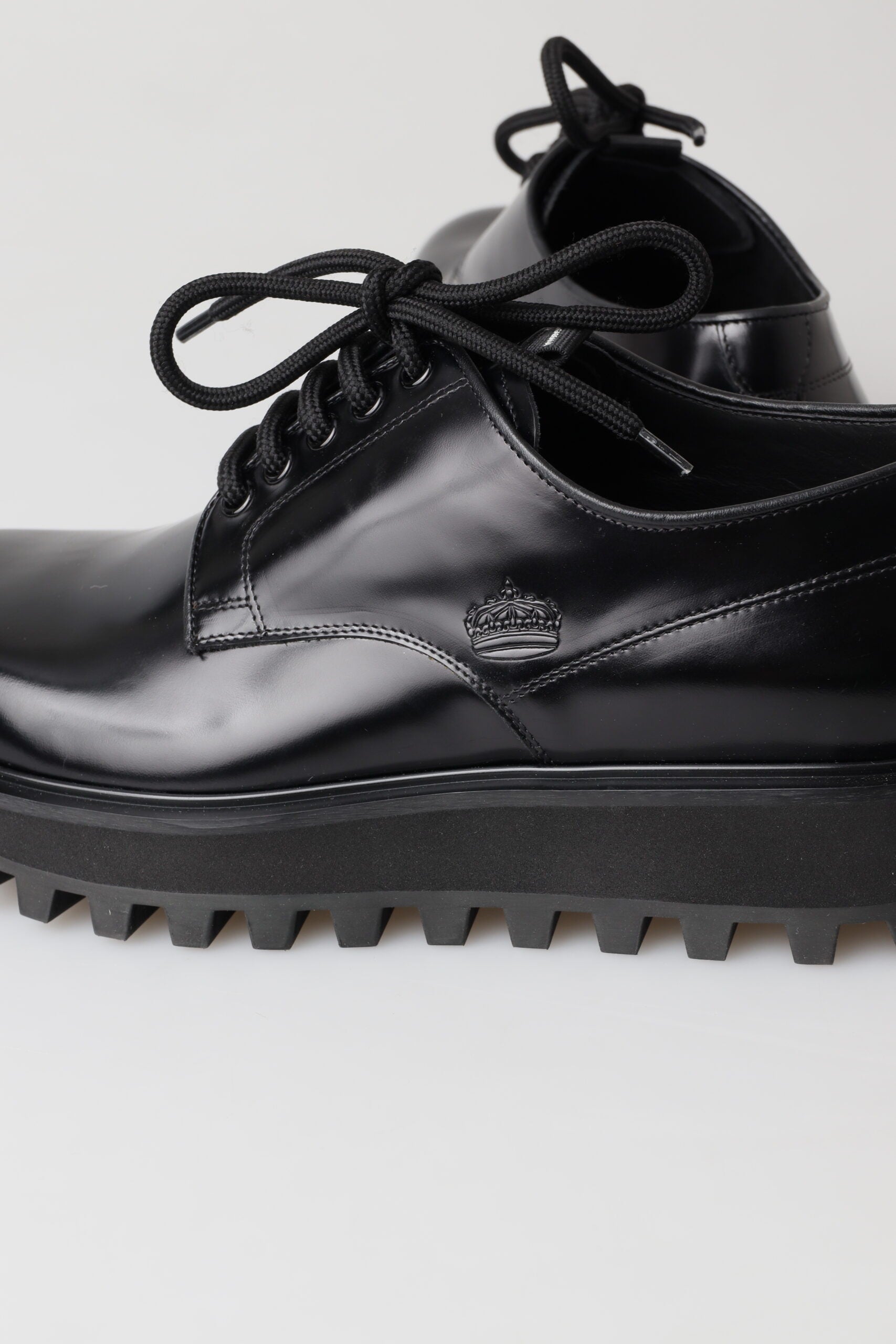 Step into elegance with these pristine, brand new Derby formal shoes by Dolce & Gabbana . Crafted from the finest 100% leather, these shoes promise both luxury and durability. The sleek black colorway offers a timeless look, while the rubber sole ensures practicality without sacrificing style. Impeccably made in Italy, these shoes feature the iconic logo details, reflecting the exquisite craftsmanship and attention to detail that Dolce & Gabbana is renowned for.