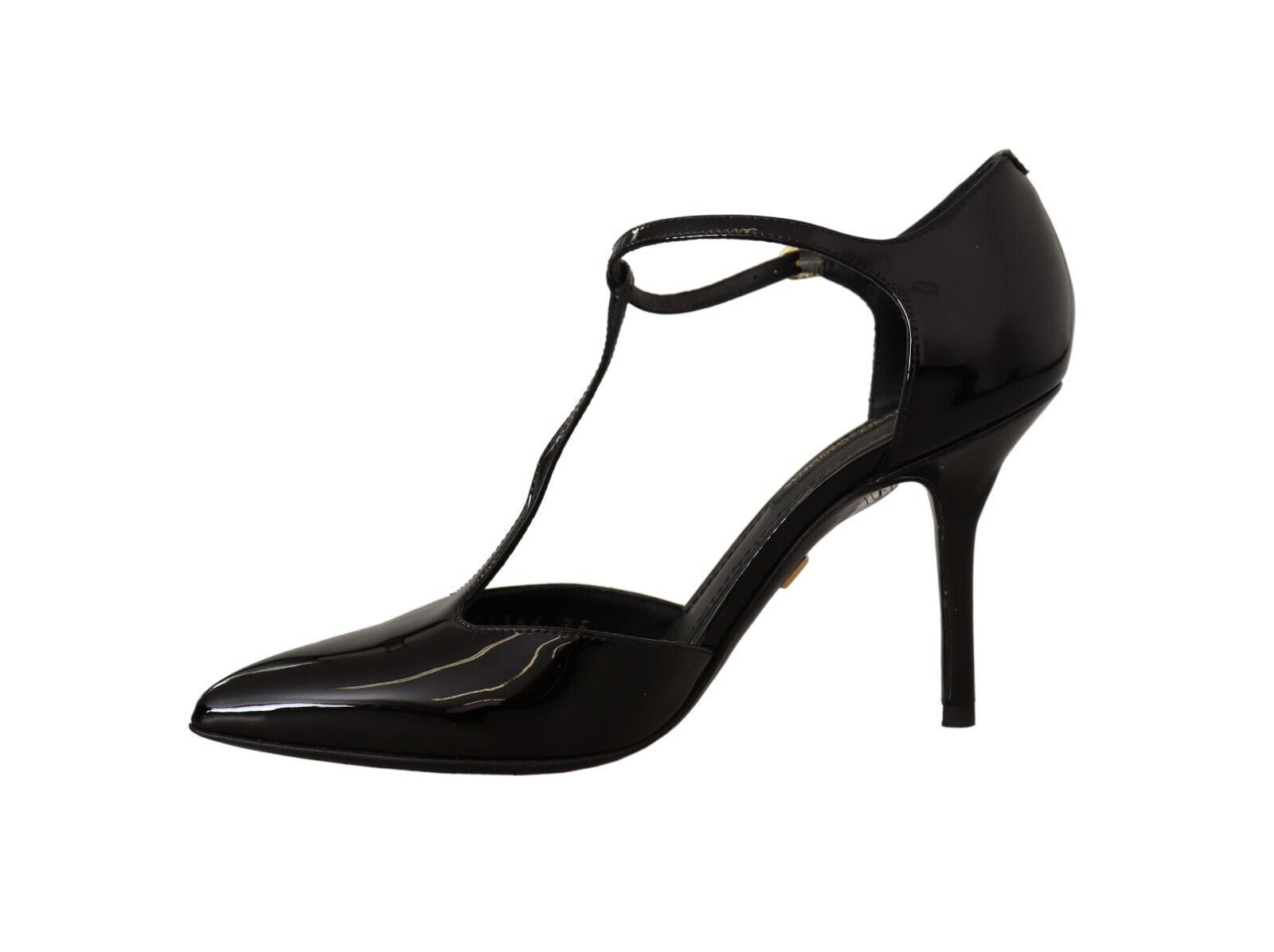 Step out in sophistication with these exquisite black leather T-strap heels sandals from Dolce & Gabbana. Meticulously crafted in Italy, these sandals are a testament to luxurious style and comfort. Featuring logo details and a refined leather sole, these are perfect for elevating any ensemble.