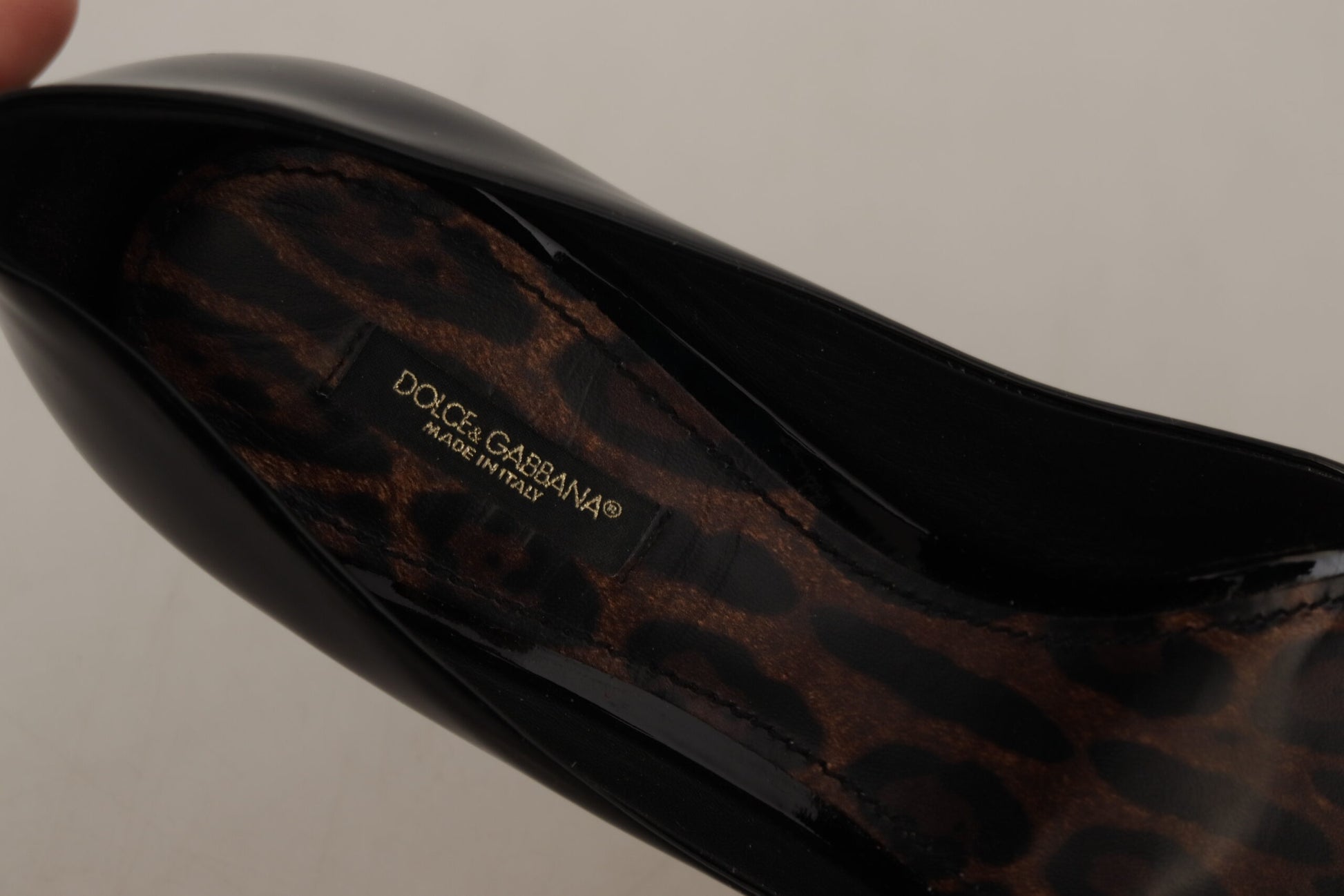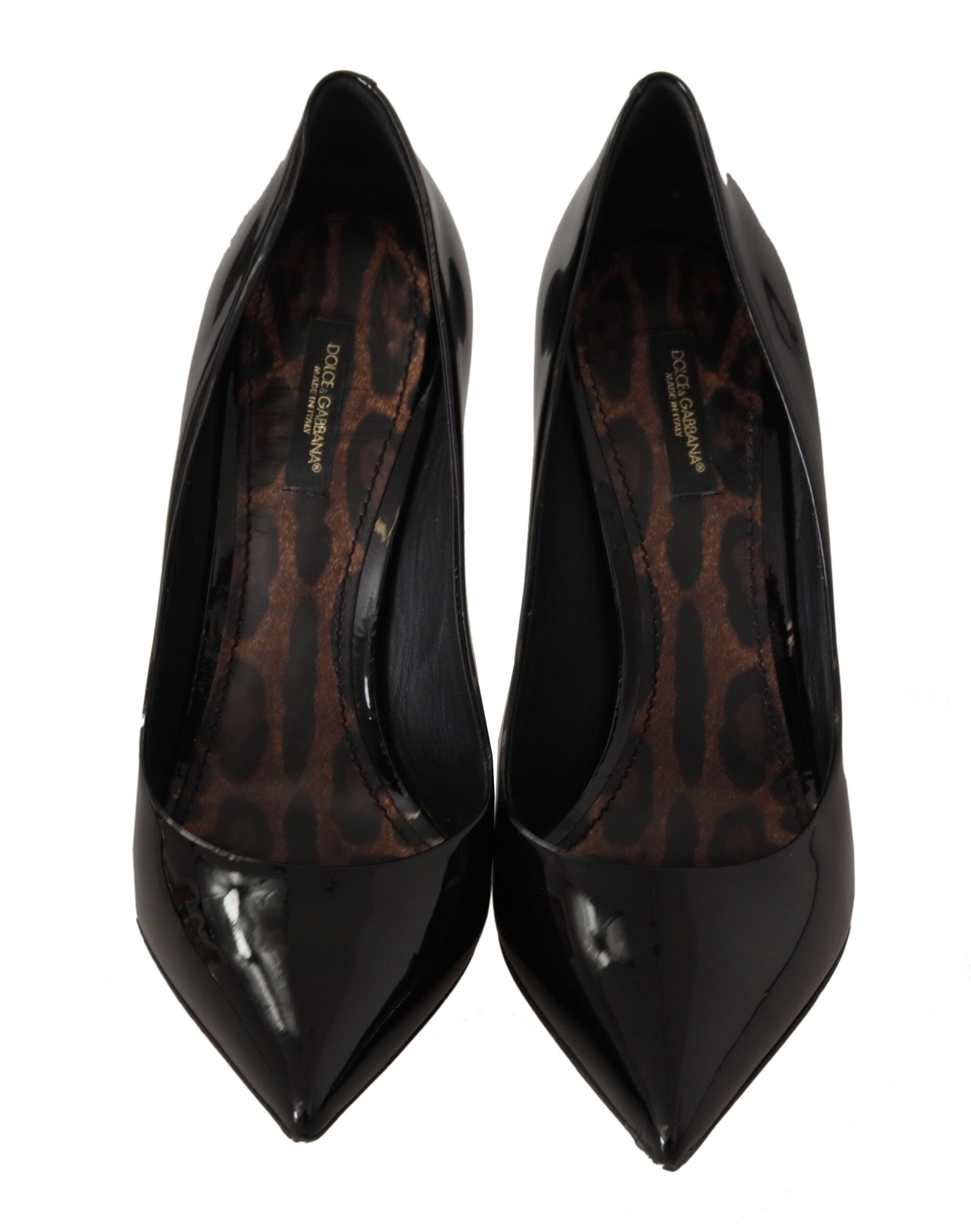 Step into luxury with these stunning, brand new heels from the esteemed Dolce & Gabbana. Crafted from the finest patent leather, these pumps are a true statement of elegance and sophistication. The chic black finish is complemented by a bold leopard print sole, adding an exquisite touch to your ensemble. With attention to detail and comfort, these high-quality Italian-made pumps are adorned with the iconic logo, ensuring they’re as stylish as they are comfortable.