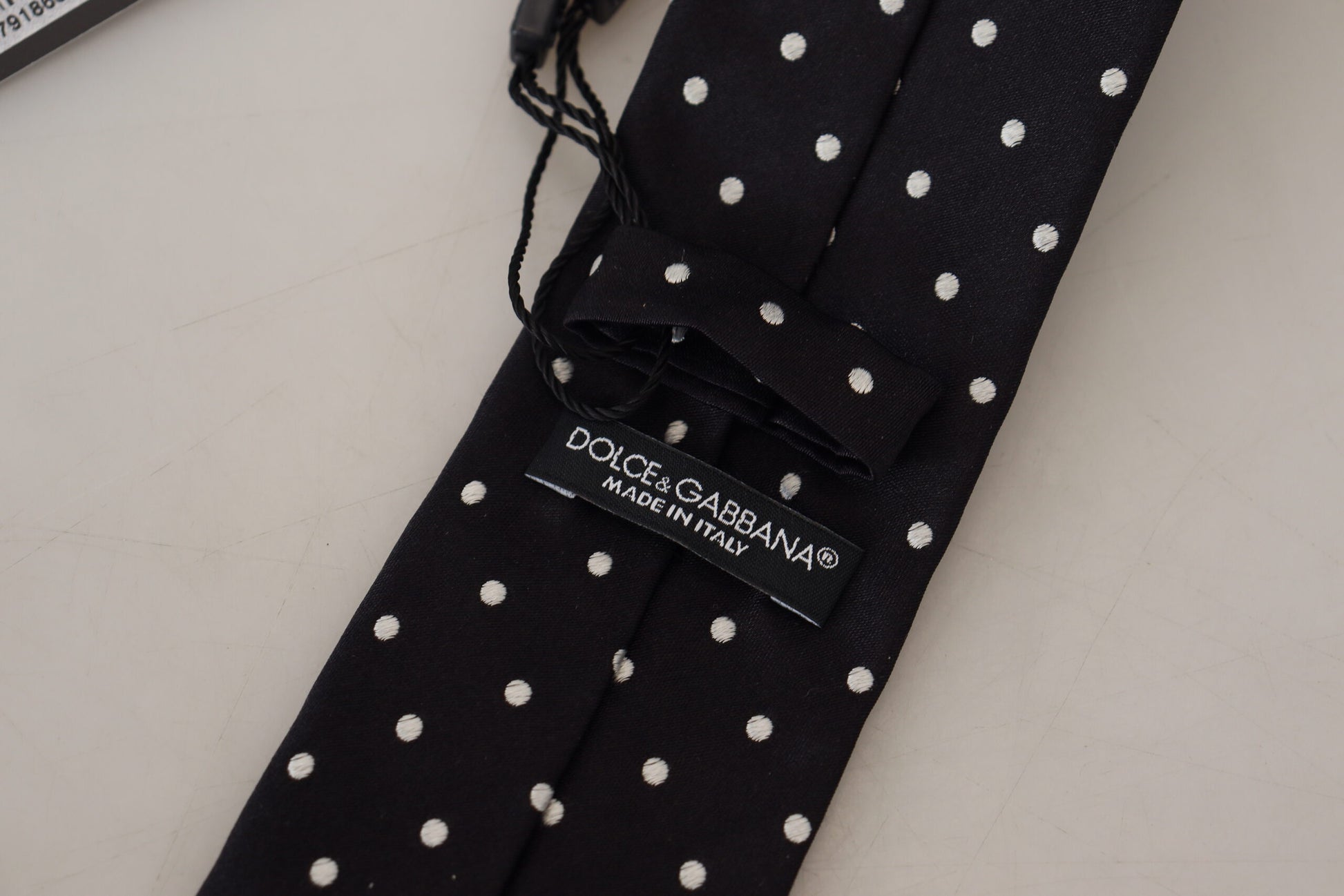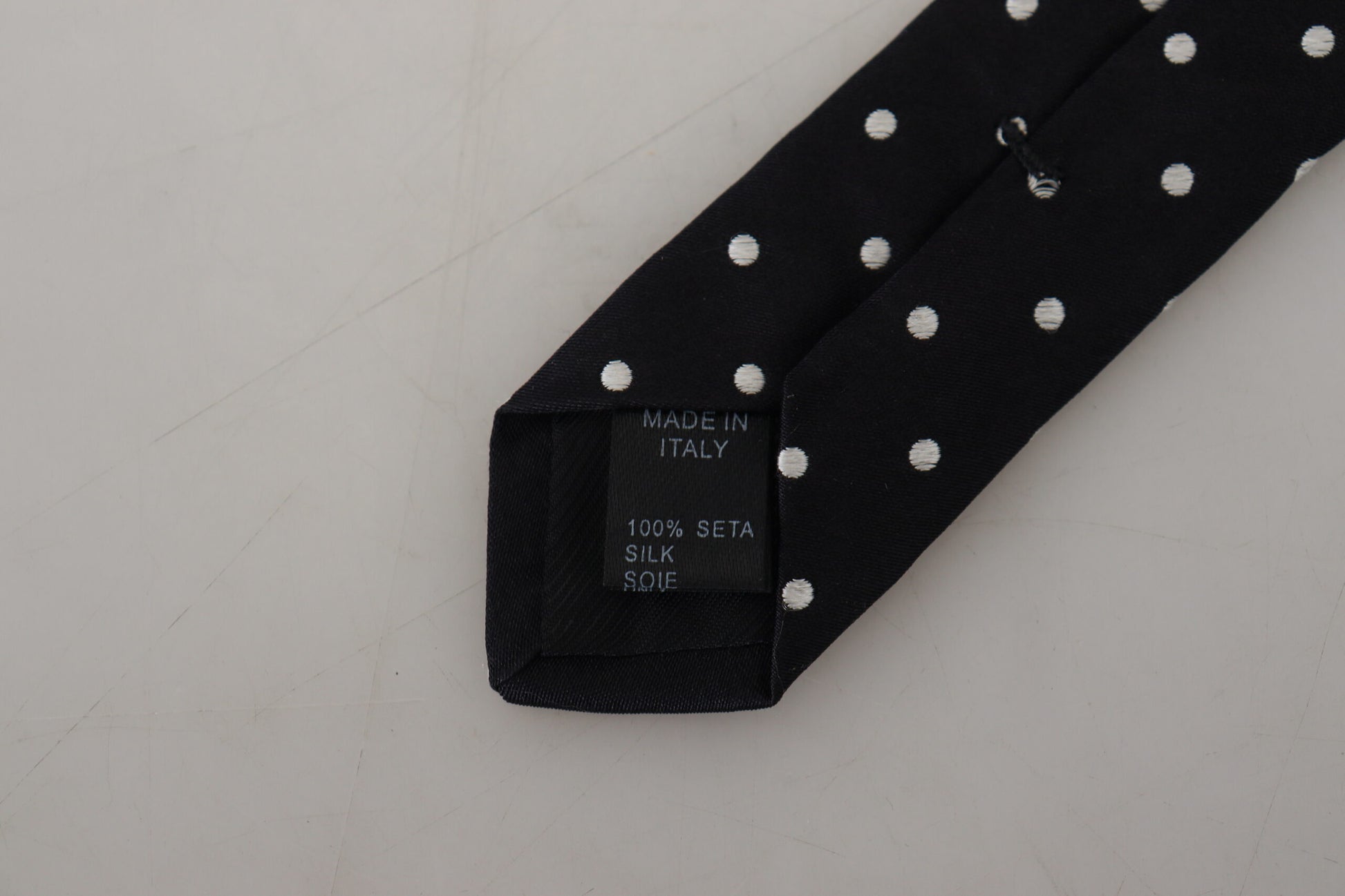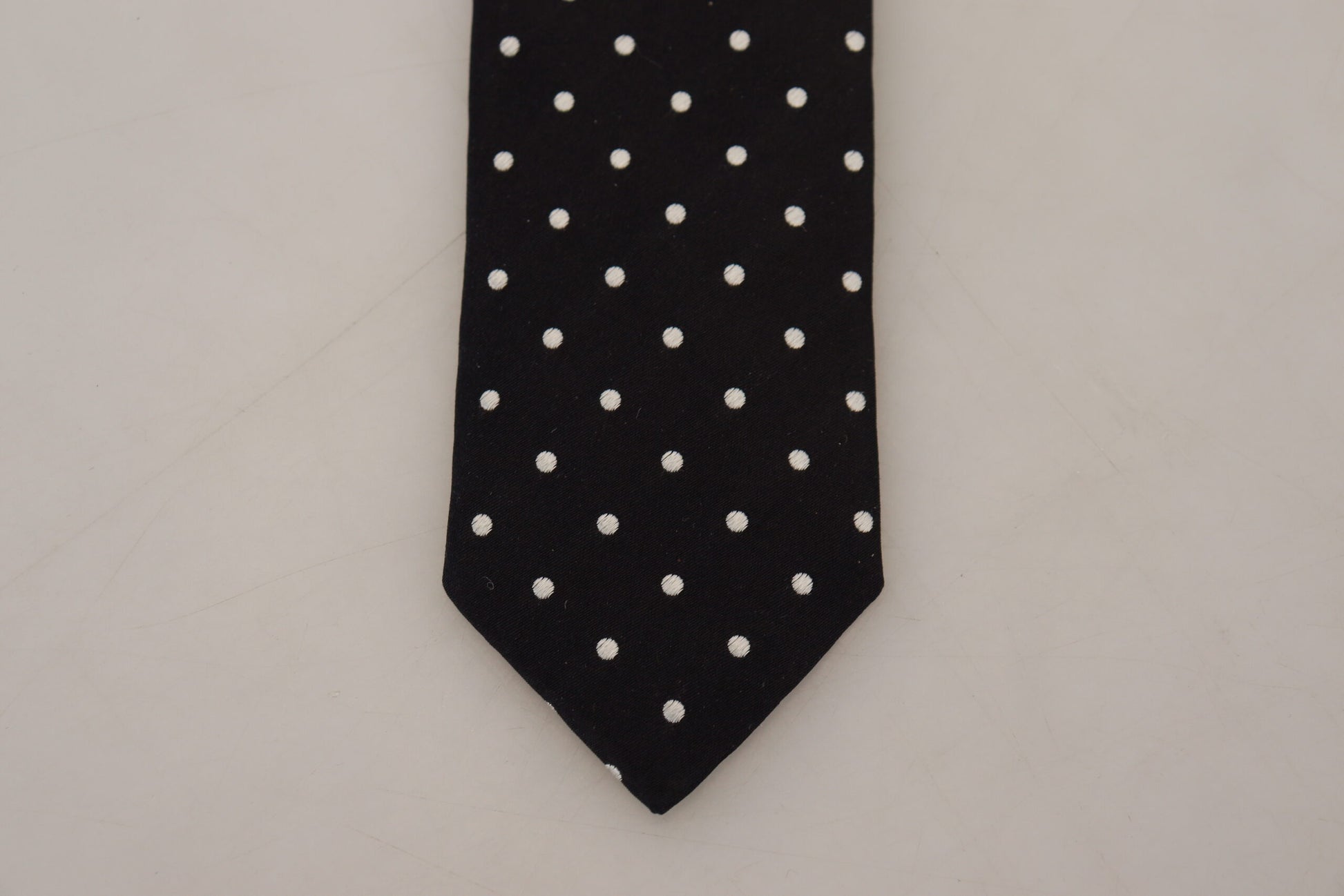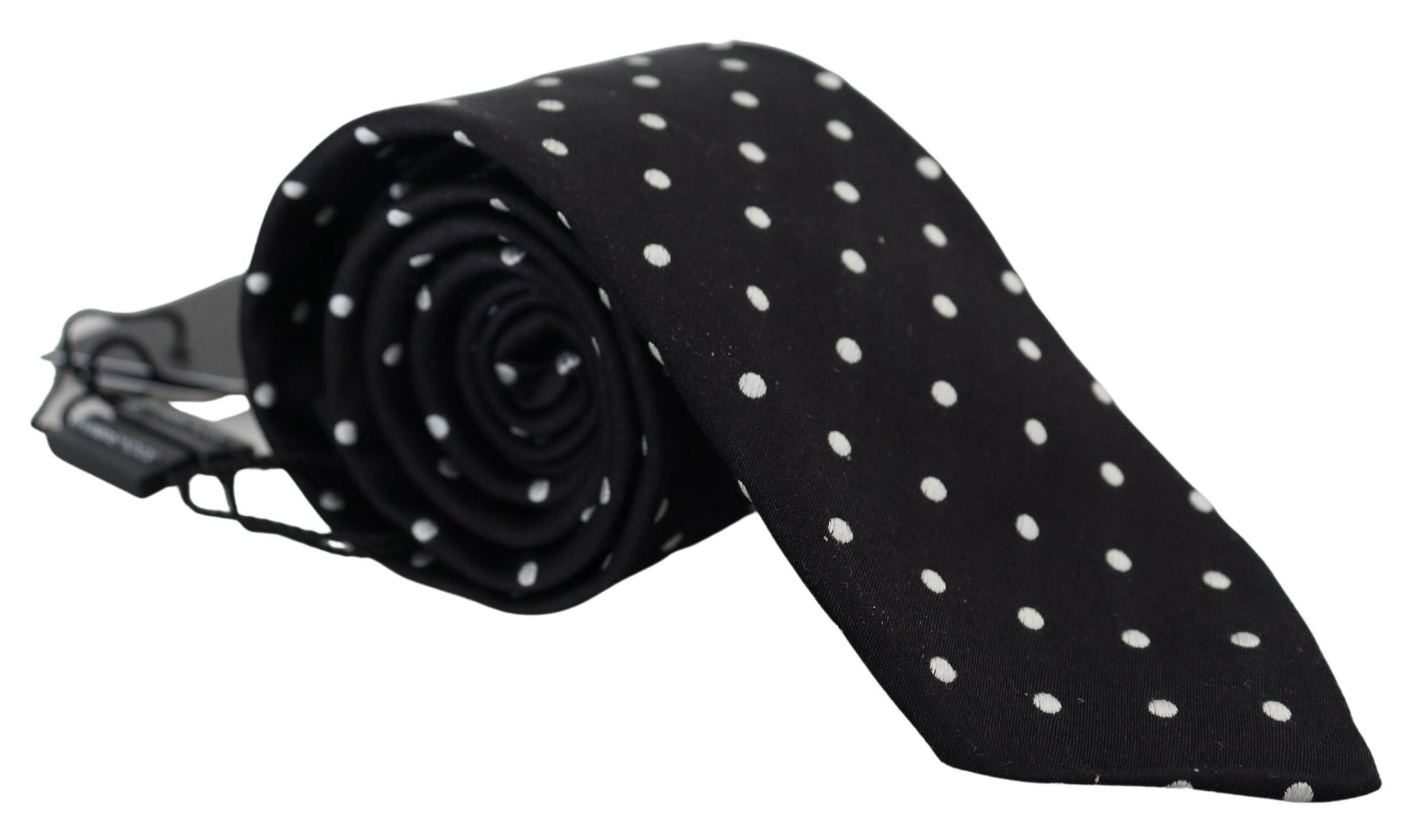 Adorn your suit with a touch of elegance courtesy of this stunning tie. Crafted from 100% pure silk and hailing from the exclusive MainLine collection of Dolce & Gabbana, this black and white polka dot accessory is sure to make a sophisticated statement. The perfect element to elevate your formal attire, it’s not just a tie—it’s a statement of style, luxury, and exquisite craftsmanship, all made in Italy.