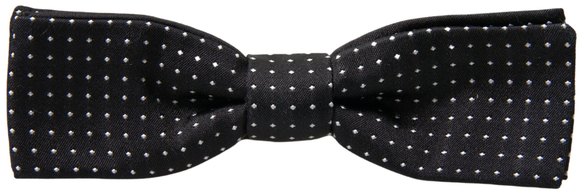 The epitome of sophistication meets Italian craftsmanship with this stunning 100% Authentic Dolce & Gabbana black bow tie. Designed to elevate any formal ensemble, it features a convenient metal clasp in the form of a hook for easy wear. A perfect blend of luxury and practicality, this bow tie is an essential in the exclusive Dolce & Gabbana collection, crafted with the utmost attention to detail in Italy.
