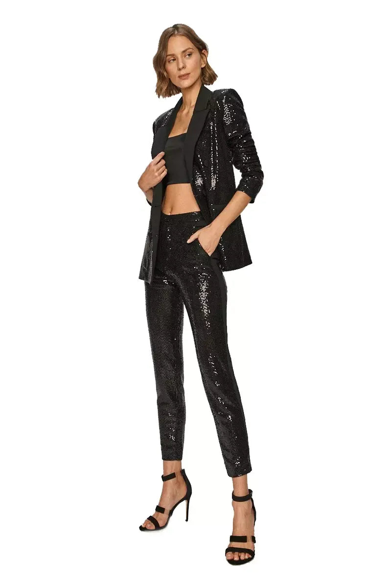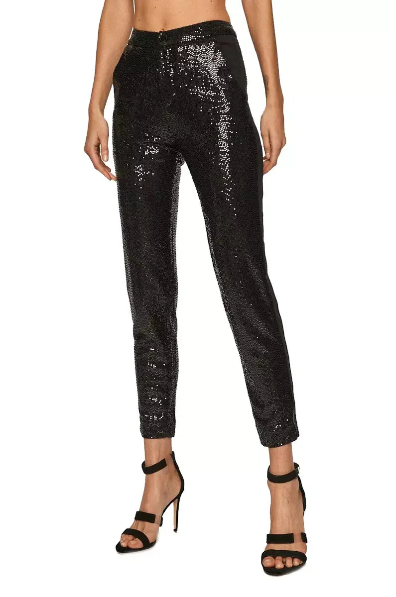 Discover the perfect blend of glamour and comfort with our sequined black nylon pants. These stylish bottoms feature a dazzling array of sequins that catch the light beautifully, adding a touch of sparkle to any outfit. The practical button and zipper closure ensure a snug fit, while side and back pockets offer functionality without compromising on style. Experience a luxurious feel with a sophisticated edge.