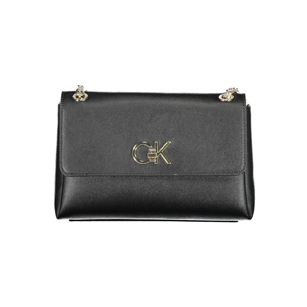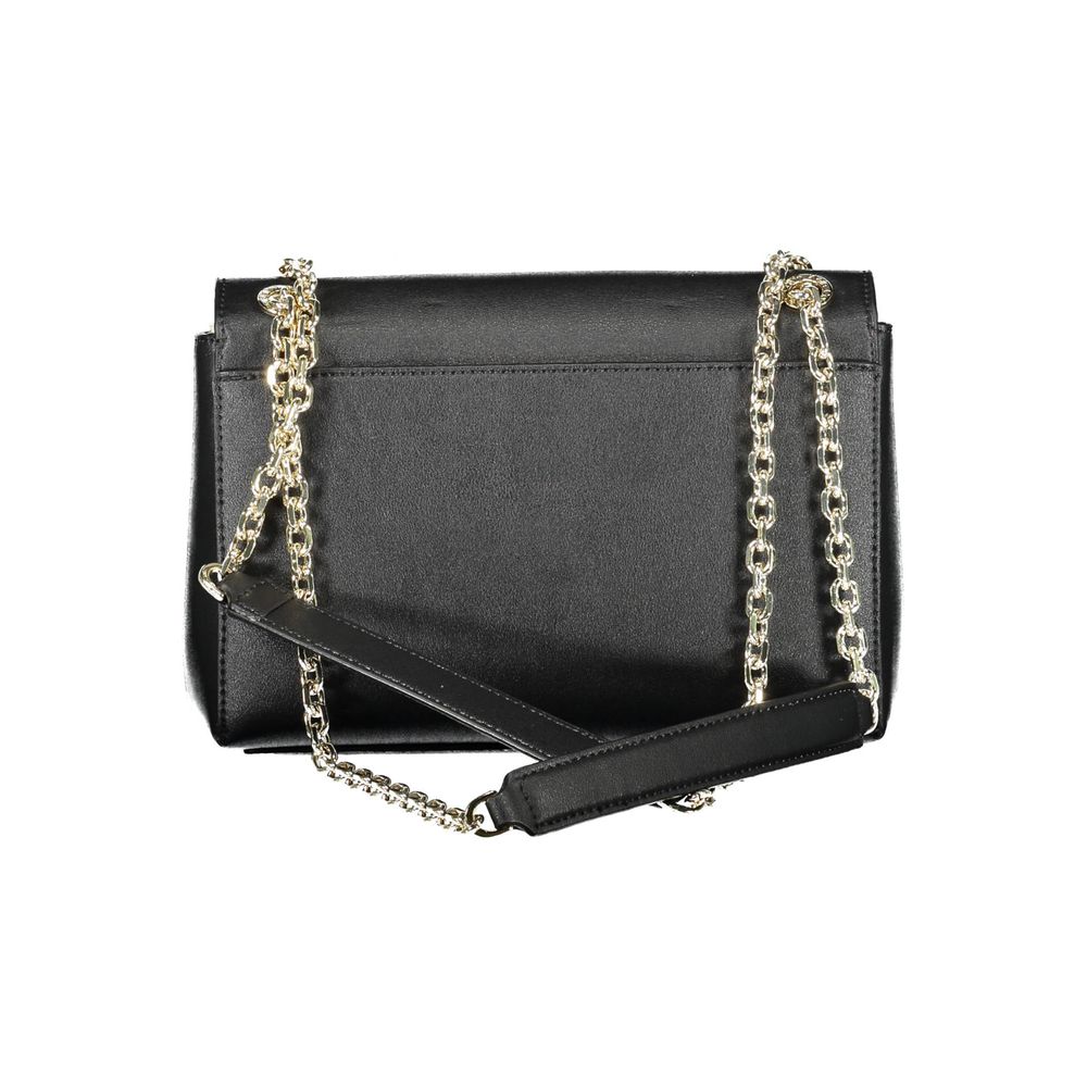 bag with 2 shoulder handles with chain, 1 external pocket, 2 internal pockets, turn lock closure, logo, 100% polyester recycled
