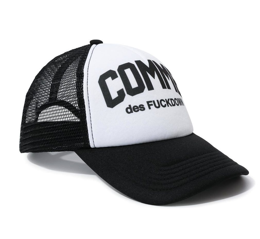 Elevate your urban streetwear with a bold statement from Comme Des Fuckdown. This hat is not just a fashion statement but a declaration of style rebellion. Designed with the iconic logo print front and center, paired with a classic visor silhouette, it ensures you conquer the concrete jungle with attitude. The mesh back ensures breathability for all-day comfort, making it an indispensable addition to your accessory wardrobe. This black Comme Des Fuckdown hat is where audacious design meets everyday functionality.