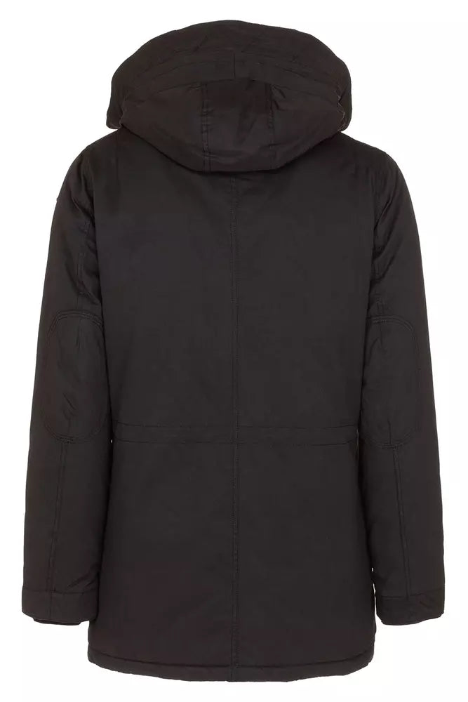 Step into comfort and style with the sleek men’s jacket crafted from a premium blend of materials for ultimate durability and a soft feel. Designed with functionality in mind, it features a hood with drawstring, secure front zipper and button closure, and an inner drawstring at hip level for a customizable fit. Stow your essentials safely in the high and low side pockets, each with a practical snap button closure. A true blend of elegance and practicality, this jacket is an indispensable addition to your wardrobe.