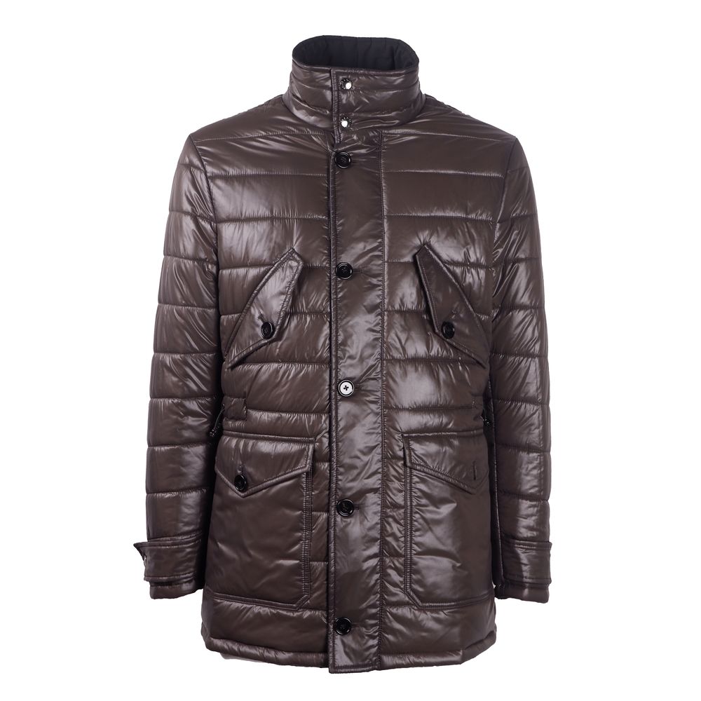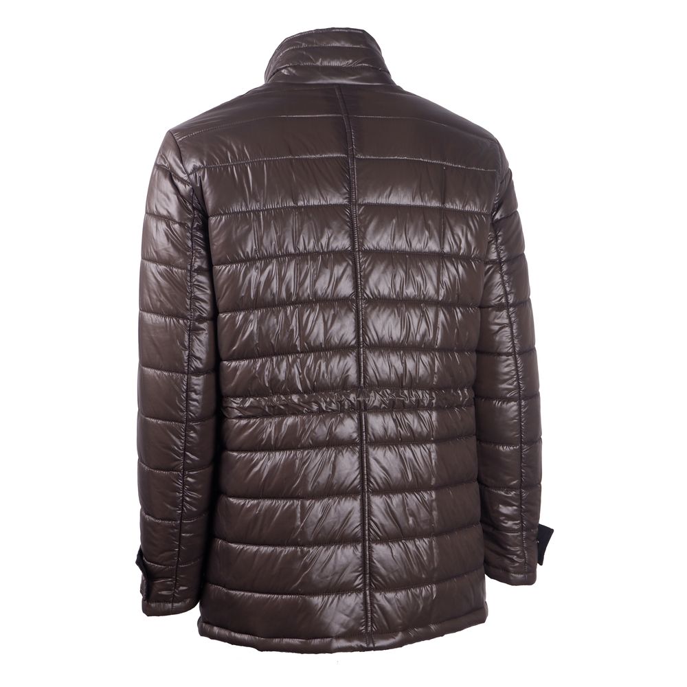 Experience the luxury of choice with this versatile reversible coat. One side boasts a classic black finish, perfect for timeless styling, while the other side features an eye-catching metallic gray for when you want to stand out. Crafted with meticulous Italian quality, this coat ensures both comfort and durability with its 100% polyester material. Effortlessly switch between looks with the seamless zipper and button closure.