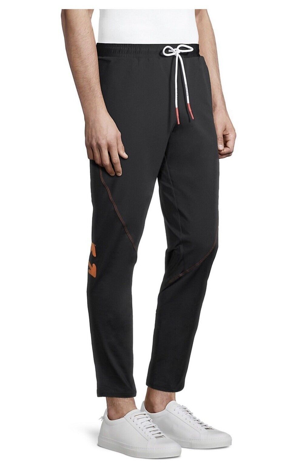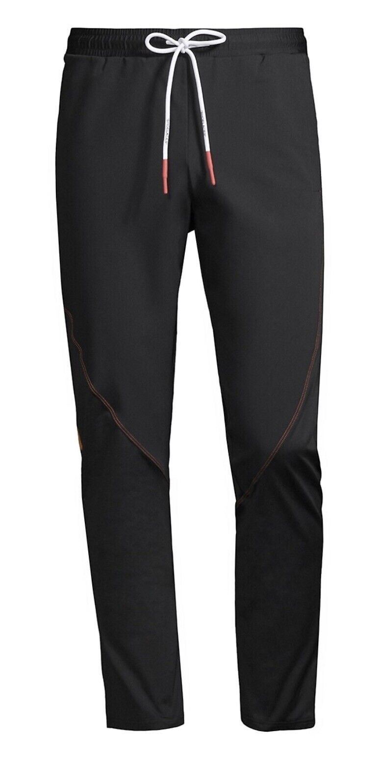 Experience comfort and style with our Elevated Athletic Black Sweatpants, featuring an elasticated waist with drawstring for a perfect fit. Detailed stitching and vibrant orange logos add a pop of personality to these made-in-Italy pants. Ideal for both active days and laid-back evenings.