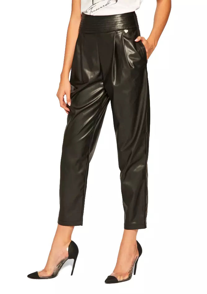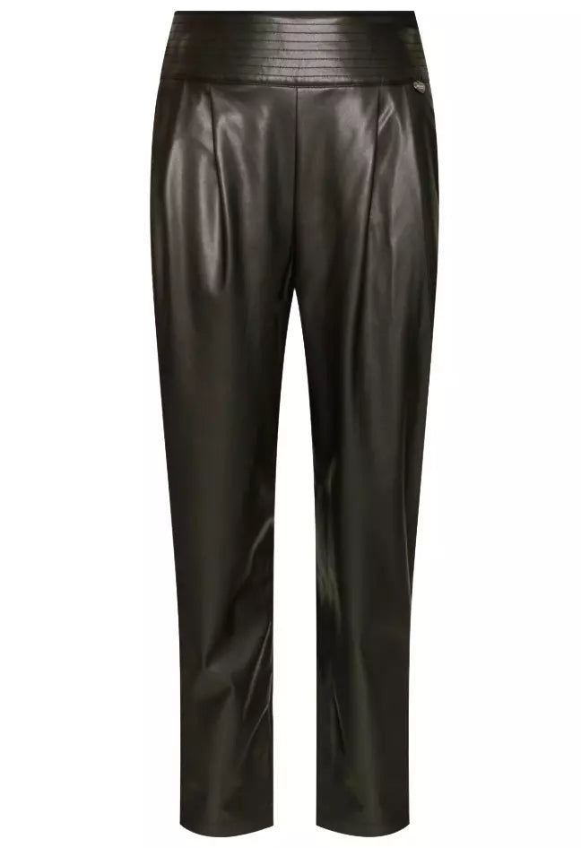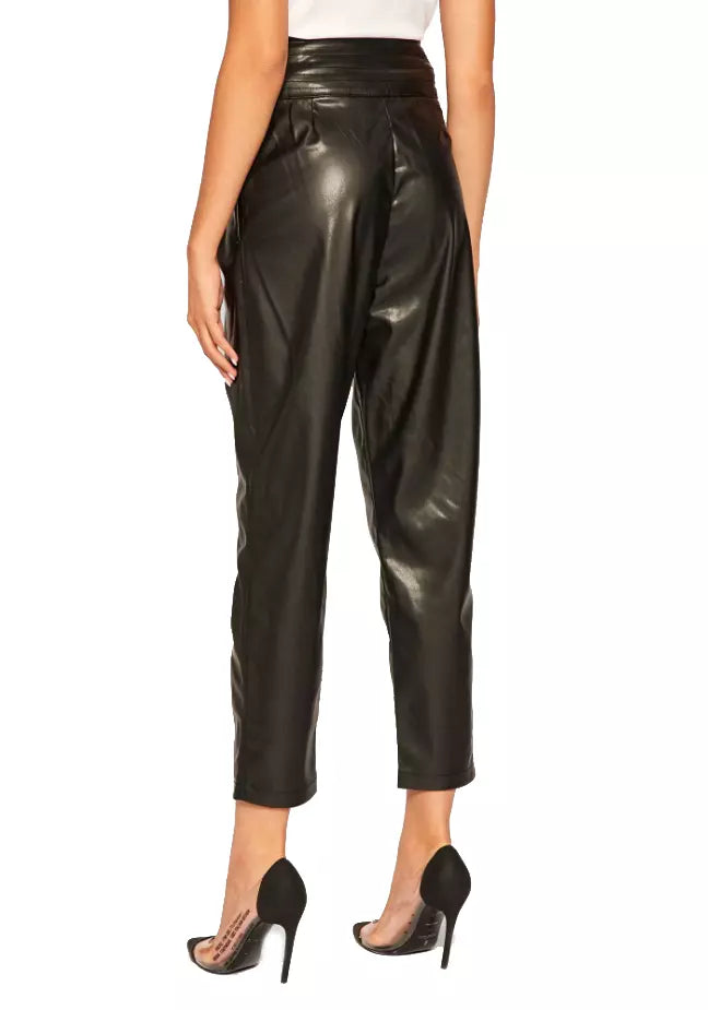 Elevate your wardrobe with these sophisticated eco-leather trousers, a perfect blend of style and comfort. They feature a convenient side zip closure and two handy side pockets, cut for a flattering regular fit that moves with you.