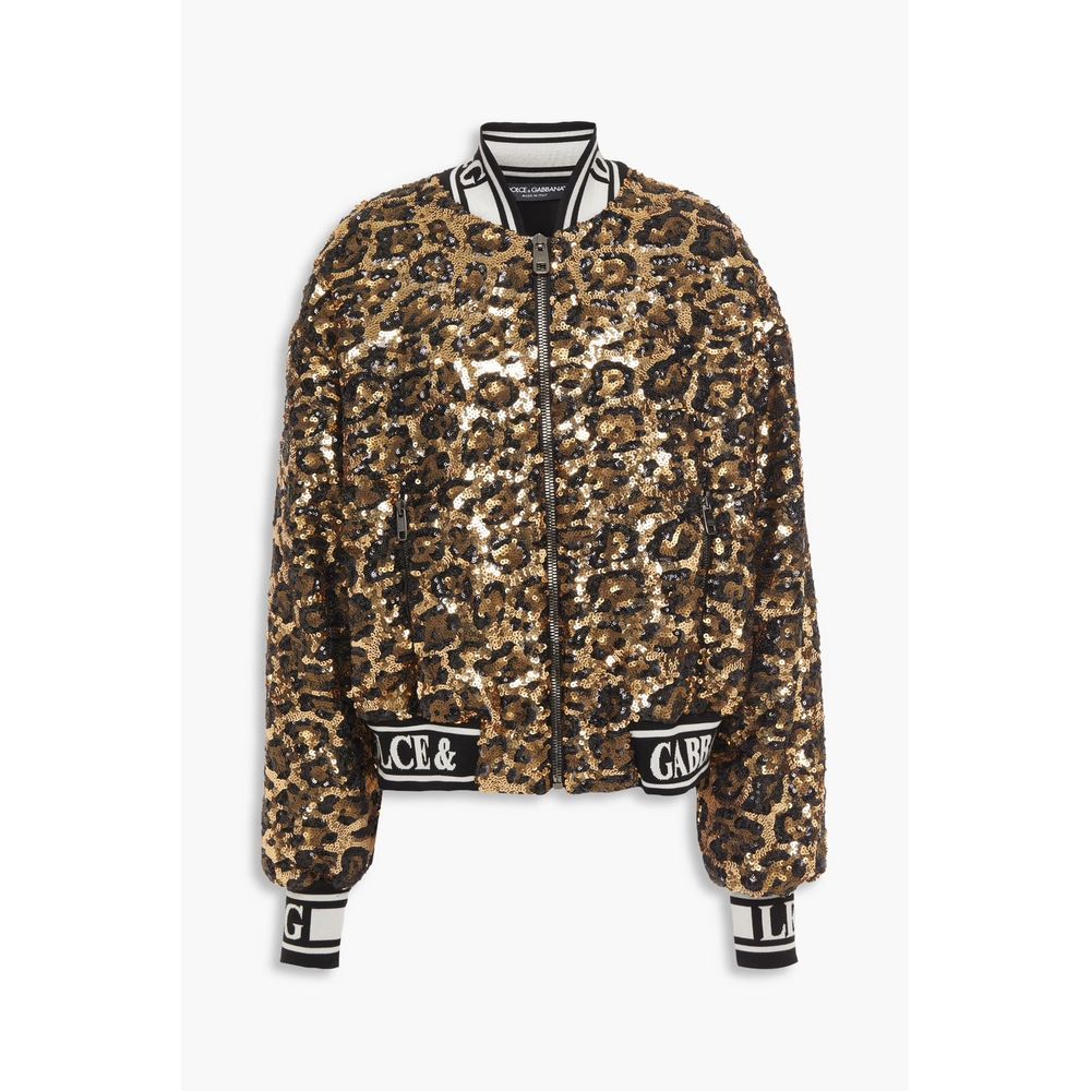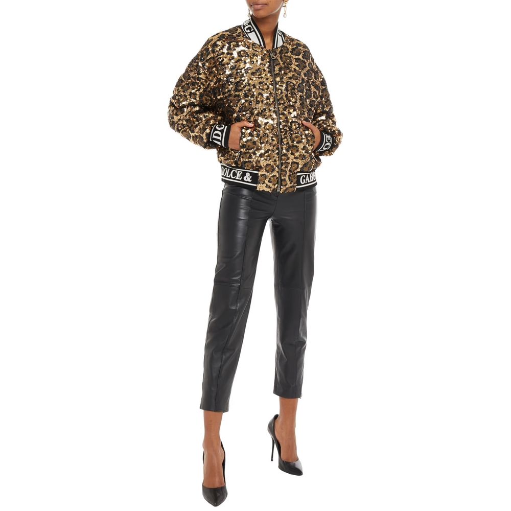 Dolce & Gabbana zipper sweatshirt studded with spotted sequins, contrasting elastic bands with brand logo. Made in Italy.