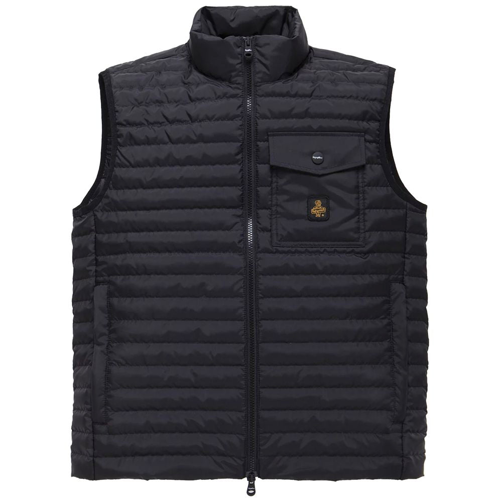 Experience the ultimate fusion of comfort and style with the Refrigiwear down vest for men. This essential outerwear piece is perfect for everyday wear and suitable for a variety of occasions. Crafted with 100% down padding, it ensures superior softness, breathability, and lightweight comfort. Featuring a sleek black color and adorned with the classic logo patch on the breast pocket, this vest is as fashionable as it is functional.