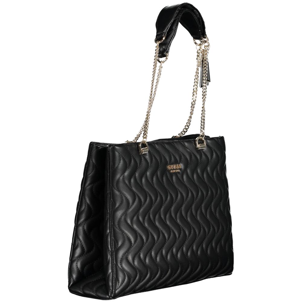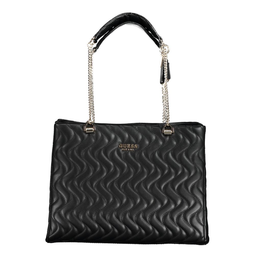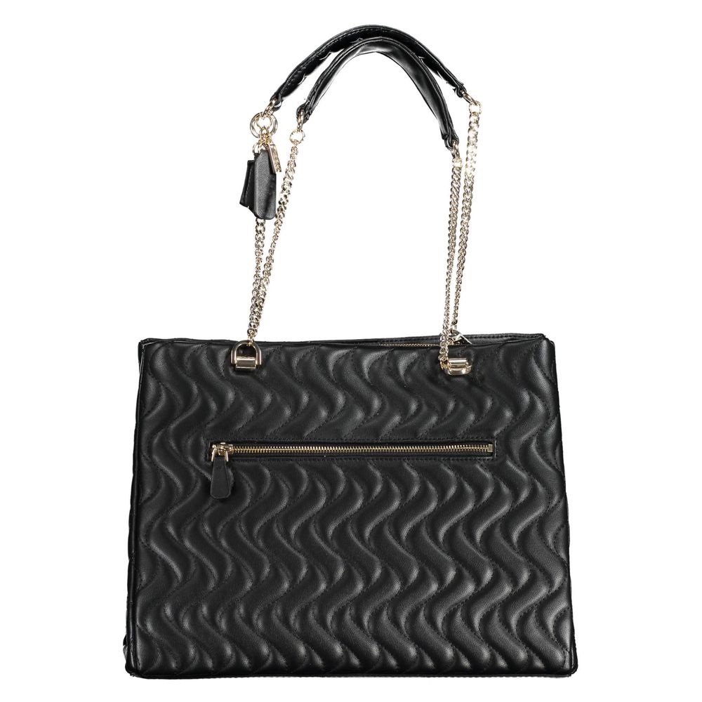 bag 2 chain shoulder handles, 1 external pocket, 2 compartments, 1 central pocket, 1 internal pocket, internal phone holder spaces, contrasting details, zip and snap closure, logo