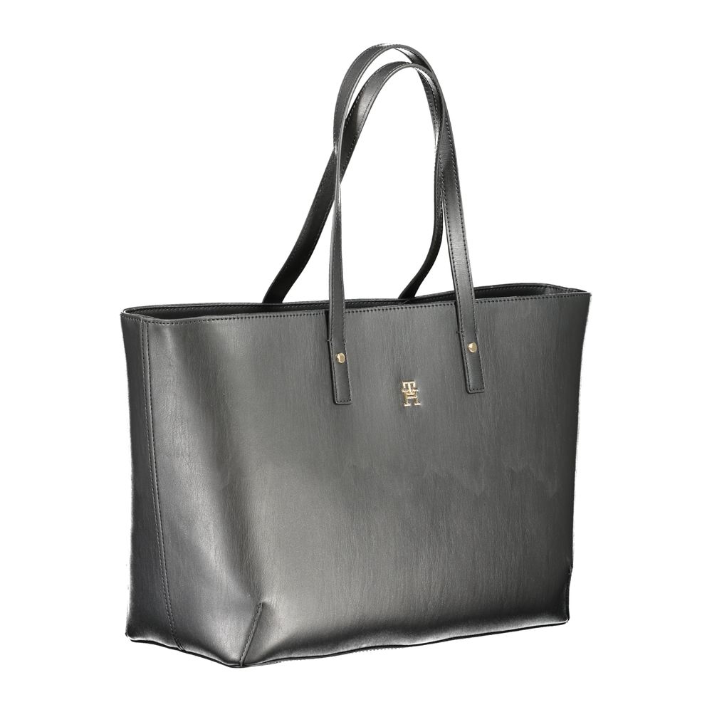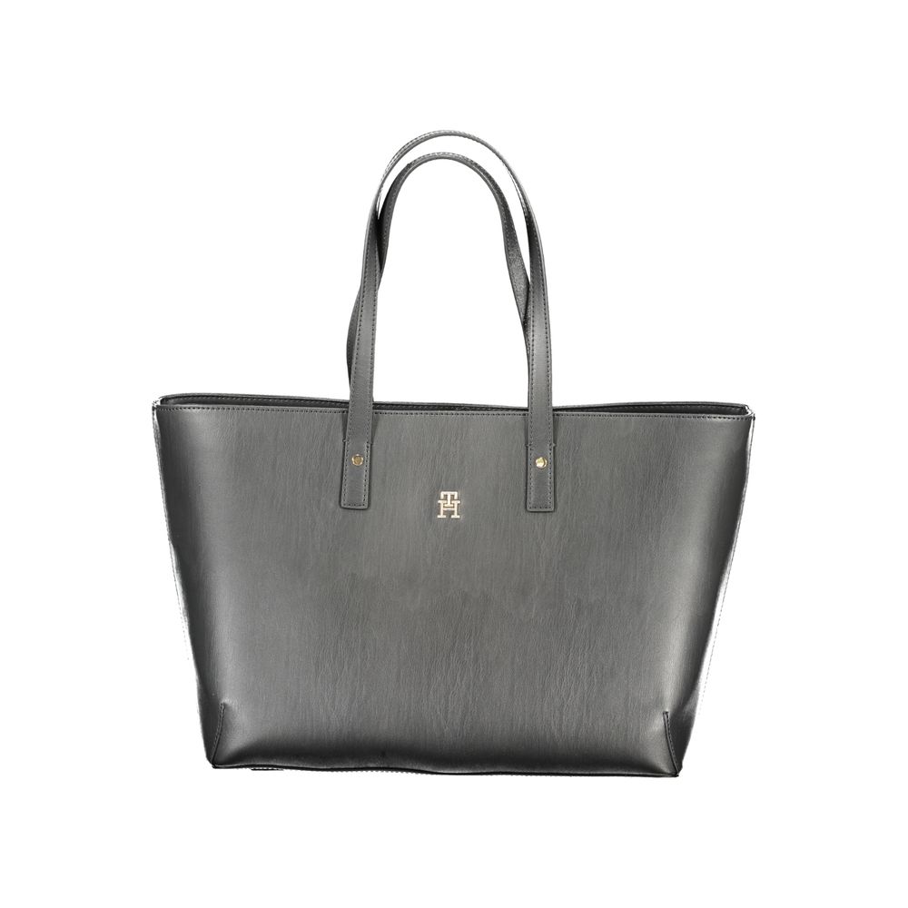 Elevate your everyday style to new heights with this stunning Tommy Hilfiger handbag. Crafted from durable 100% polyethylene, it’s designed for the modern trendsetter. A perfect blend of functionality and fashion, it boasts two shoulder handles for versatile carrying options. Inside, find two compartments, a central pocket, and an additional internal pocket, all secured with a zip and snap closure, keeping your valuables organized and accessible. The bold black hue is accented with the iconic Tommy Hilfiger logo, making it a timeless piece for your collection.