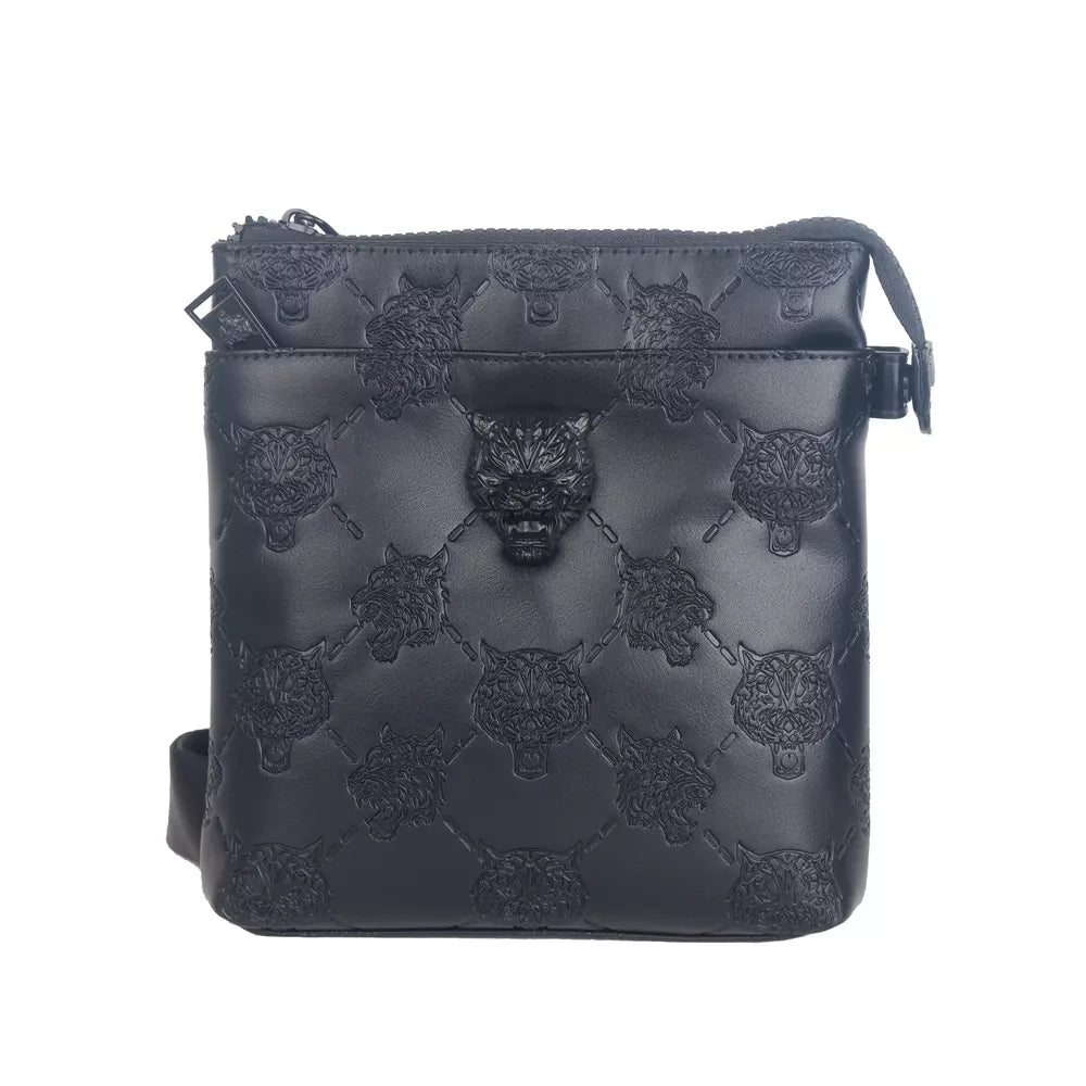 Experience the apex of functionality and bold design with this striking faux leather messenger bag, featuring an embossed logo that adds a touch of elegance. The eye-catching tiger bezel on the front infuses your style with a wild edge, while the adjustable shoulder strap ensures a comfortable carry throughout the day. Safeguard your essentials with the secure zipper closure, knowing your items are well-protected and within reach at all times. Perfect for the fashion-forward individual on the go.
