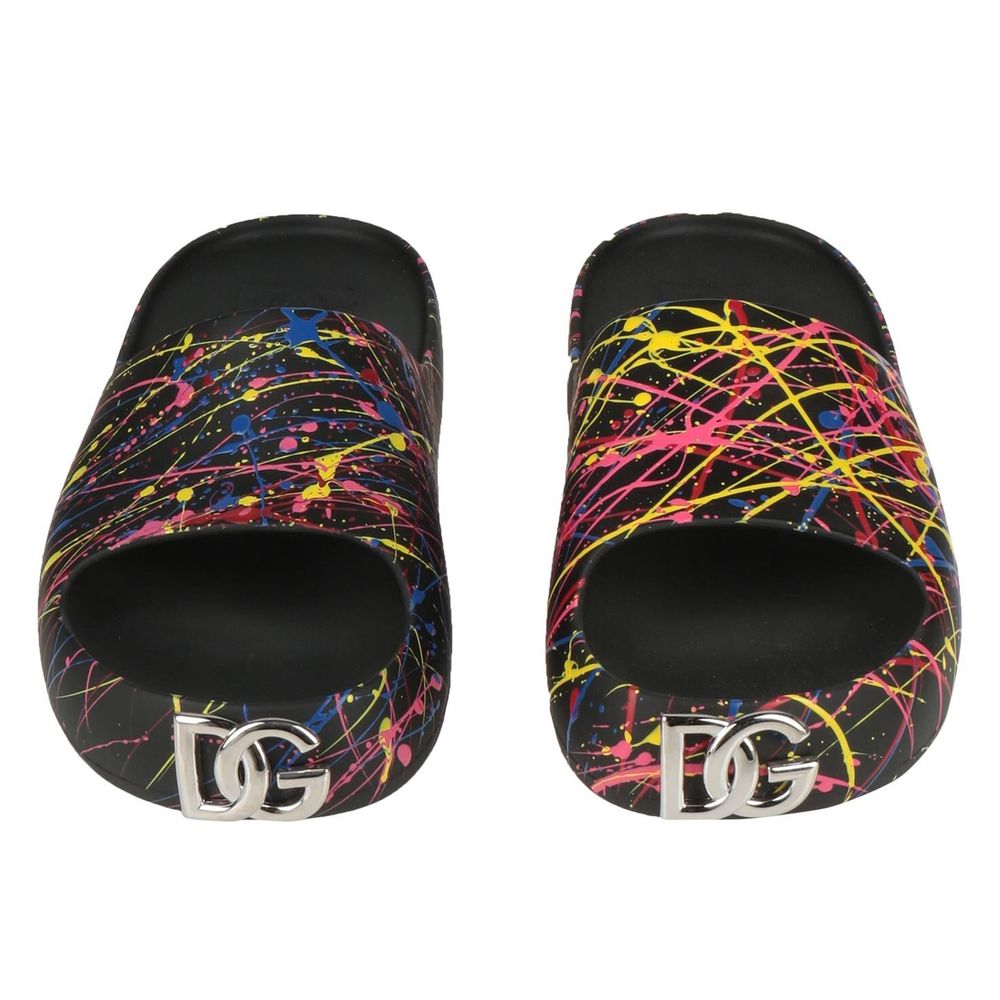 Dolce & Gabbana men's rubber slippers with multicolor patent leather decoration, DG metallic logo applied on toe
