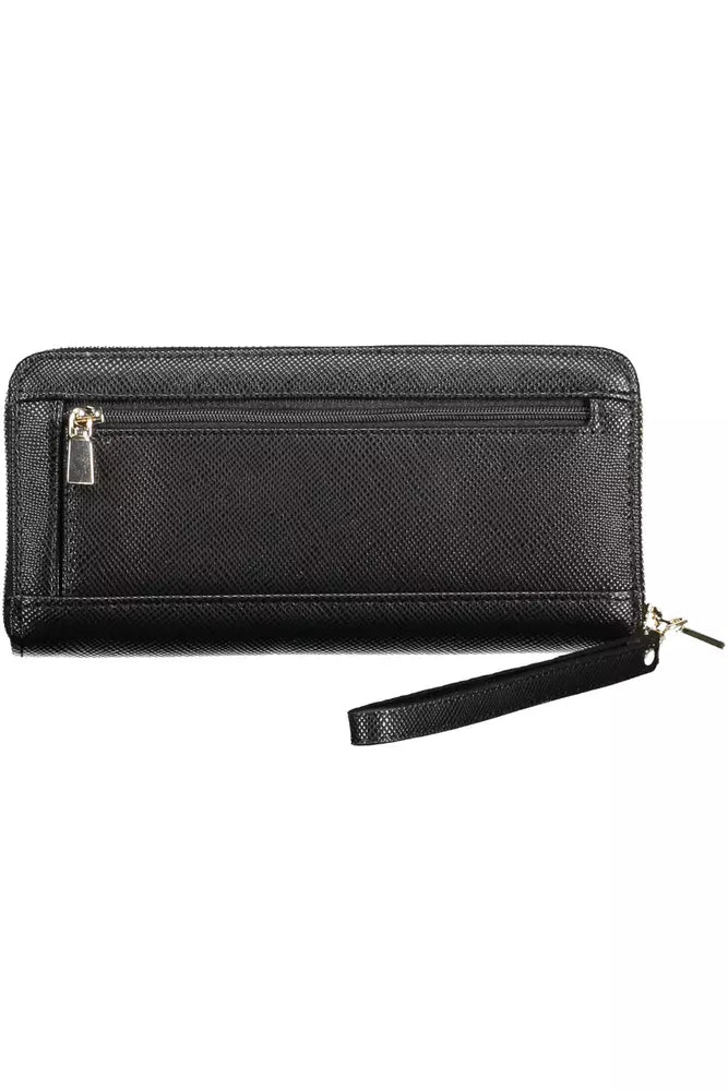 Discover the epitome of chic functionality with this Guess Jeans classic wallet. Tailored for the fashion-forward individual, it features four expansive compartments and a coin purse to keep your monetary essentials organized. Dual card spaces and an external pocket ensure that everything you need is within reach. The sleek black polyethylene construction is accented by contrasting details for an unmistakable touch of sophistication. Its secure zip closure and removable puller enhance both style and practicality. Finish off any look with this essential, boldly emblazoned with the iconic Guess Jeans logo.