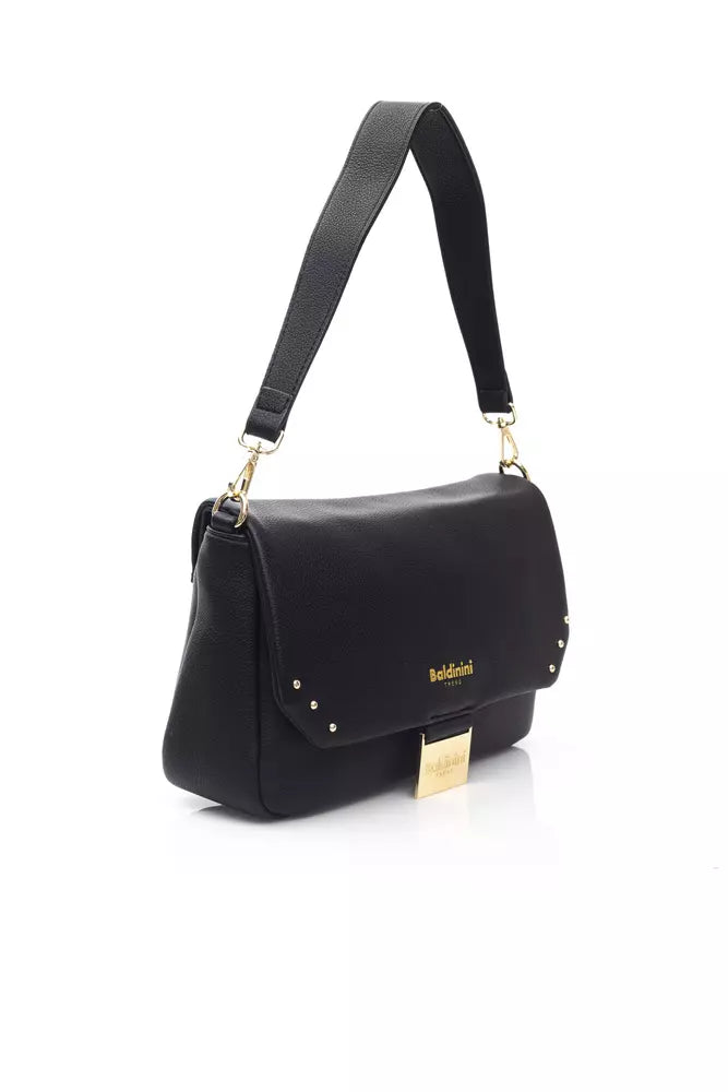 Indulge in the epitome of sophistication with the Baldinini Trend shoulder bag, where elegance meets functionality. Revel in the sleek black polyethylene silhouette accented with golden details for that touch of luxury. Its practical size, measuring 29cm x 18cm x 9cm, ensures enough space for your essentials while maintaining a chic profile. A secure flap with button closure unveils organized internal compartments, keeping your items neatly stowed. Finished with a conspicuous front logo, this piece isn’t just a bag—it’s a statement.