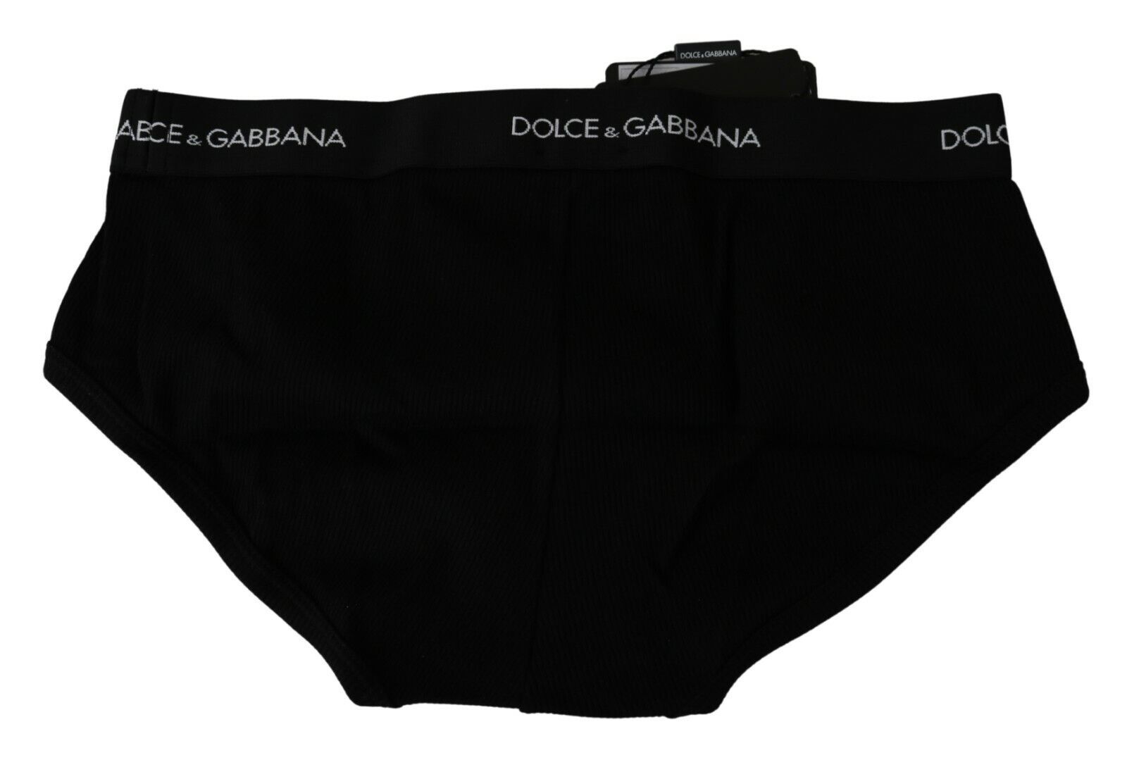 Experience sophistication and comfort with our stunning 100% Authentic Dolce & Gabbana black brando briefs. Ideal for everyday wear, these exclusive briefs feature an elastic waistband and are finished with the iconic logo details, enhancing your underwear collection with an elegant touch. Tailored from superior quality cotton, they ensure a great fit and utmost comfort. Embrace the luxury of Dolce & Gabbana crafted in Italy for the modern man.