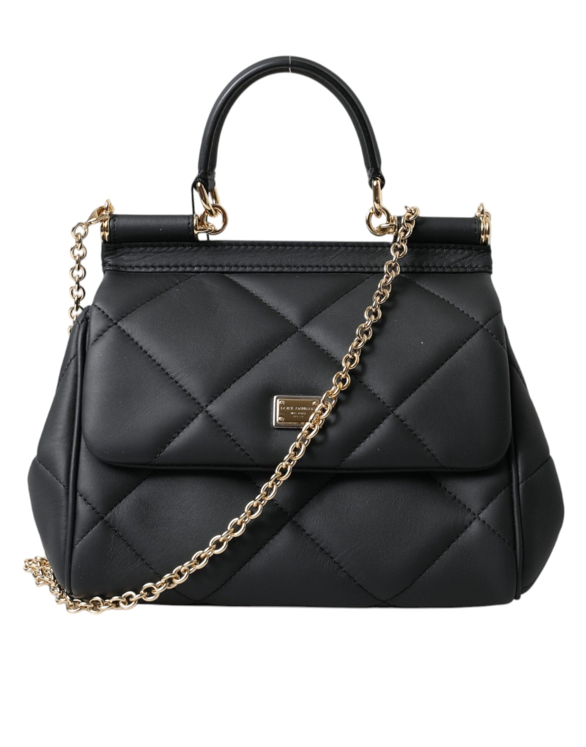 Indulge in the epitome of Italian luxury with the exquisite Dolce & Gabbana Sicily Shoulder Bag. This stunning accessory is more than just a bag; it’s a statement of style and sophistication. Perfect for any occasion, it dazzles with its gold metal detailing against the classic black leather, complemented by the brand’s signature leopard print lining.