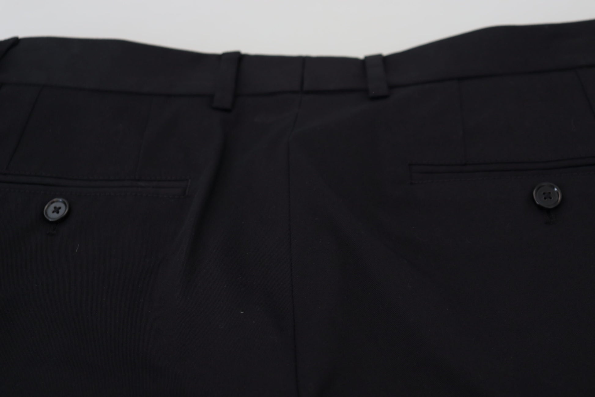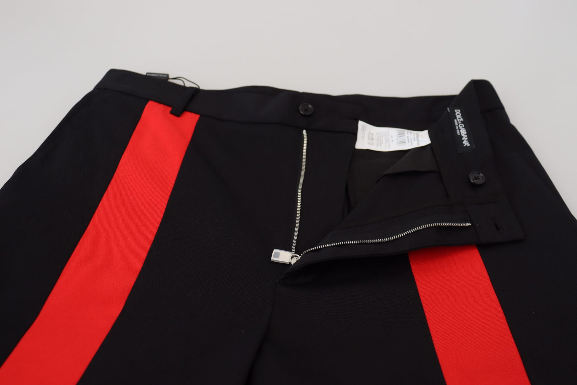 Elevate your wardrobe with these exquisite trousers by Dolce & Gabbana. These pants epitomize sophistication with their striking black and red hues, crafted in a luxurious cotton blend with a hint of elastane for that perfect fit. Designed for the discerning gentleman, the trousers feature subtle logo details and are a testament to the exceptional craftsmanship synonymous with the exclusive MainLine collection from Dolce & Gabbana. Made in Italy, these trousers promise to be a versatile addition to your fashion ensemble.