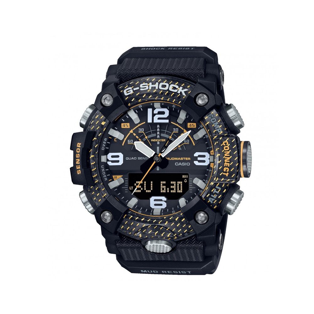 Type of mechanism: QUARTZ. Display: Analog/digital. Material Of Case: CARBON. Colour Of Case: BLACK. Material Of Bracelet: RESIN. Colour Of Bracelet: BLACK. Dial Colour:GREY. Glass type: MINERAL. Clousure: BUCKLE. Water resistence: 20ATM. Diameter dial: 55MM. Special Functions:MUD Guard - Dust and mud resistant - G Shock - Double Rear Cover of Resin and Stainless Steel - Brujula - Barometro - Temperature - Accelerometer - By connecting a smartphone you can collect the GPS data of your route -