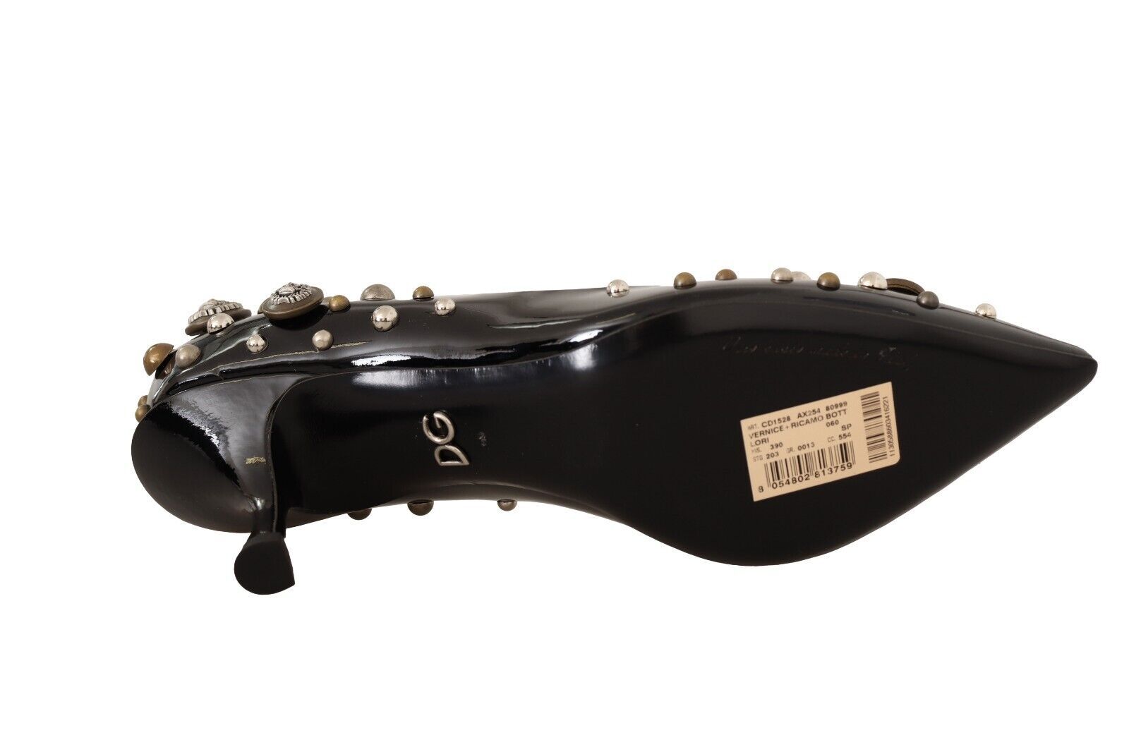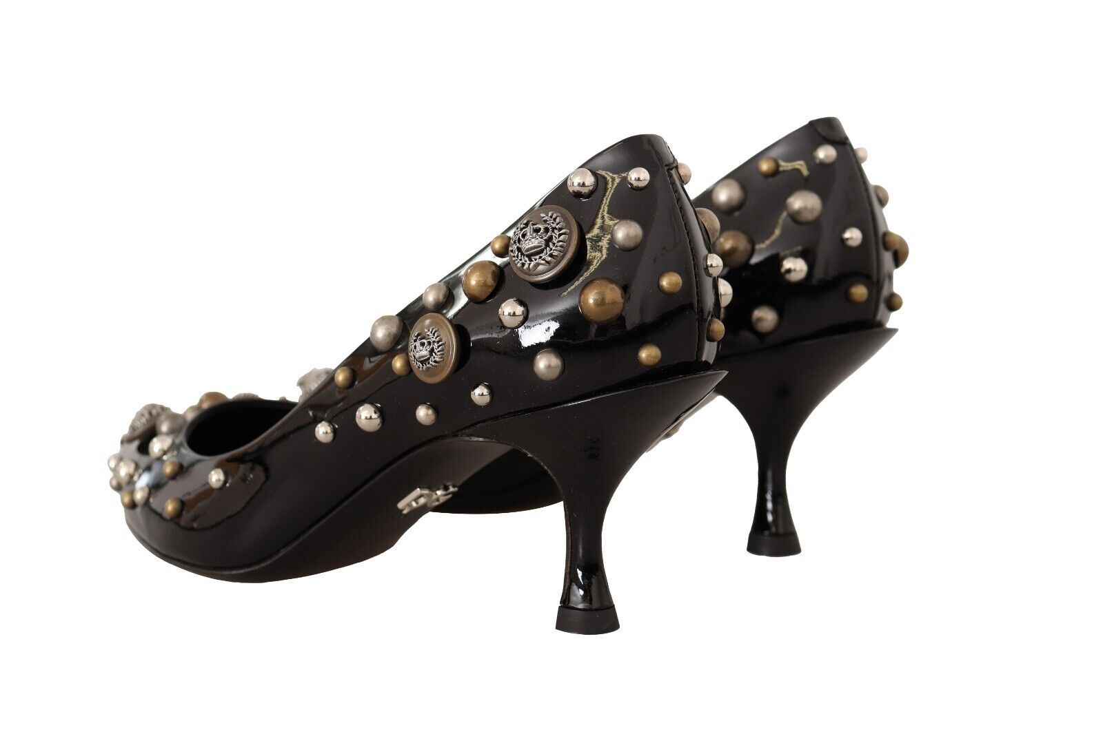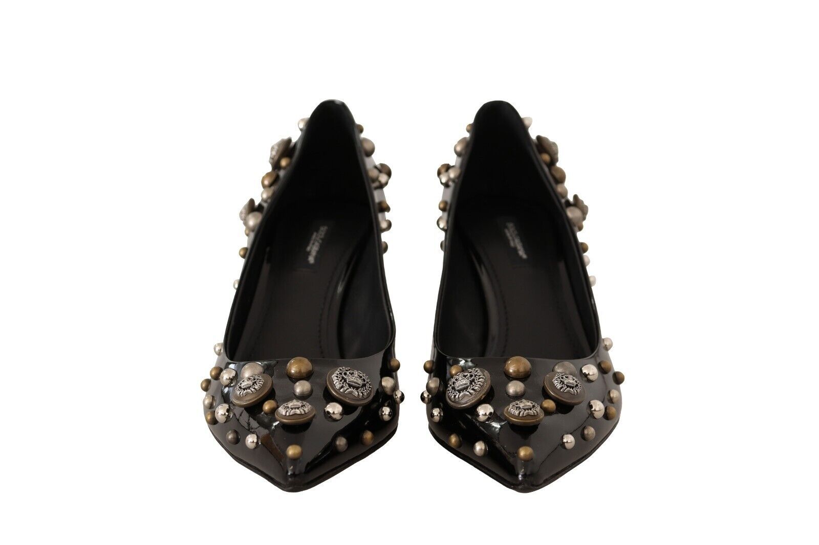 Step into luxury with these stunning new-with-tags, Dolce & Gabbana leather pumps. Adorned with edgy studs, these shoes flaunt a sophisticated mid kitten heel and a sleek pointed toe, perfect for the fashion-forward woman. Crafted from 100% premium leather with a comfortable sole, these pumps offer both remarkable quality and comfort. A subtle logo detail adds a touch of brand prestige to these Italian-made heels.