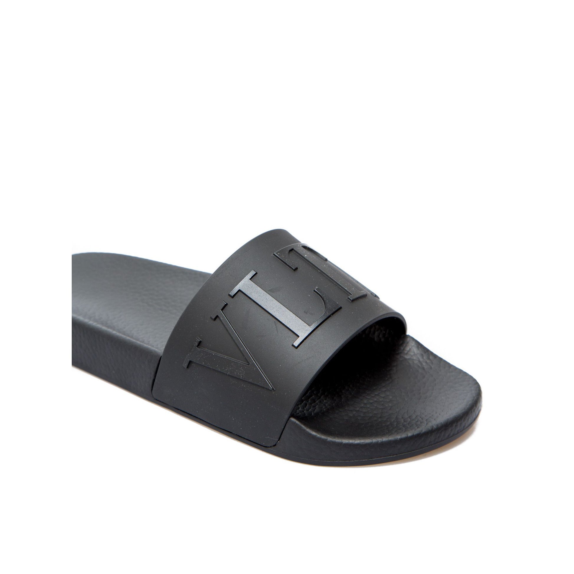 Step into luxury with these immaculate, never-worn Valentino slides, complete with original tags, dustbag, and shoe box. Crafted with high-quality rubber, these sandals showcase the iconic Valentino Garavani VLTN logo on the strap, offering an immediate elevation to your casual wear. Designed with comfort in mind, they feature a contoured footbed for all-day wear, while the camouflage-patterned undersole and embossed Valentino Garavani logo add a touch of distinctive flair. Embrace the blend of Italian craftsmanship and timeless style with these sleek sandals made in Italy.
