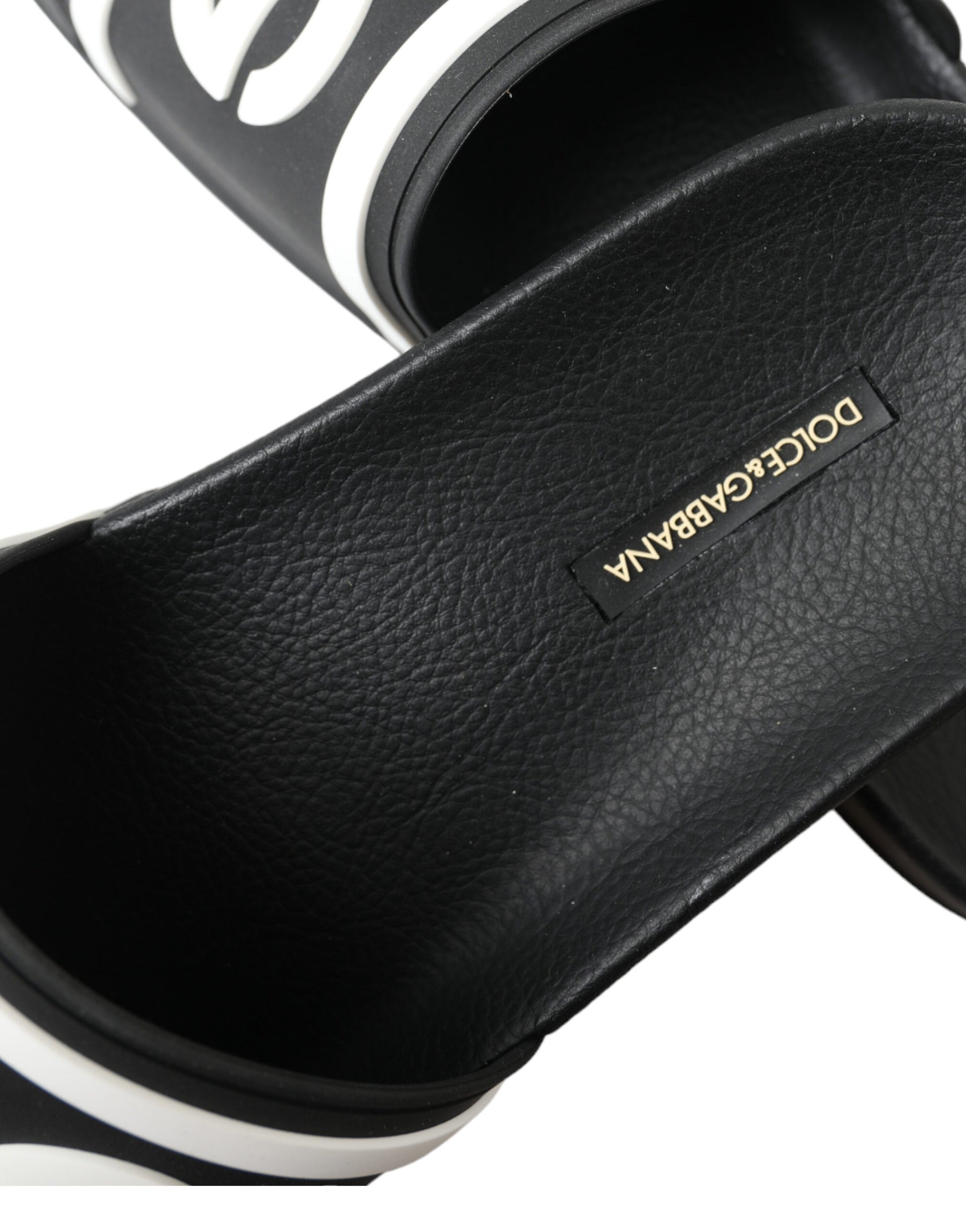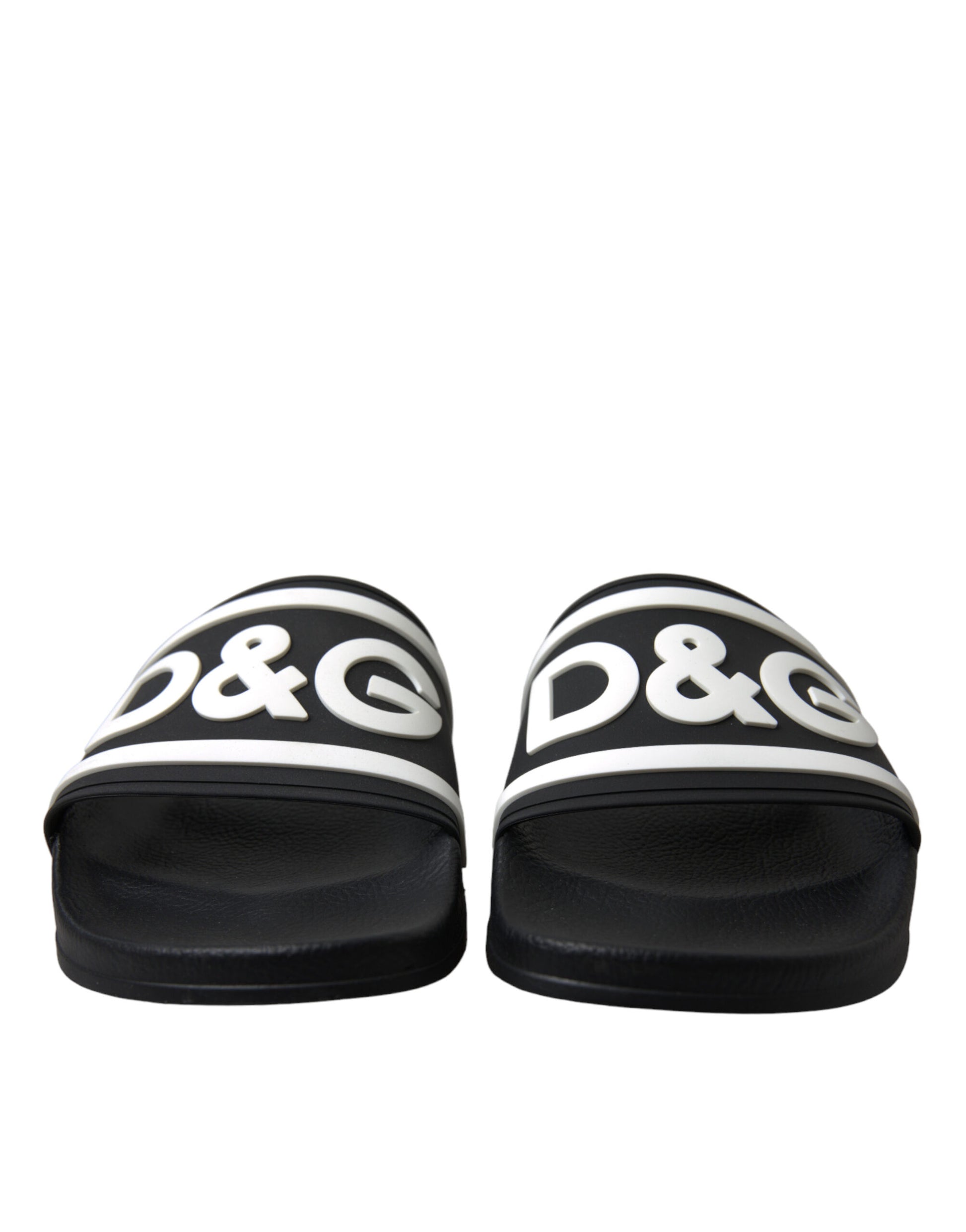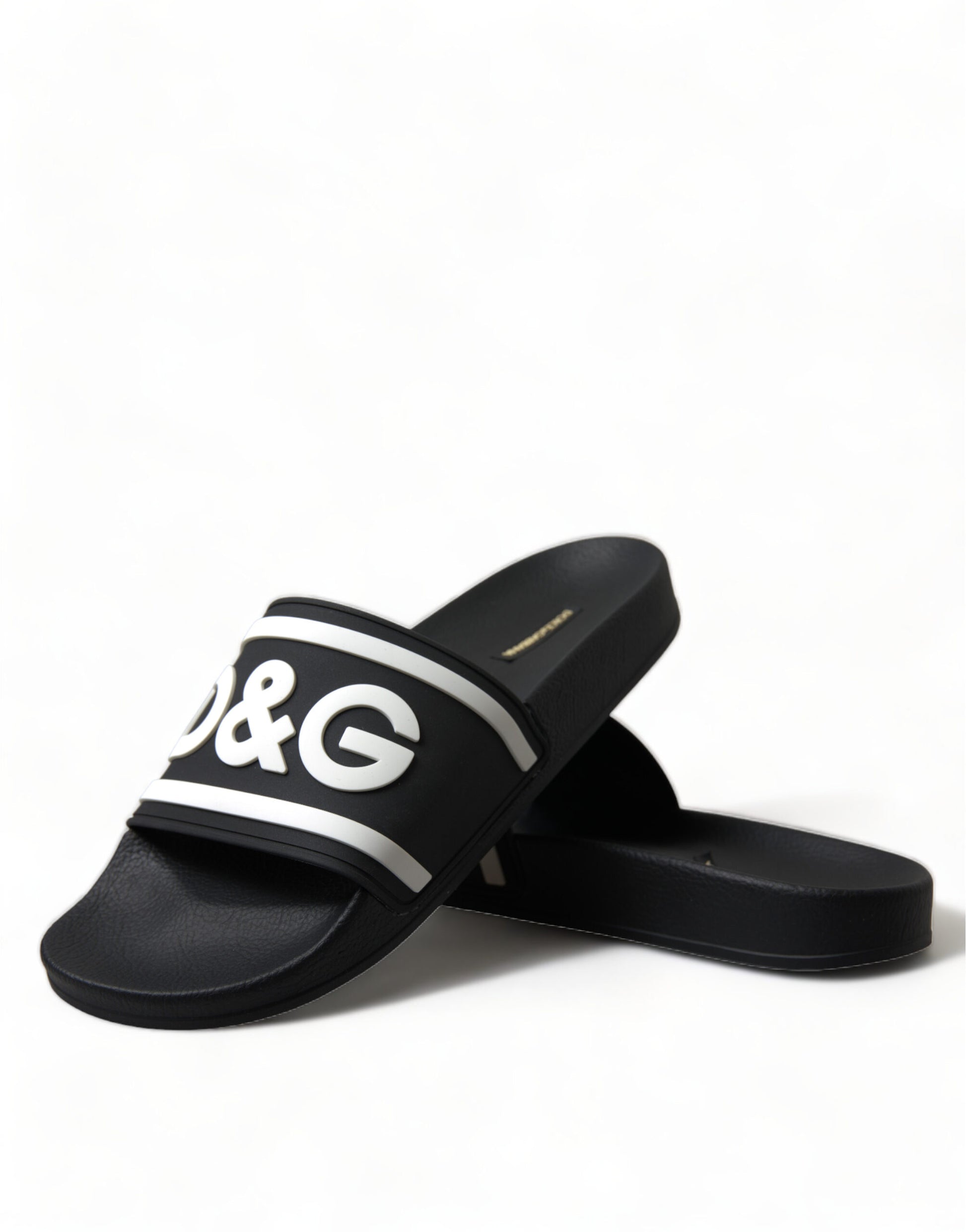 Discover the epitome of luxury summer footwear with these chic Monochrome Rubber Slides from the prestigious house of Dolce & Gabbana. Perfect for those seeking both style and comfort, these slides are adorned with the brand’s signature logo, offering a sophisticated statement for beach days or casual outings. Crafted in Italy, they feature extra-light rubber soles with embossed logo detailing for a lasting impression.